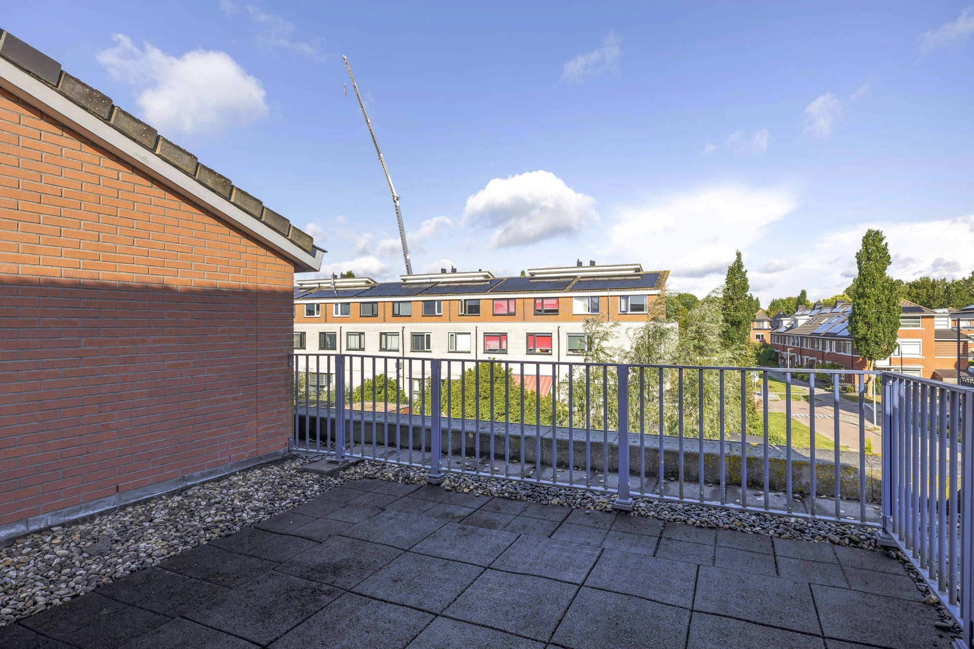 Een van de grote pluspunten van deze woning is het dakterras, gelegen op de tweede verdieping. Hier geniet je van een vrij uitzicht en heb je een ideale plek om te ontspannen met een boek of borrel, in alle privacy.