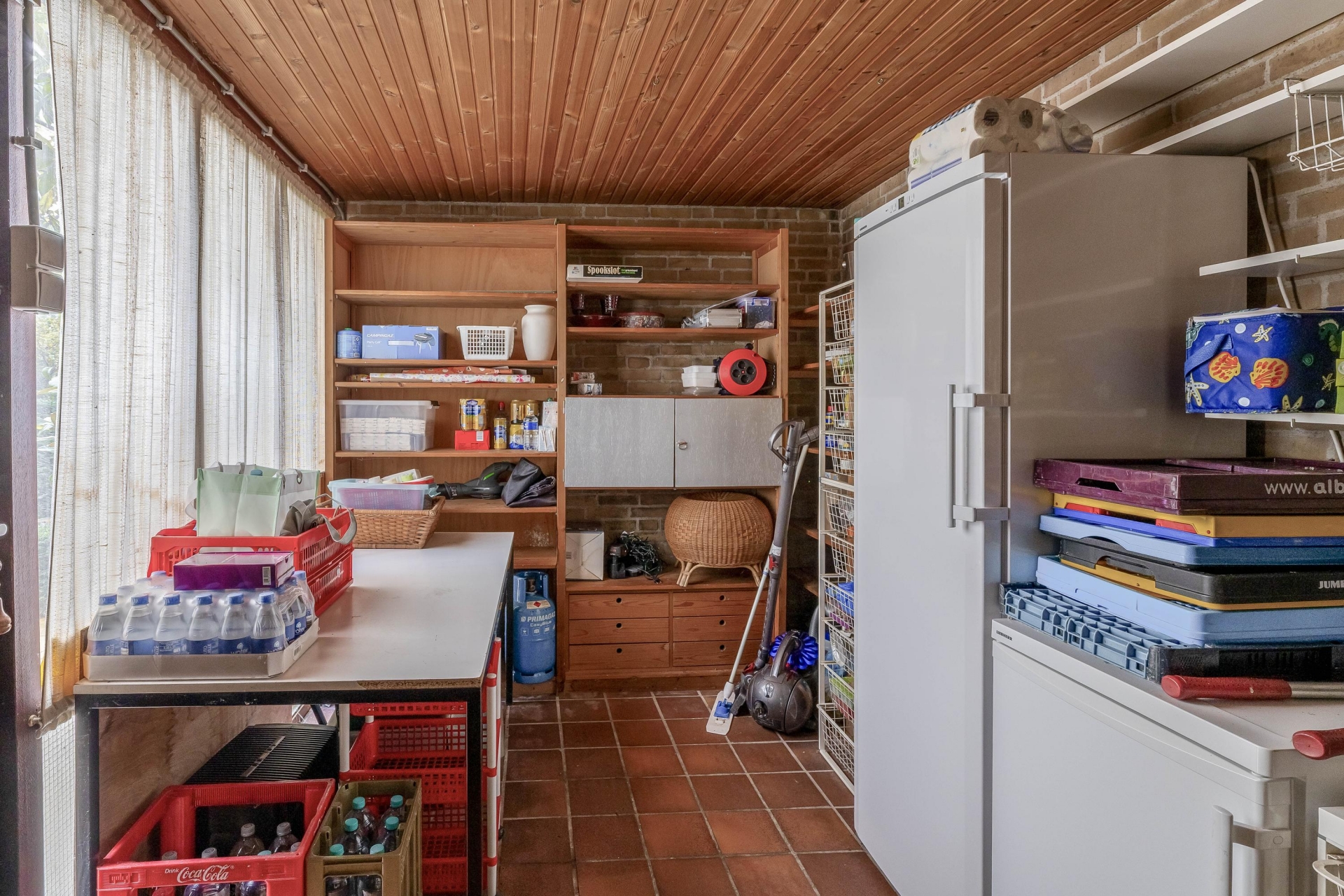 Via de diepe oprit kom je bij de overdekte entree van het huis. Je stapt binnen in een ruime hal met toilet en trapopgang, waarna je de verrassend lichte en tuingerichte woonkamer binnenloopt. Grote ramen en schuifpuien zorgen voor veel daglicht en een mooi zicht op het groen rondom de woning. De zithoek is royaal opgezet en biedt voldoende plek voor het hele gezin. De halfopen keuken is gelegen aan de achterzijde van de woning, waarachter nog een handige en ruime bijkeuken zit. Hier kook je in alle rust, met een praktische indeling en voldoende opbergruimte.