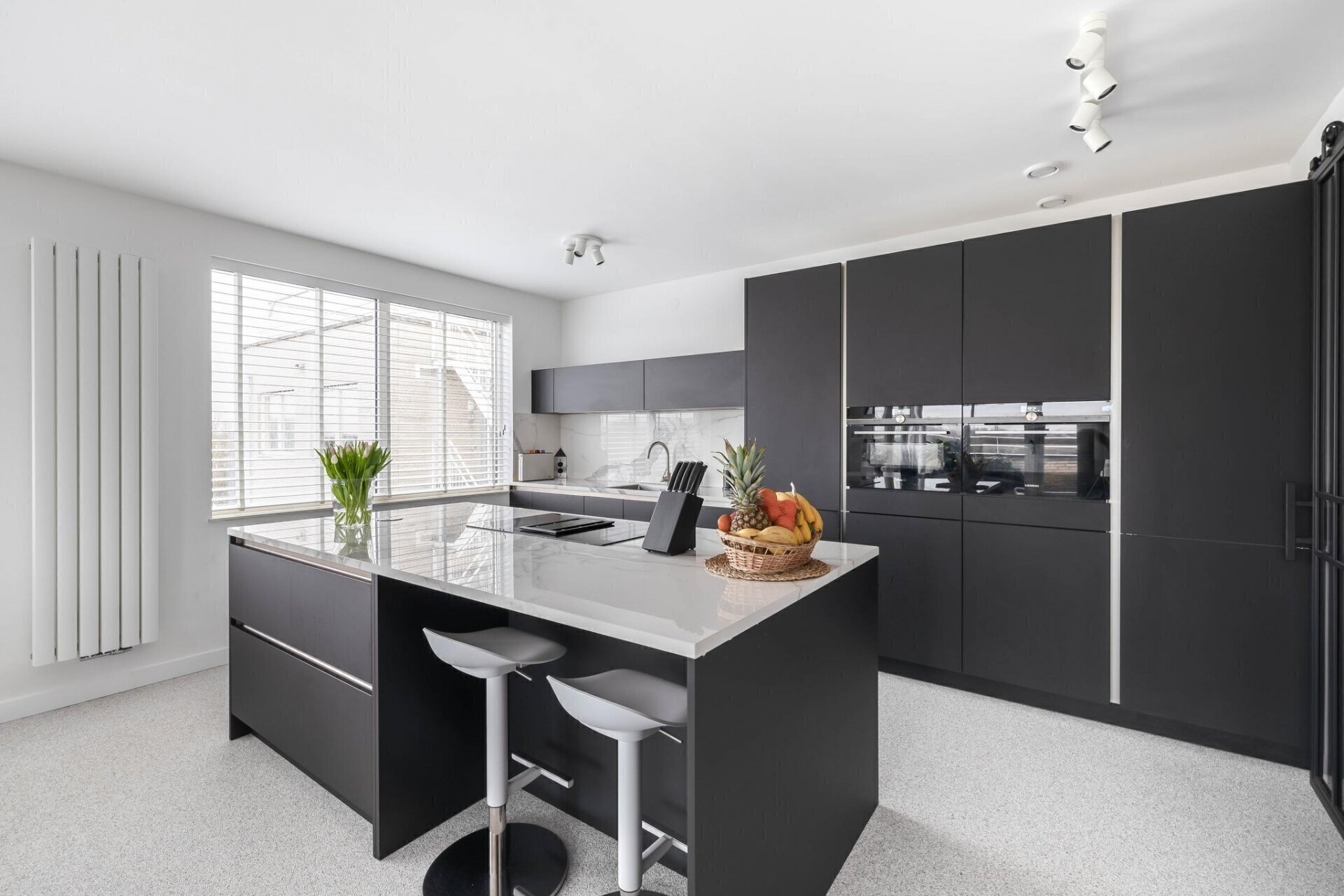 Aangekomen bij het appartement is het lichtinval en het uitzicht vanuit de woonkamer en woonkeuken een ware eyecatcher. De mat zwarte keuken met kookeiland is voorzien van alle benodigde inbouwapparatuur en beschikt over een sfeervol barretje. Vanuit de keuken is er nog een handige bijkeuken toegankelijk, waar zich ook de aansluiting voor de wasmachine bevindt. Vanuit de hal is er toegang tot de overige vertrekken, zoals 2 slaapkamers, een luxe badkamer en separaat het toilet. Beide slaapkamers beschikken over een vaste kastenwand die tal van ruimte biedt. De inpandige badkamer is voorzien van een inloopdouche, een dubbele wastafel met meubel en een spiegel met verlichting.