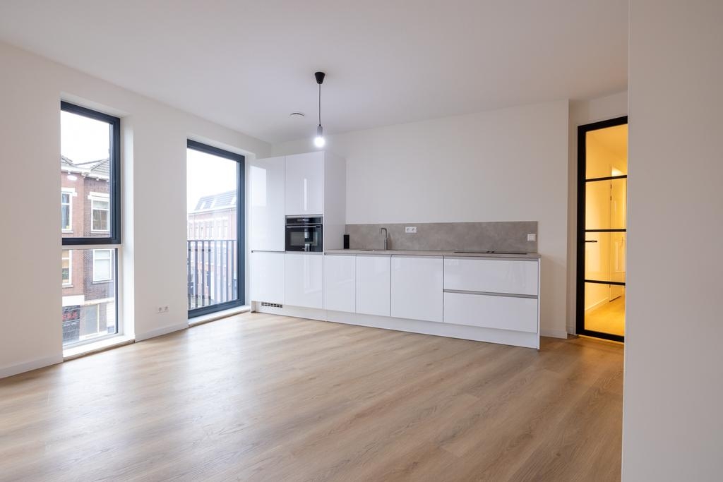 De lichte woonkamer is voorzien van een erker en schuifpui naar het balkon, wat dit appartement nét even dat extraatje geeft. De open keuken is modern uitgevoerd en voorzien van alle benodigde inbouwapparatuur: inductie kookplaat met geïntegreerde afzuiging, vaatwasser, Quooker, koel-vriescombinatie en combi-oven. Koken, relaxen en genieten lopen hier naadloos in elkaar over.