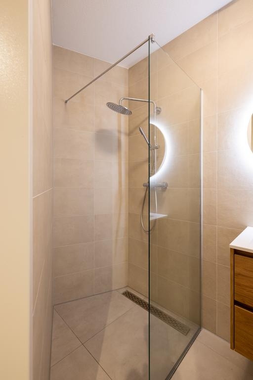 - Luxe badkamer en separate toiletruimte voorzien van hoogwaardige betegeling
