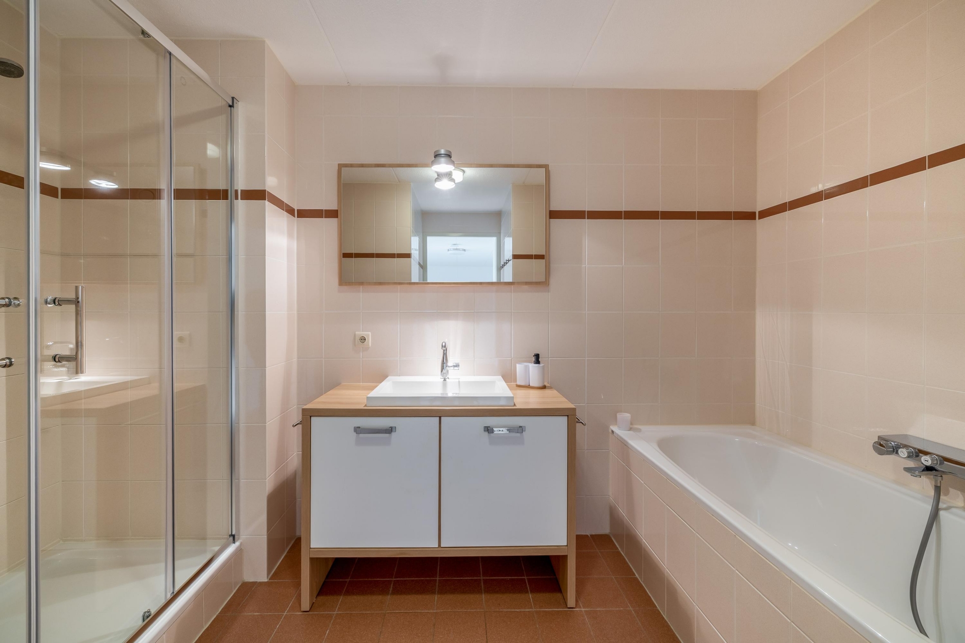 De badkamer is compleet uitgevoerd met een ligbad, separate douche en wastafelmeubel. Alles is netjes onderhouden en biedt een fijne basis. Zowel boven als beneden is er een apart toilet. Daarnaast is er voldoende bergruimte aanwezig in het huis: op de begane grond is een ruime berging, toegangelijk vanuit de keuken, de hal en met een deur naar buiten.