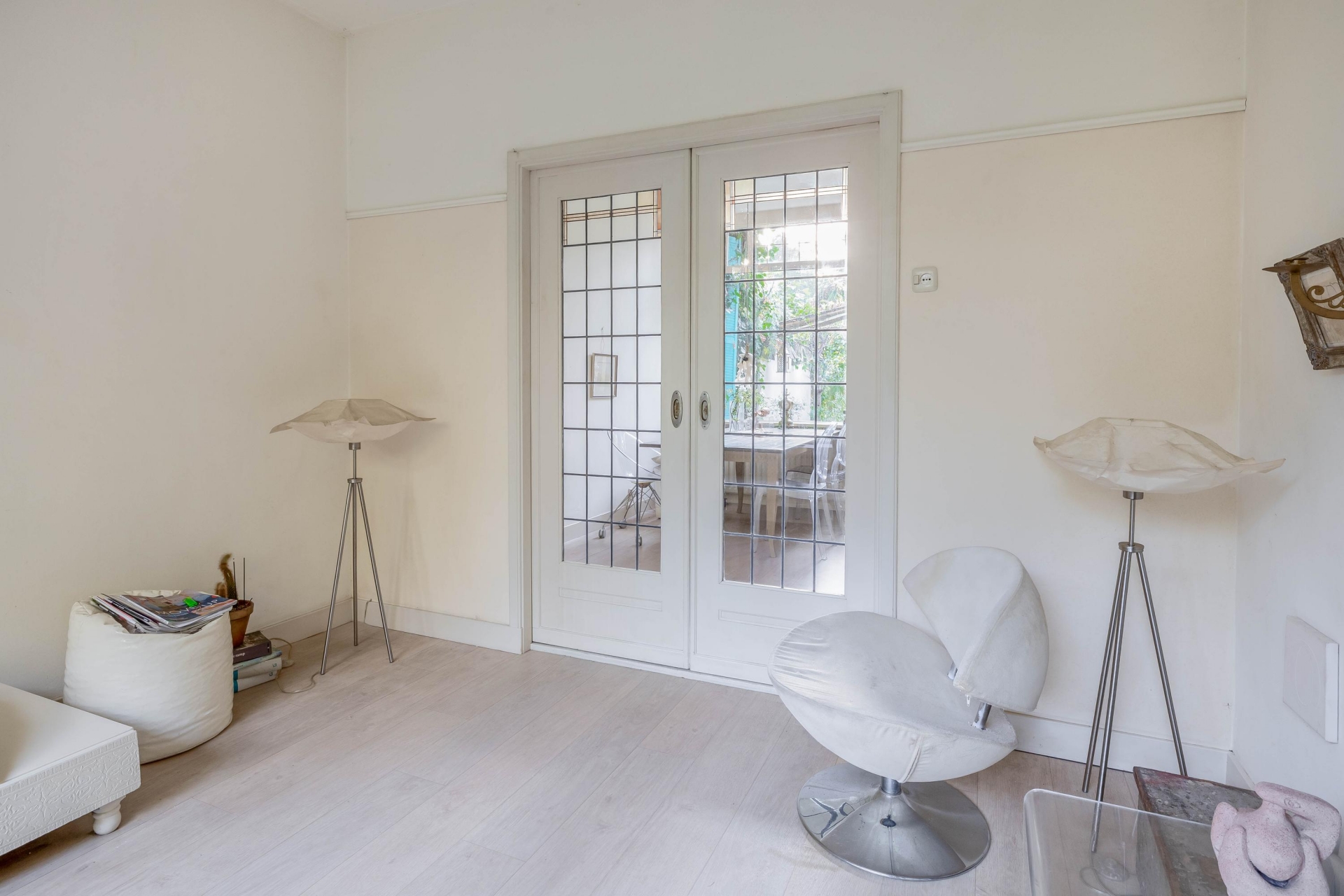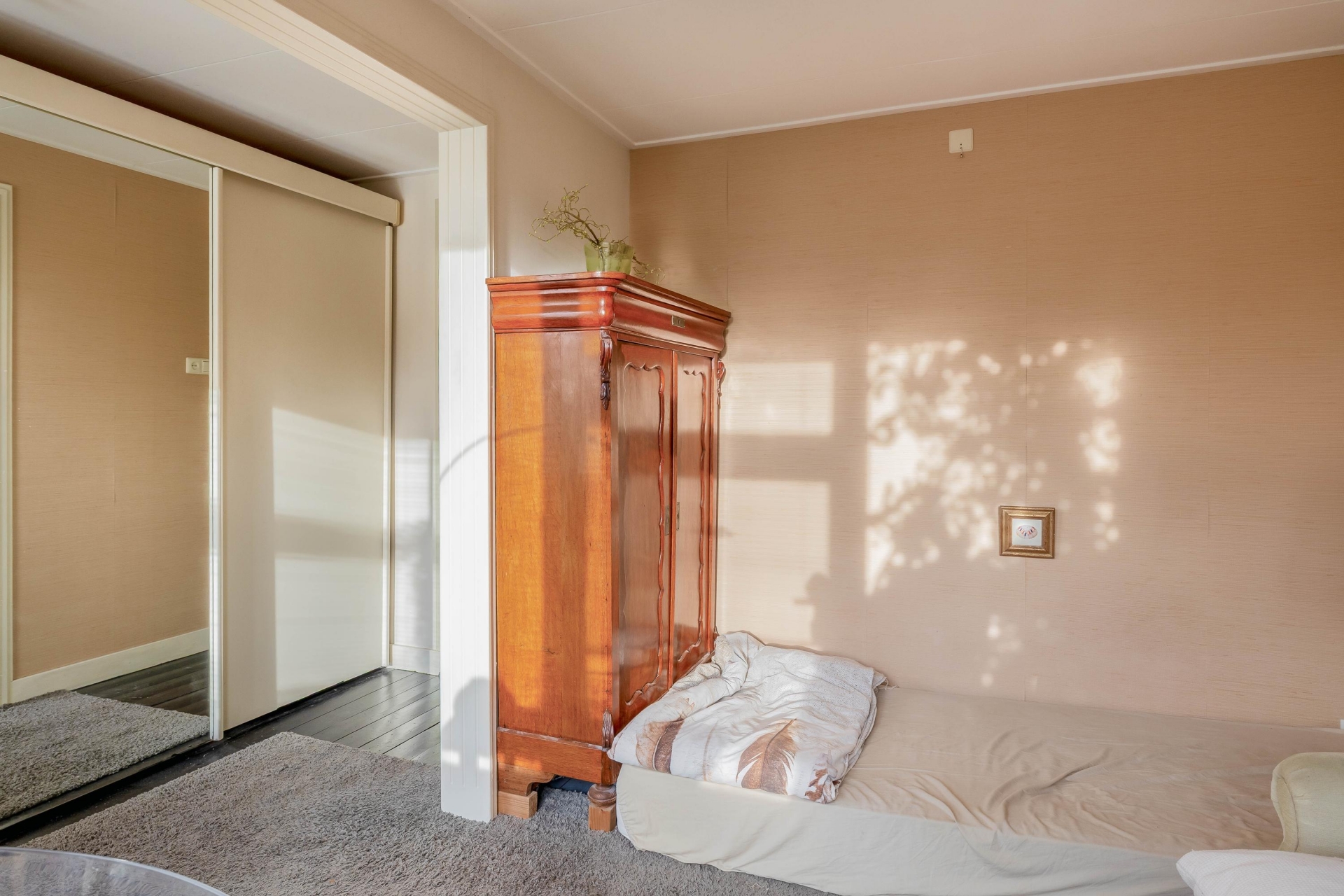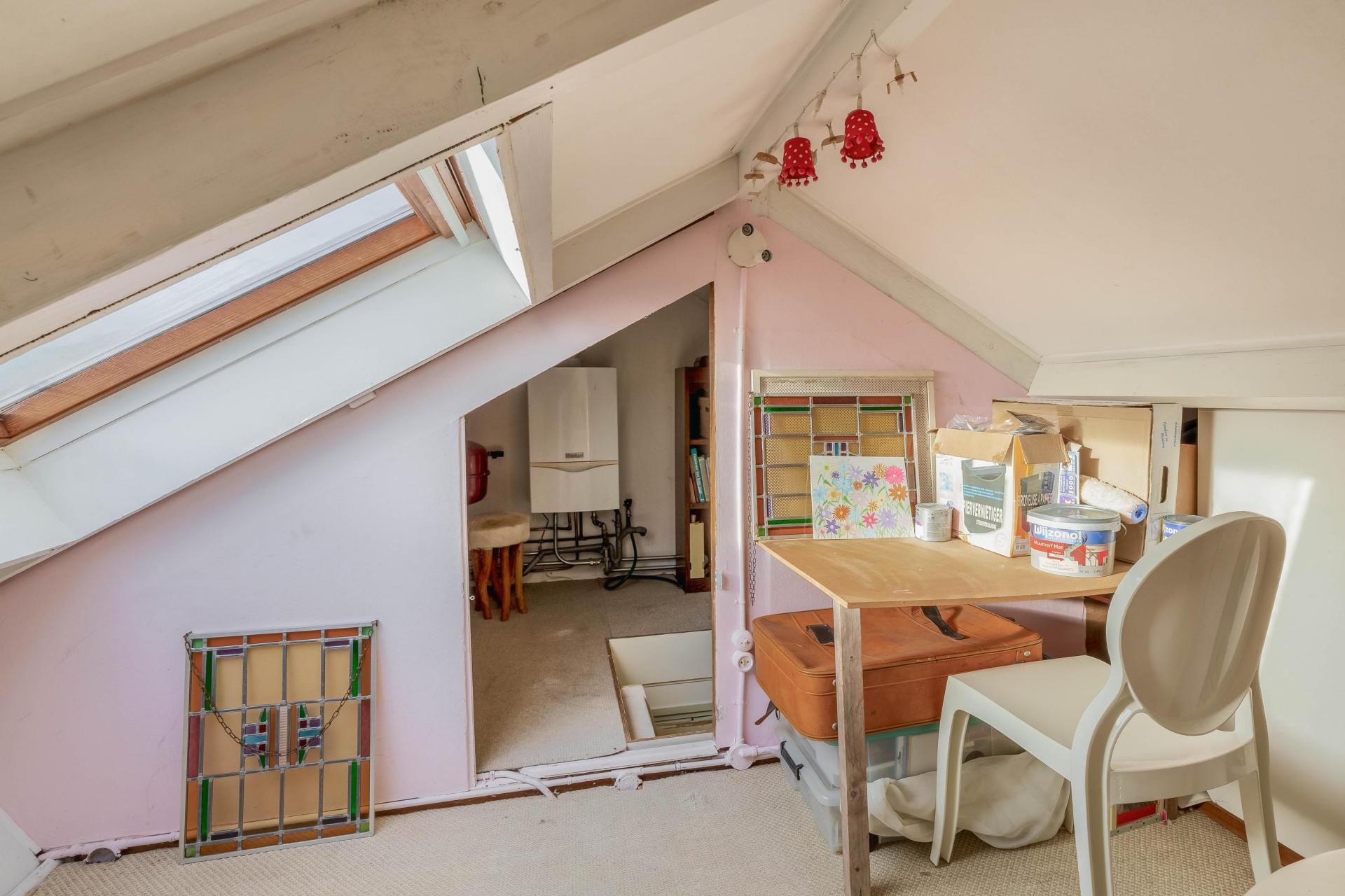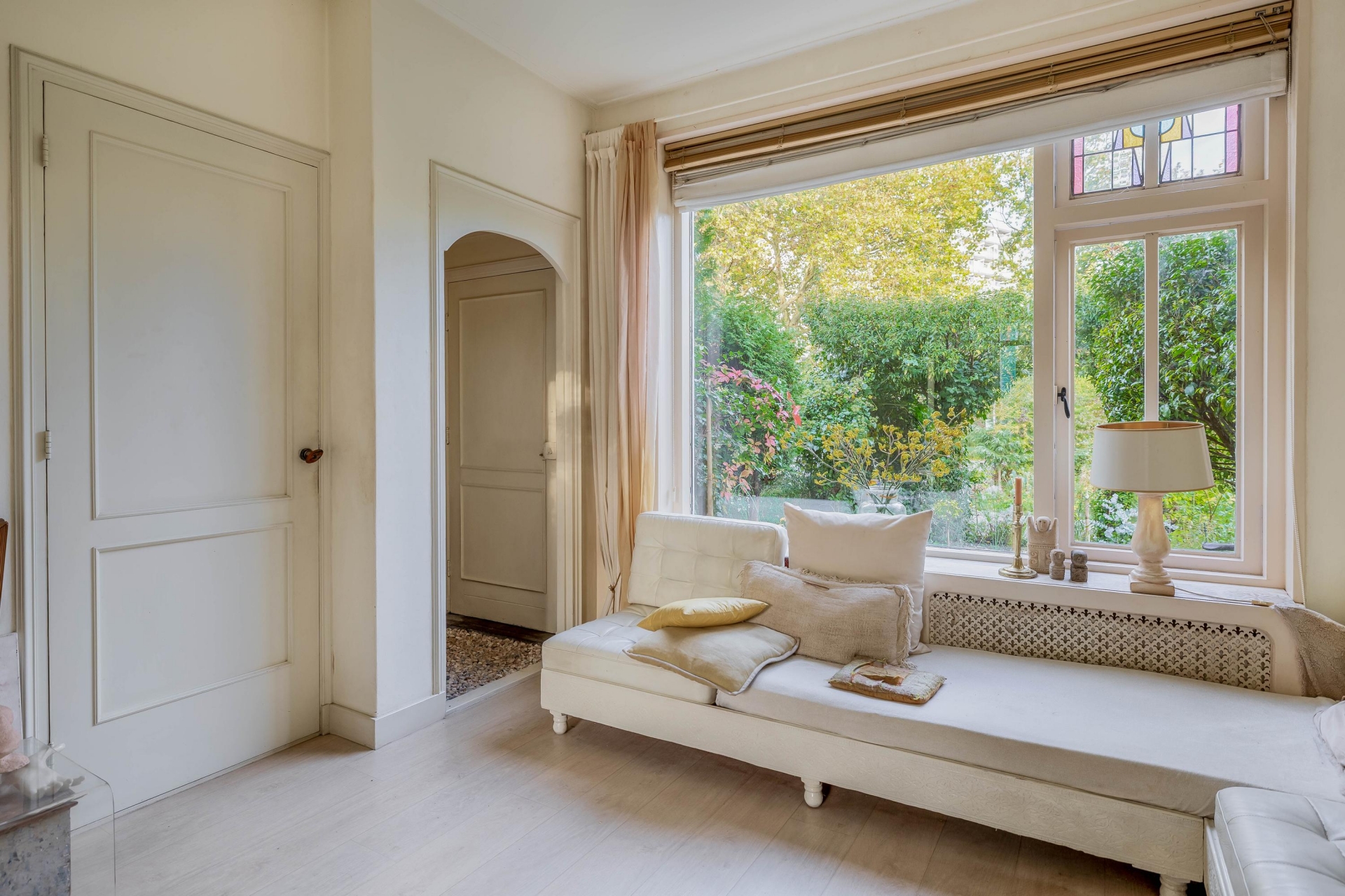 - Sfeervolle kamer en suite met glas-in-lood schuifdeuren;