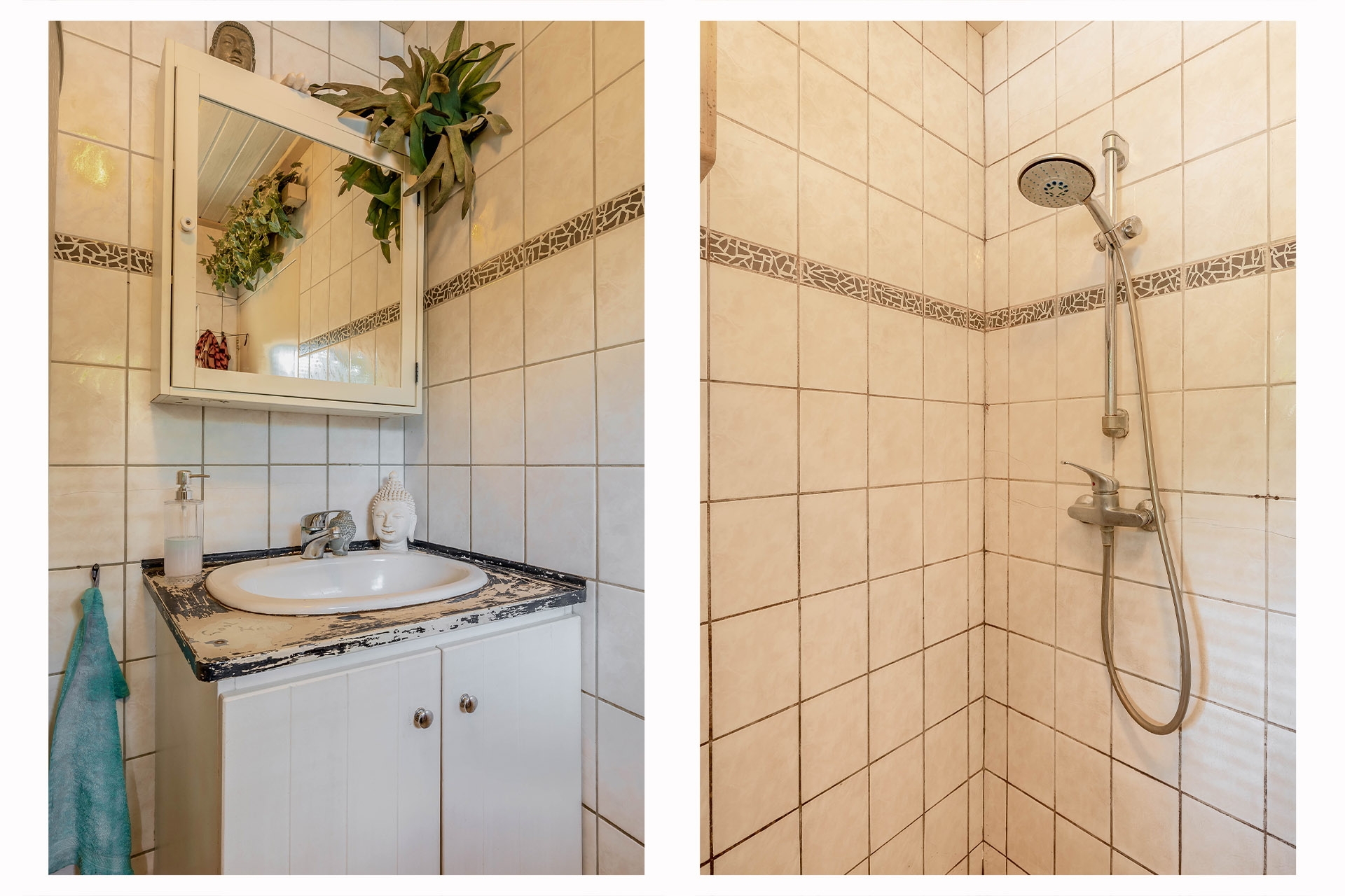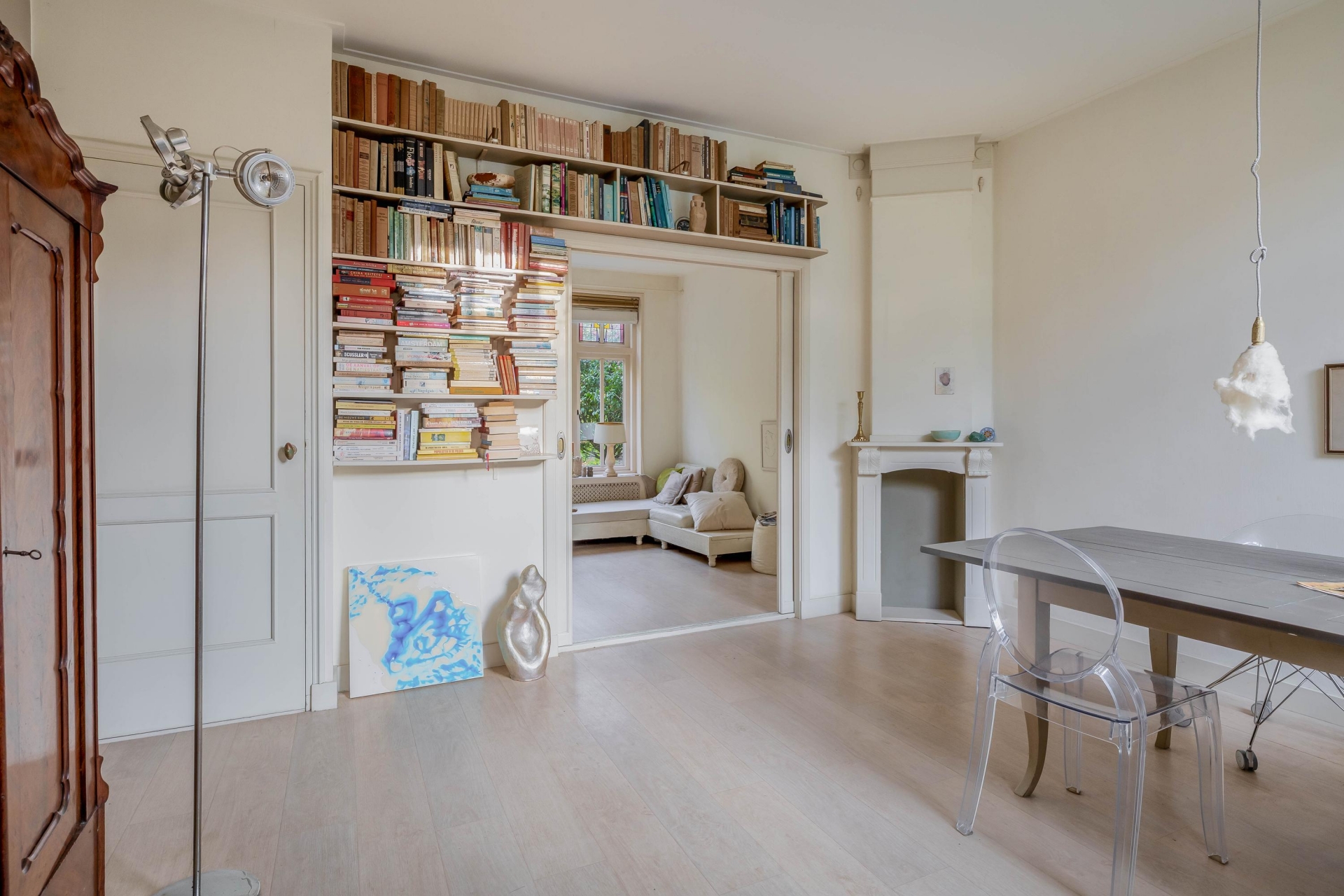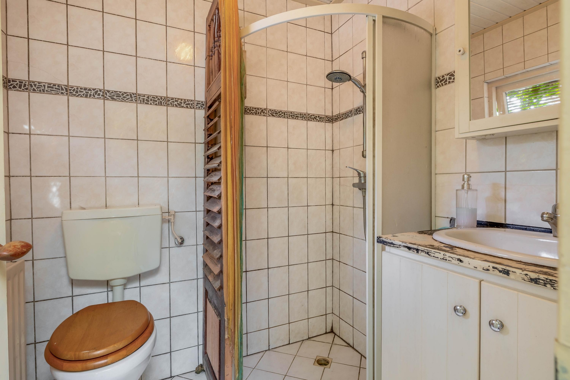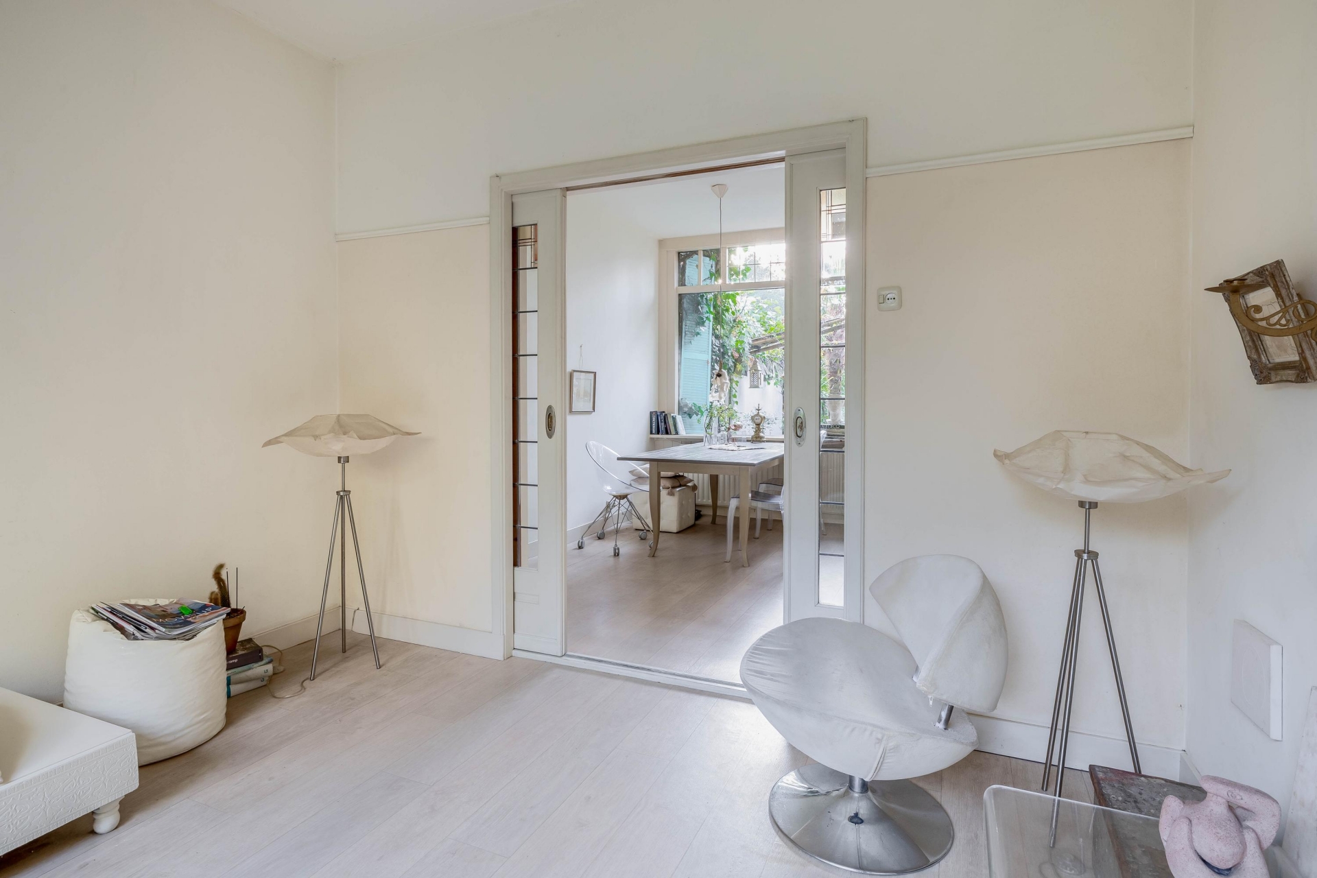 - Sfeervolle kamer en suite met glas-in-lood schuifdeuren;