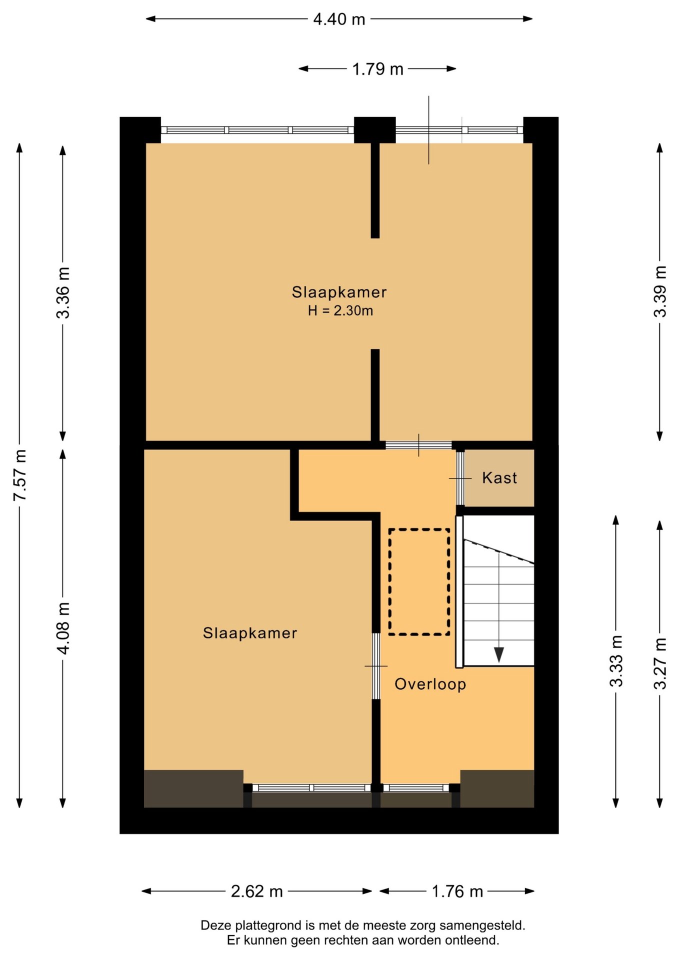 “Deze informatie is door ons met de nodige zorgvuldigheid samengesteld. Onzerzijds wordt echter geen enkele aansprakelijkheid aanvaard voor enige onvolledigheid, onjuistheid of anderszins, dan wel de gevolgen daarvan. Alle opgegeven maten en oppervlakten zijn indicatief.”