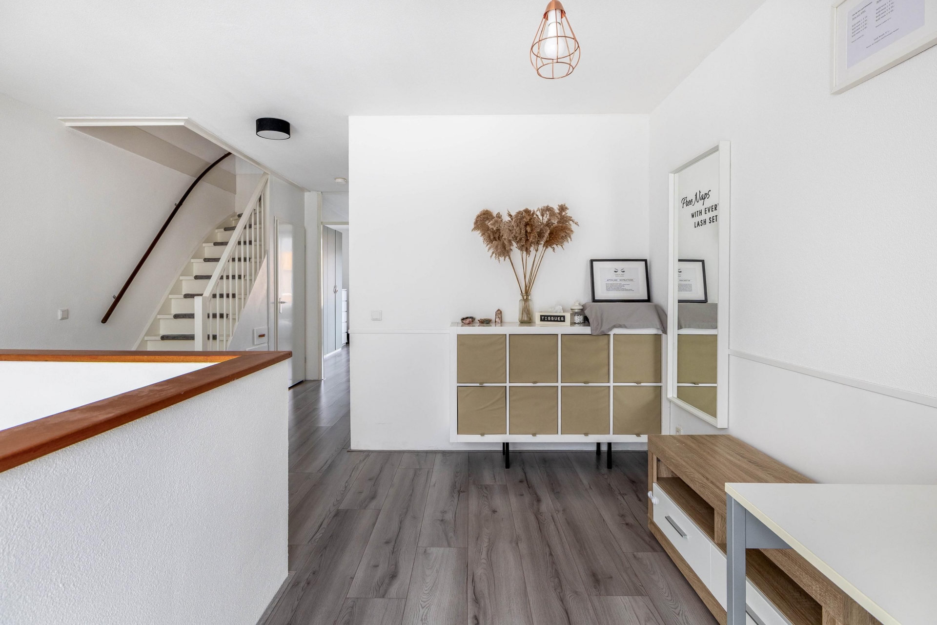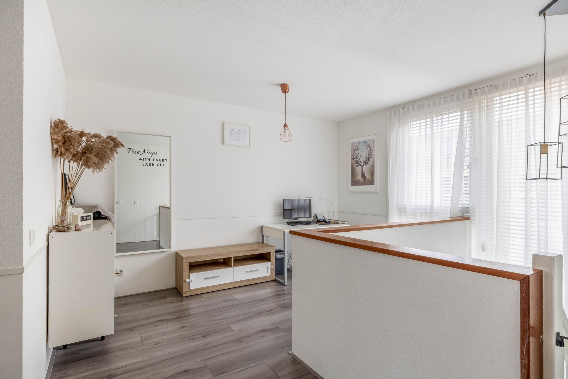 De begane grond is heerlijk licht en overzichtelijk ingedeeld. Bij binnenkomst valt direct de hoge entreehal op, die doorloopt naar de gezellige woonkamer met tuingerichte zithoek en openslaande deuren naar buiten. De strakke vloer, lichte wanden en grote raampartij zorgen voor een moderne uitstraling en fijne sfeer. Er is genoeg ruimte voor een royale zithoek én een grote eettafel, perfect voor gezellige etentjes of lange spelletjesavonden met het gezin.