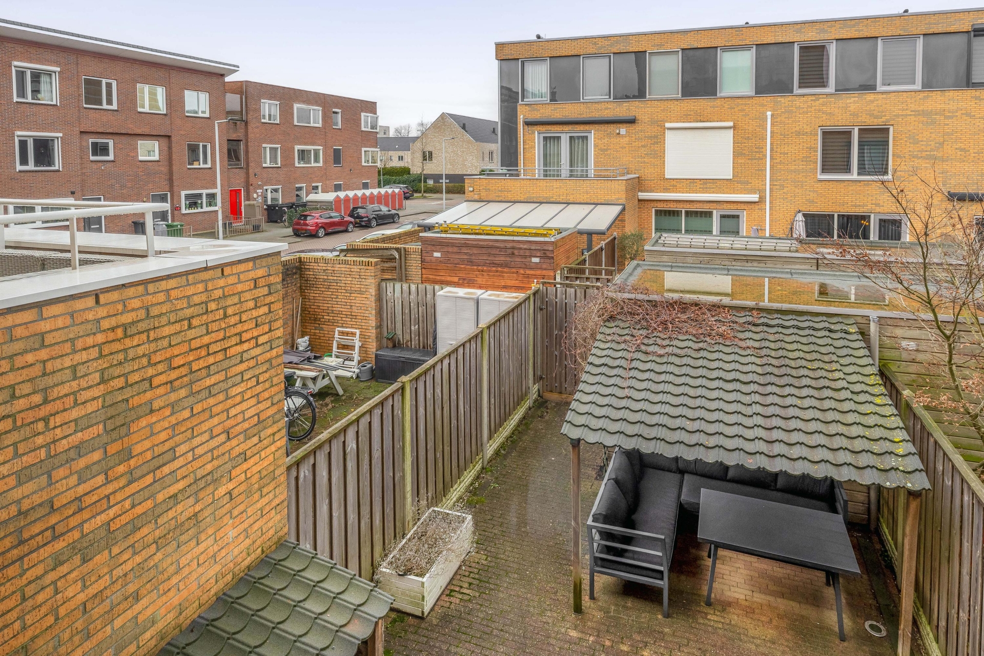 De achtertuin van ca. 50 m² is netjes aangelegd en gelegen op het westen – dat betekent in de middag en avond zon! Achter in de tuin staat een houten berging met elektra, ideaal voor fietsen, tuinkussens of klusmateriaal. De overkapping is een fijne extra plek waar je beschut buiten kunt zitten, ook als het weer iets minder is. De tuin is via een achterom bereikbaar, wat praktisch is voor jonge gezinnen.