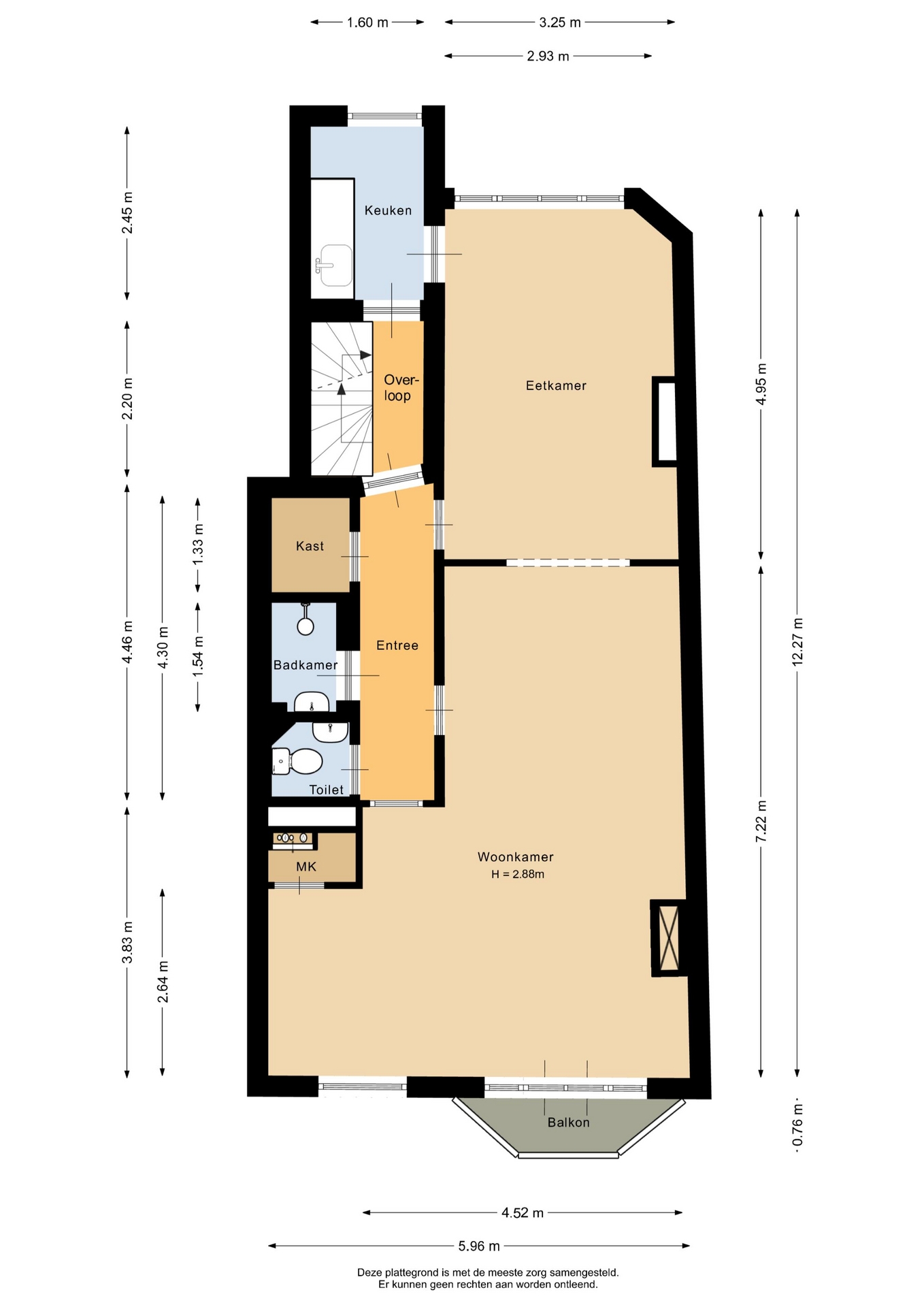 - Plafondhoogte woonkamer: ca. 2,88 meter