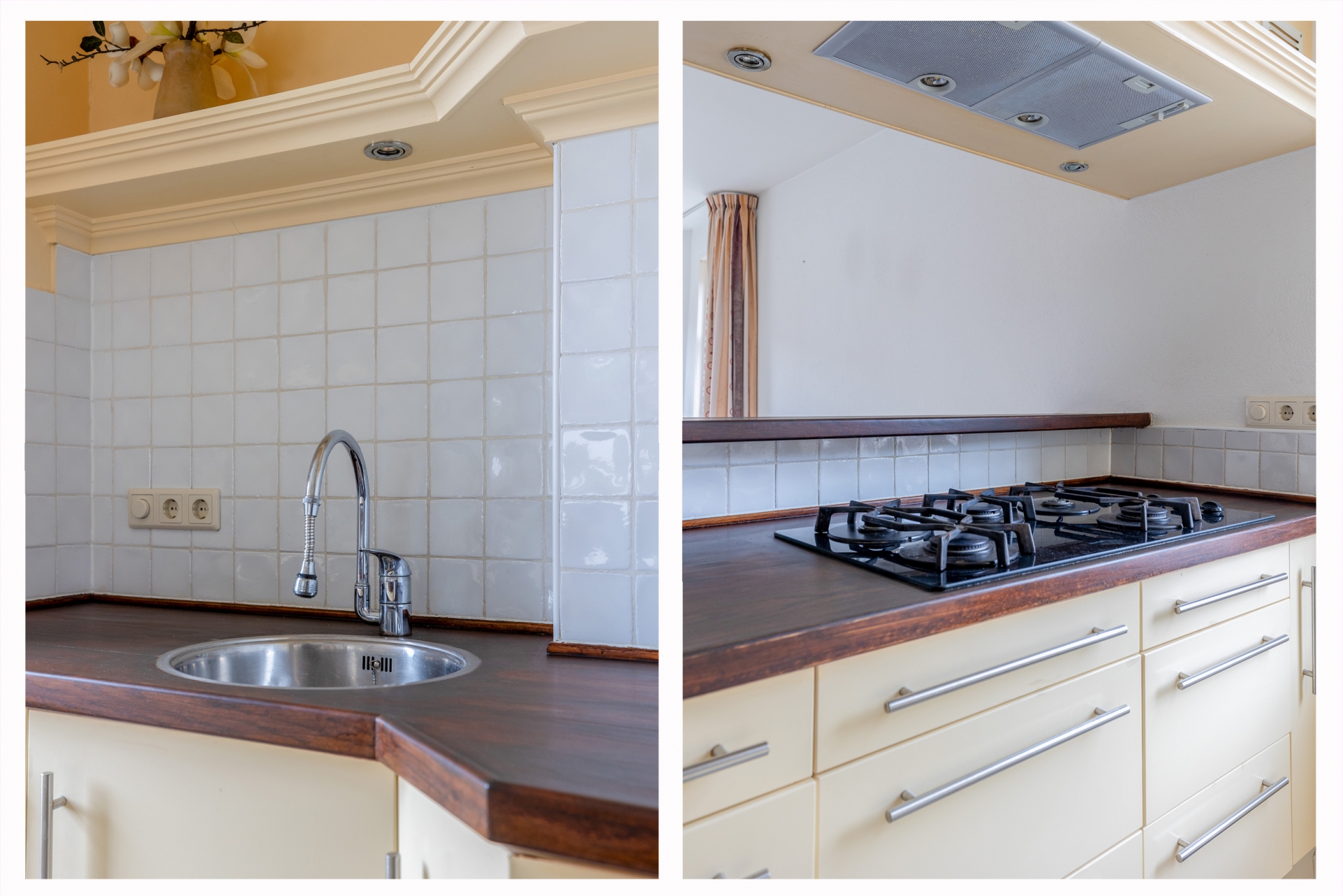 De keuken is voorzien van inbouwapparatuur, waaronder een gaskookplaat, combimagnetron, vaatwasser en koel-vriescombinatie. De lichte kleurstelling en het werkblad in warme houttint maken het een prettige werkplek. Vanuit de keuken kijk je leuk uit over omliggende panden. Verder biedt het appartement een woonkamer met apart eetgedeelte en 2 slaapkamers, waarvan 1 met kleedkamer en suite.