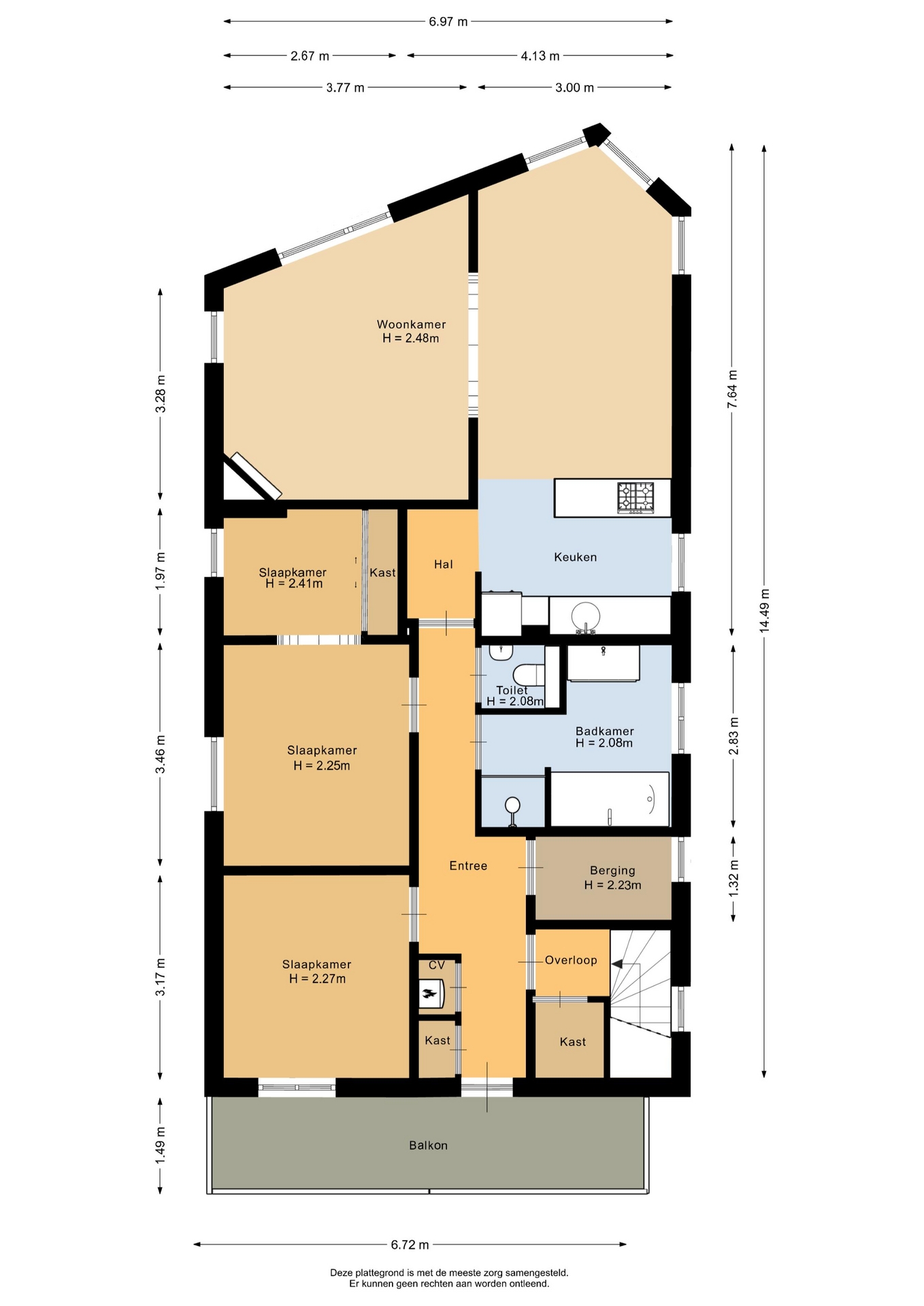 “Deze informatie is door ons met de nodige zorgvuldigheid samengesteld. Onzerzijds wordt echter geen enkele aansprakelijkheid aanvaard voor enige onvolledigheid, onjuistheid of anderszins, dan wel de gevolgen daarvan. Alle opgegeven maten en oppervlakten zijn indicatief.”
