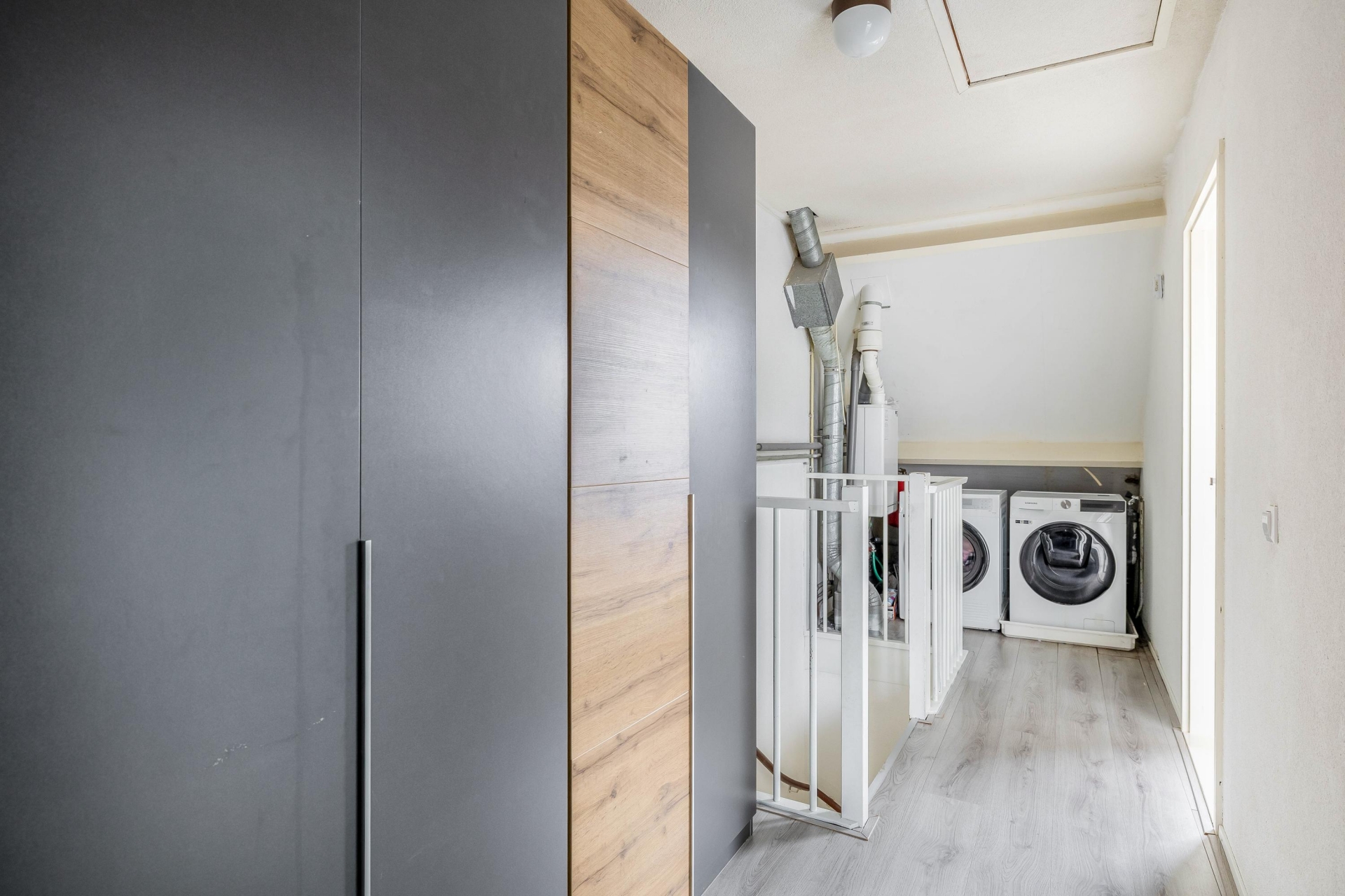 Op de tweede verdieping zijn nog twee kamers gecreëerd, mede dankzij de dakkapel aan de achterzijde. Deze kamers zijn perfect als slaapkamer, logeerkamer of werkkamer. De overloop beschikt over aansluitingen voor de wasmachine en droger én er is veel bergruimte beschikbaar, inclusief toegang tot een vliering.