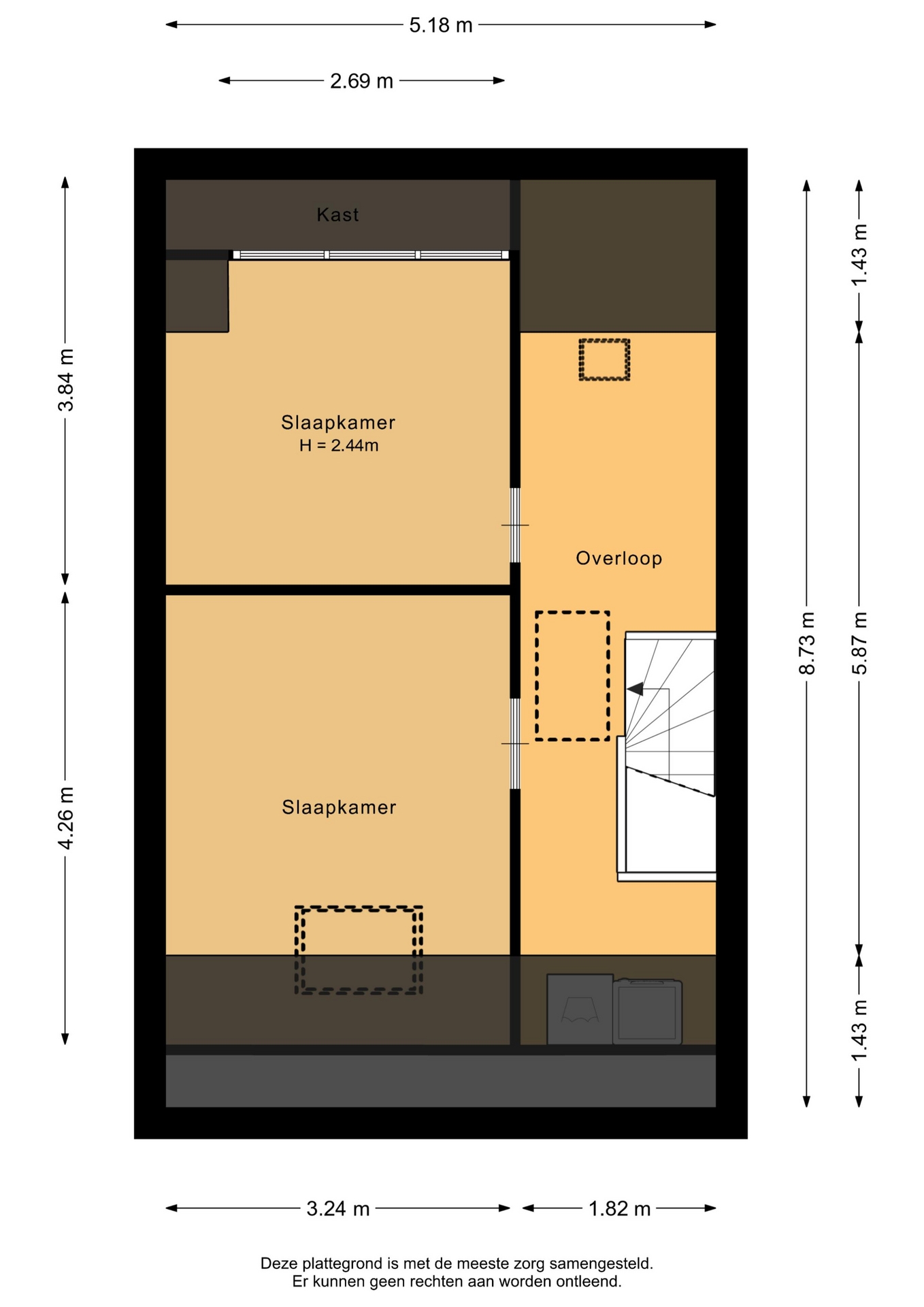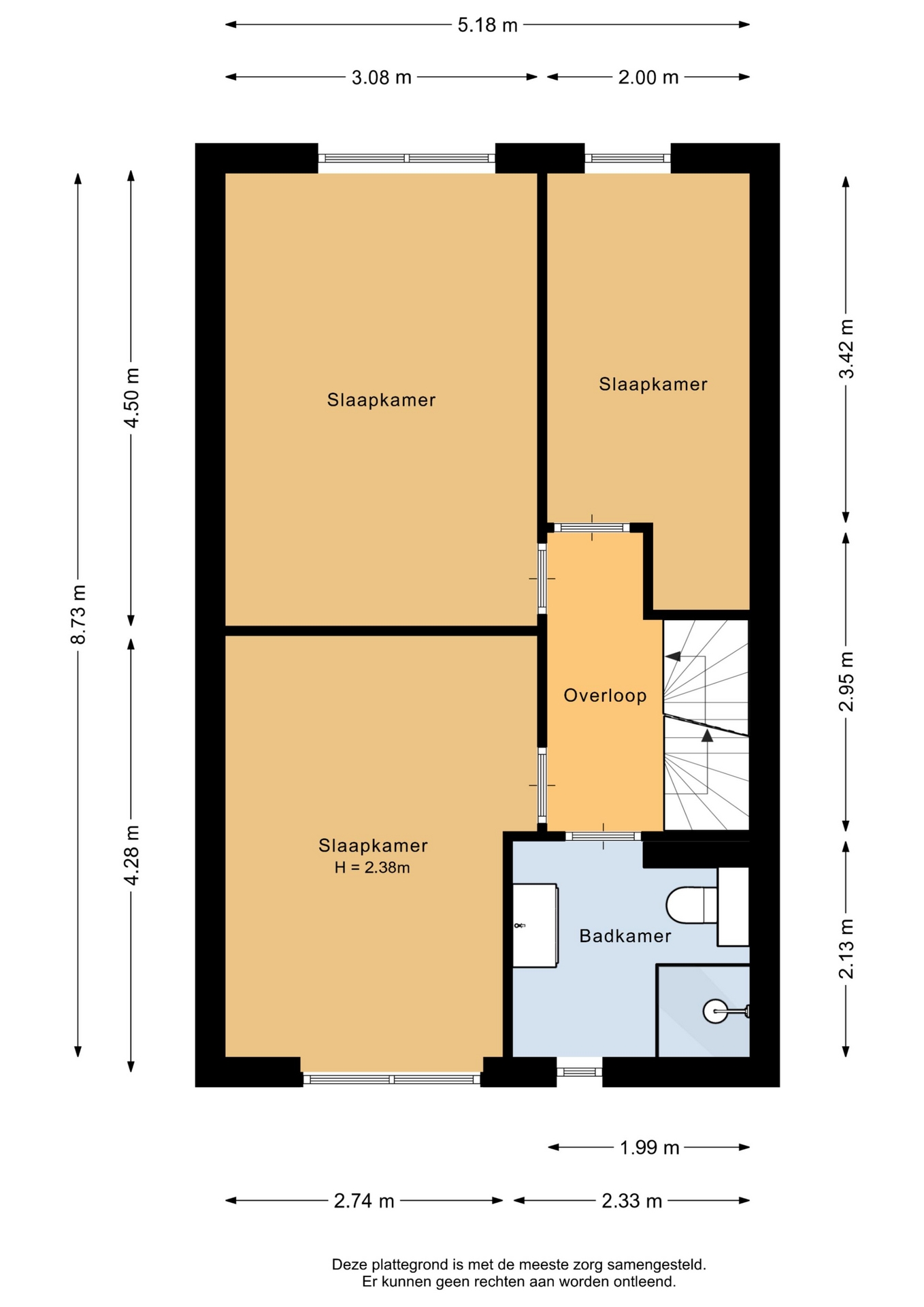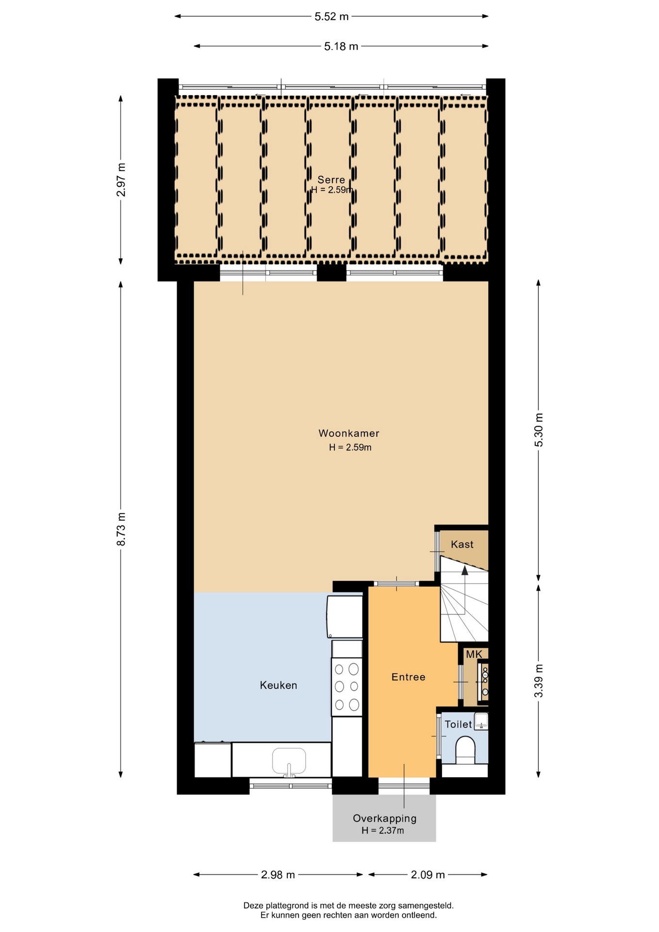 “Deze informatie is door ons met de nodige zorgvuldigheid samengesteld. Onzerzijds wordt echter geen enkele aansprakelijkheid aanvaard voor enige onvolledigheid, onjuistheid of anderszins, dan wel de gevolgen daarvan. Alle opgegeven maten en oppervlakten zijn indicatief.”