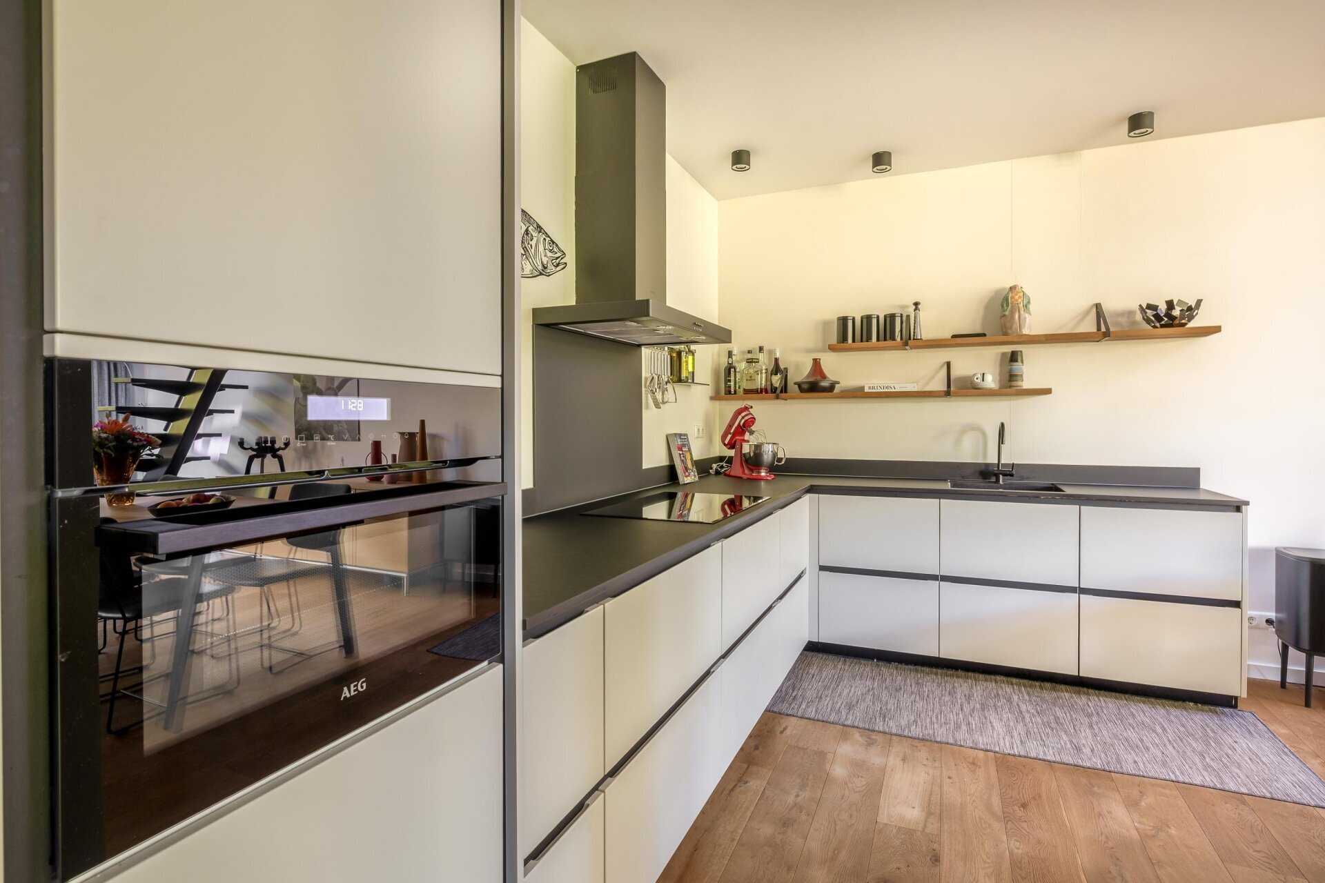 - Fraaie houten vloer aanwezig met vloerverwarming (m.u.v. de inpandige berging);