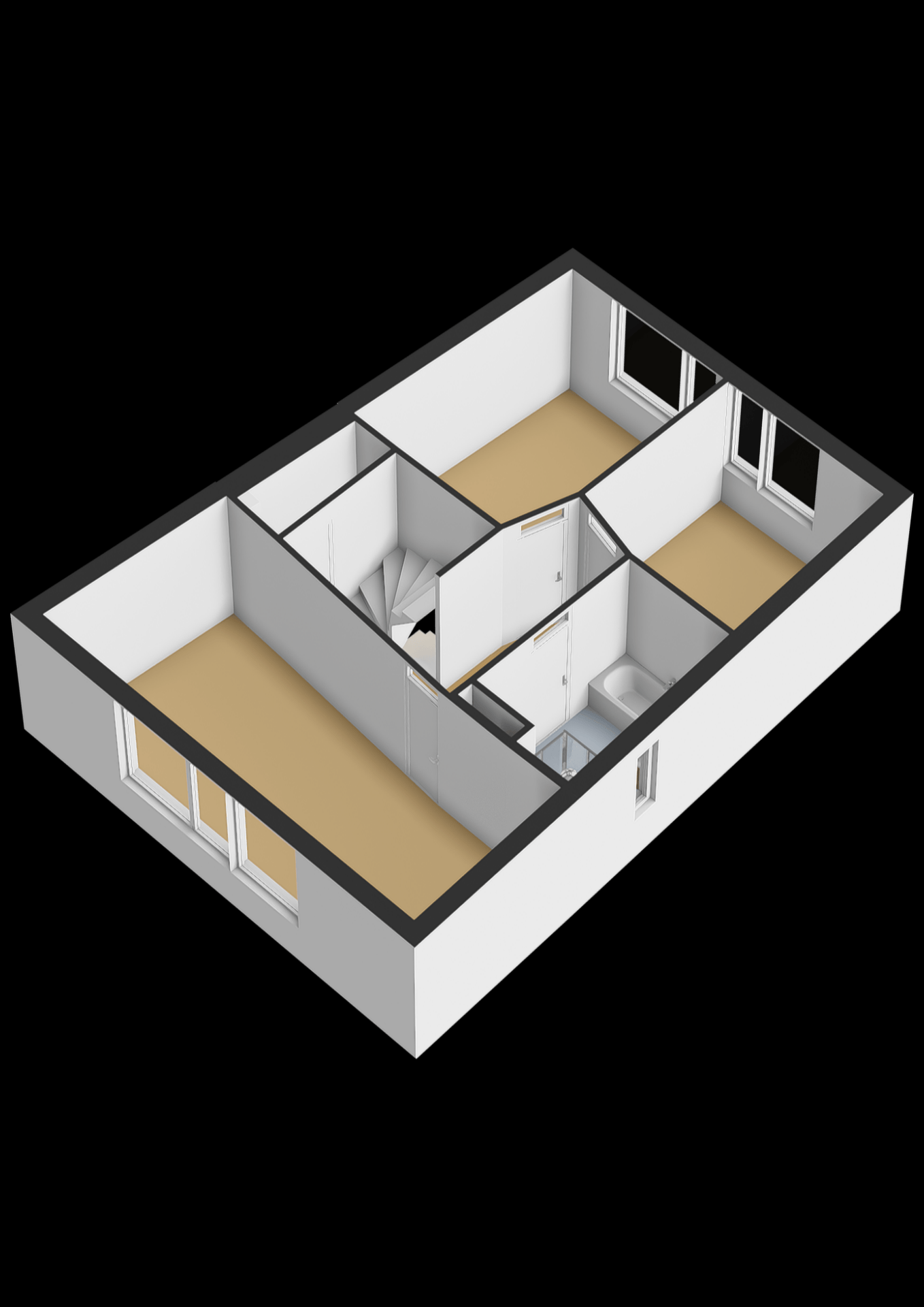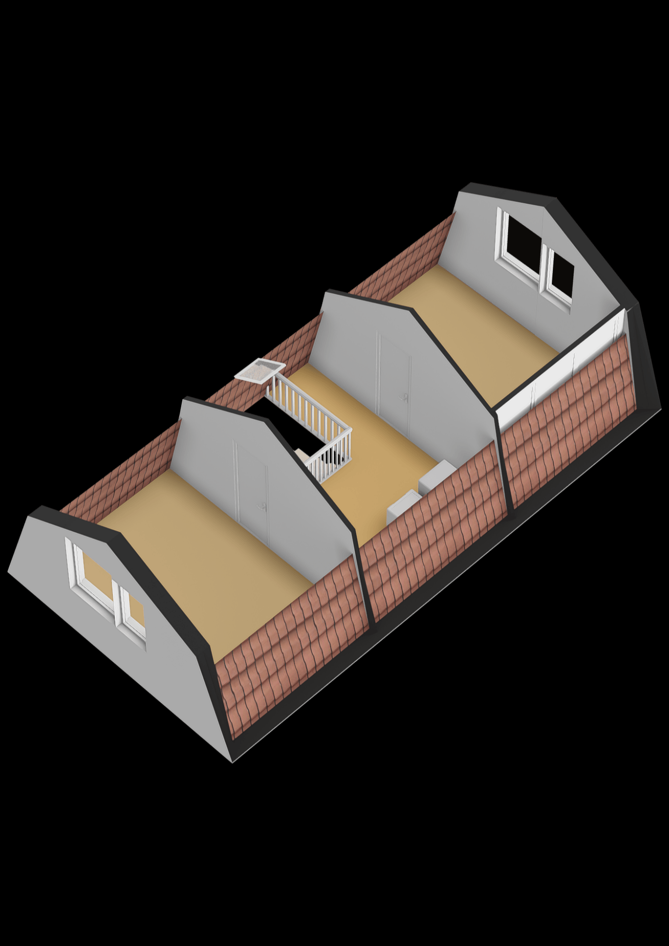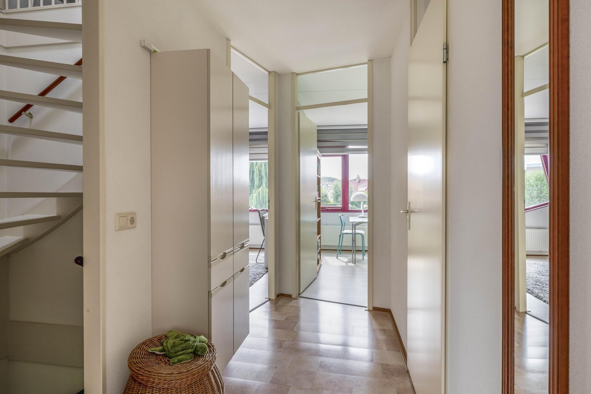 Deze verdieping biedt een vierde en vijfde slaapkamer. Op de overloop bevinden zich de wasmachineaansluiting, mechanische ventilatie en Cv-installatie.