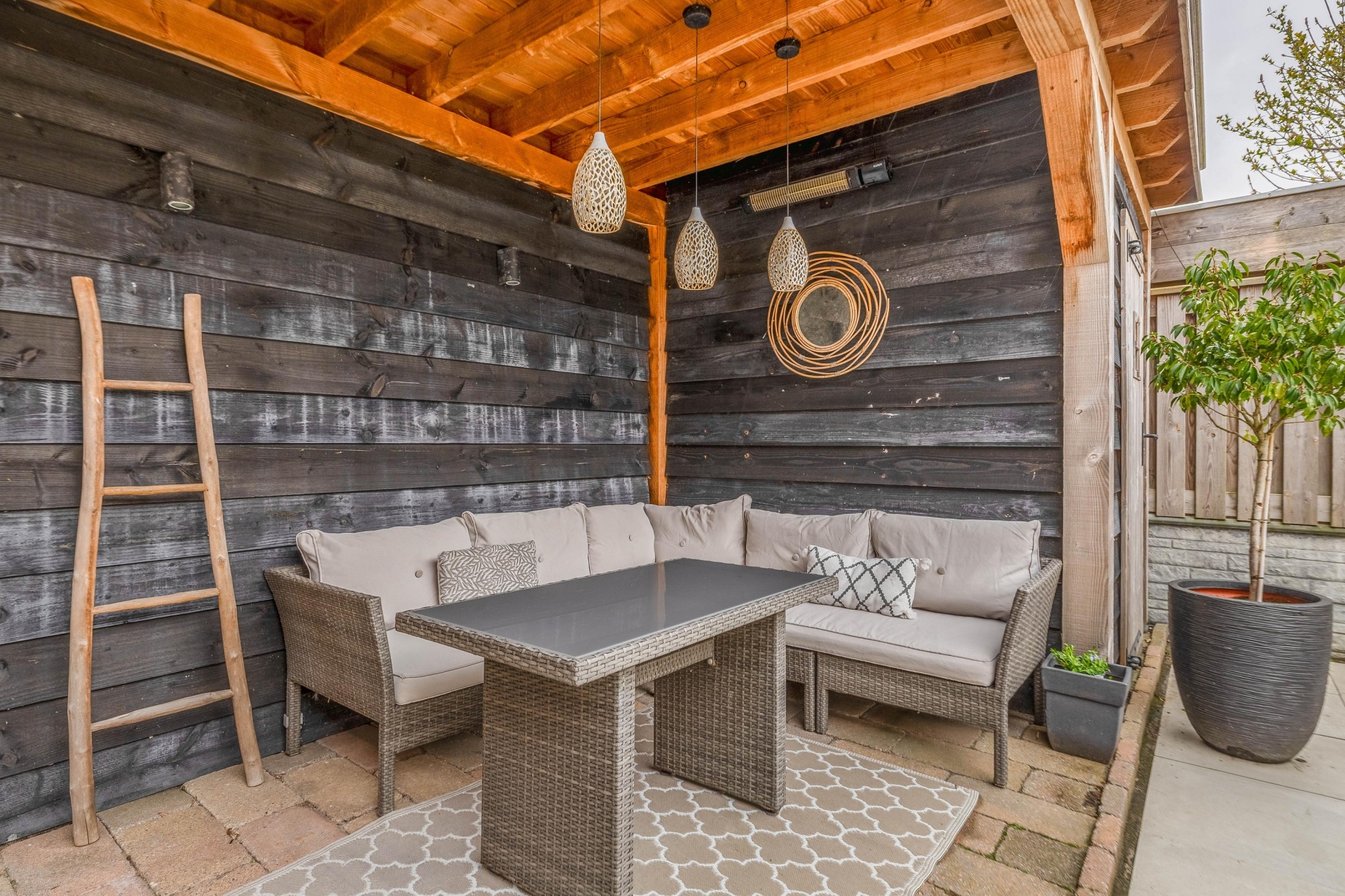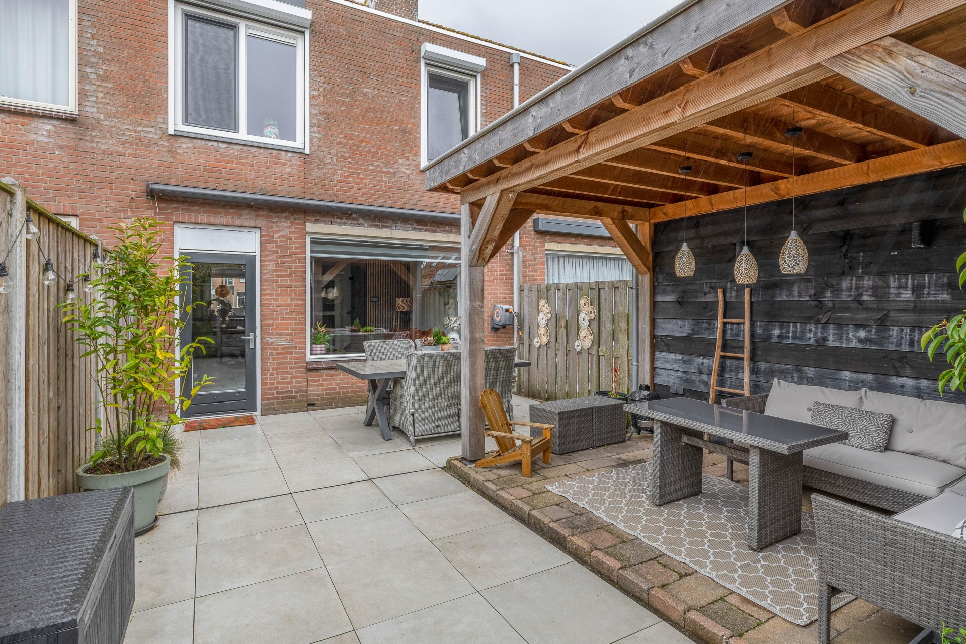 Of je nu wilt loungen, dineren of gewoon even ontspannen: deze plek biedt het allemaal. Achterin de tuin staat een berging en er is een handige achterom aanwezig.