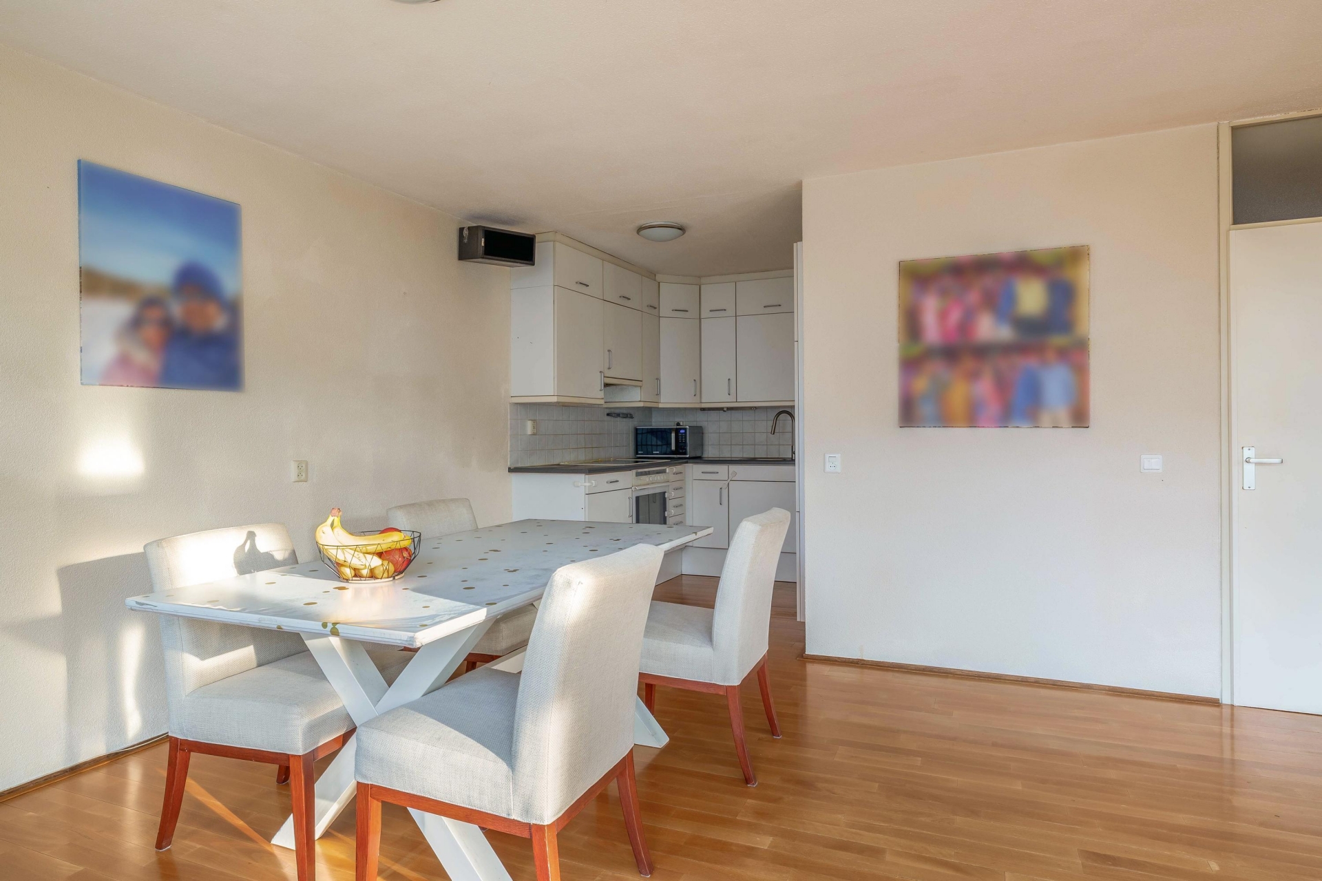 Parkeer je auto op je eigen parkeerplaats en stap binnen in dit comfortabele appartement op de eerste verdieping! Er is een ruim terras aan de achterzijde gelegen op het noordoosten (ca. 20m²) waar je veel privacy hebt. Ben je een zonliefhebber? Aan de voorzijde zijn maar liefst twee balkons gelegen op het zuidwesten. De indeling is ideaal, met de balkons grenzend aan de lichte woonkamer met een open hoekkeuken met inbouwapparatuur. Vanuit de ruime woonkamer heb je een mooi uitzicht en veel zonlicht. Verder zijn er twee ruime slaapkamers en een grote badkamer met ligbad, inloopdouche, wastafelmeubel en extra toilet. De hal is heel ruim opgezet, wat zorgt voor comfort en een ruimtelijk gevoel. Er is een handige inpandige berging/bijkeuken aanwezig, daar bevindt zich ook de aansluiting van de wasmachine. Wat wens je nog meer?!