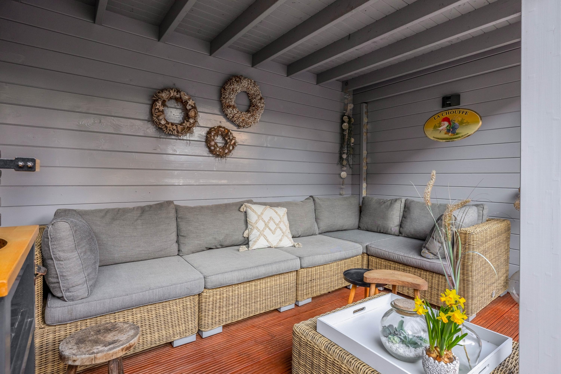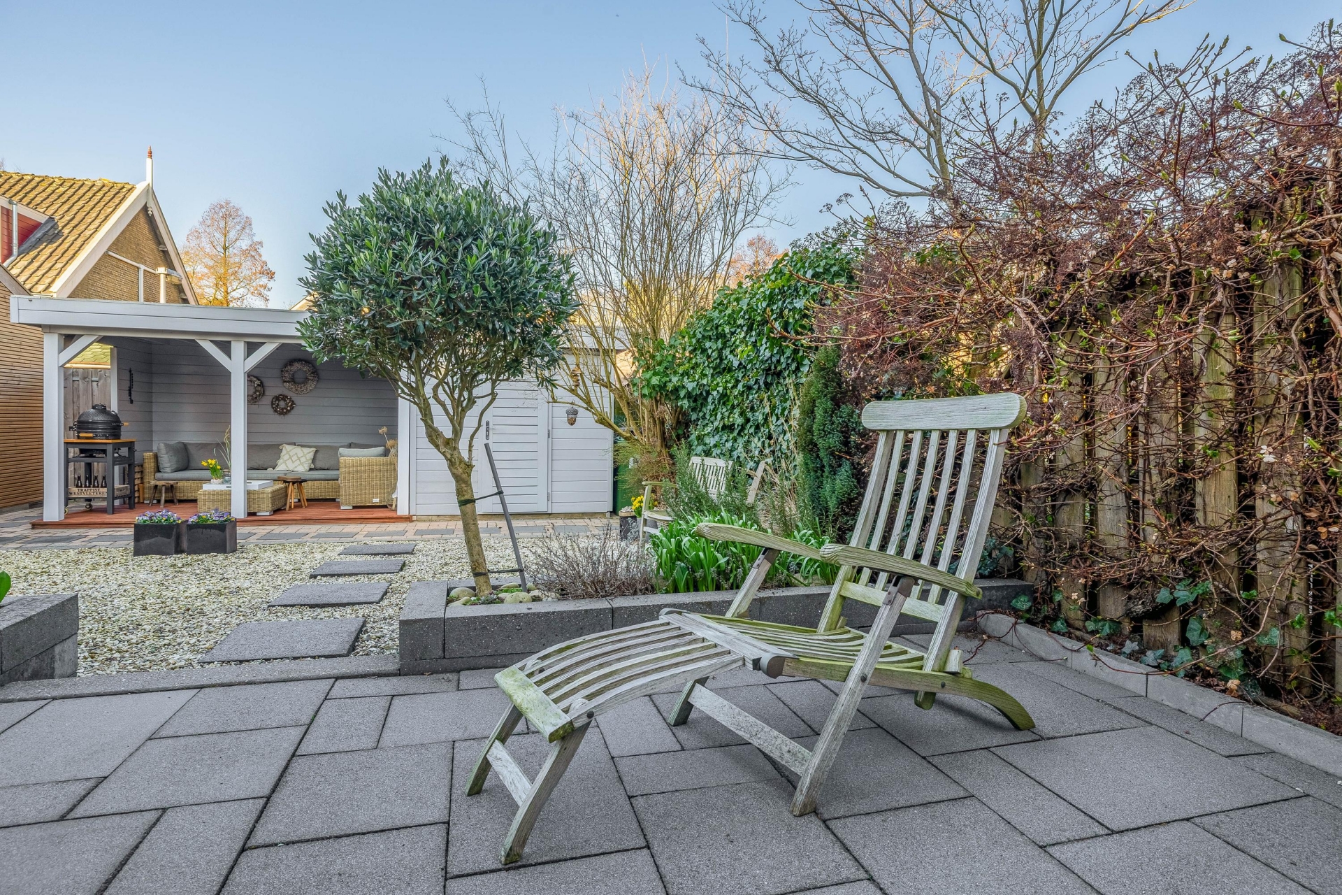 - Fraaie overkapping met bergruimte in de achtertuin