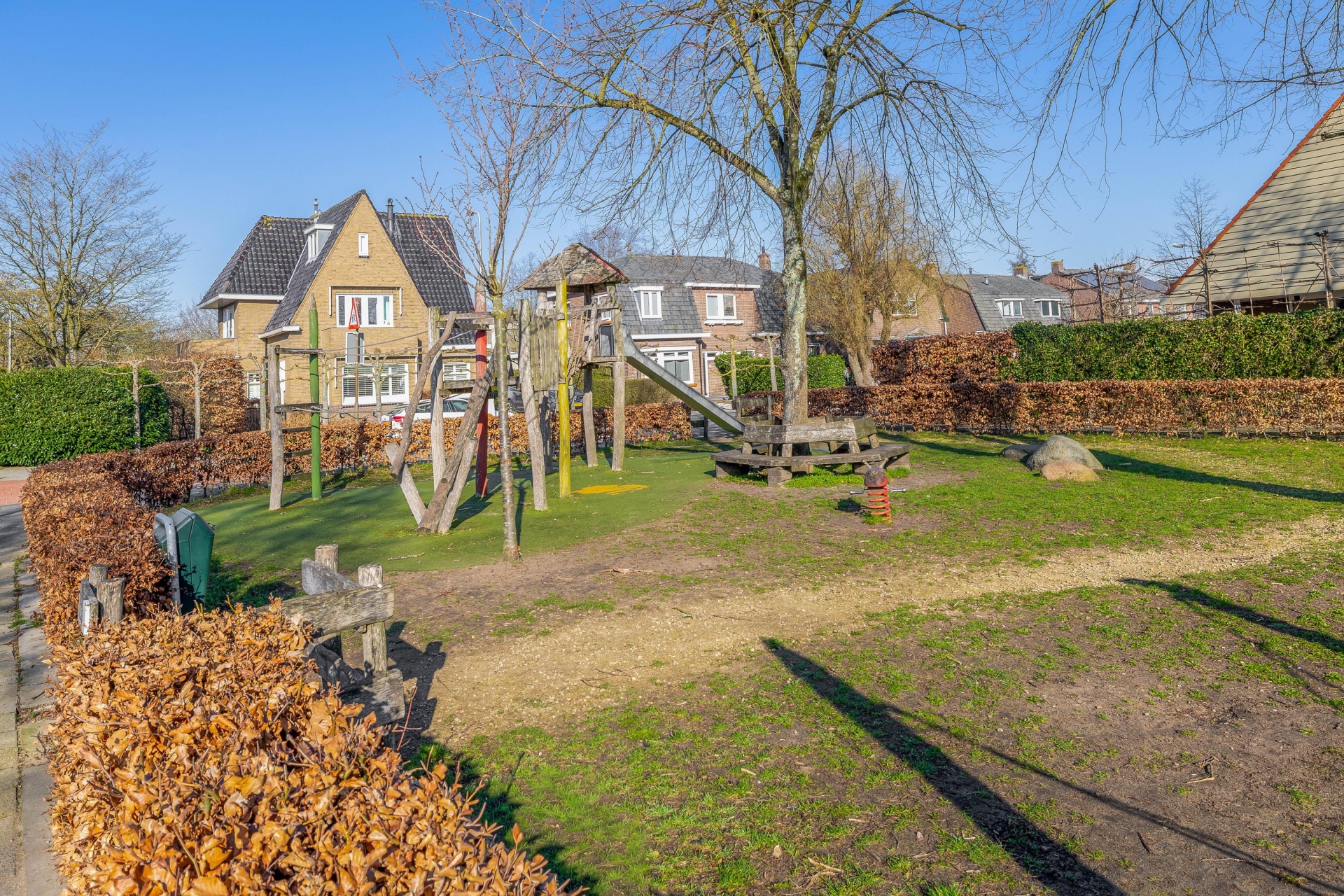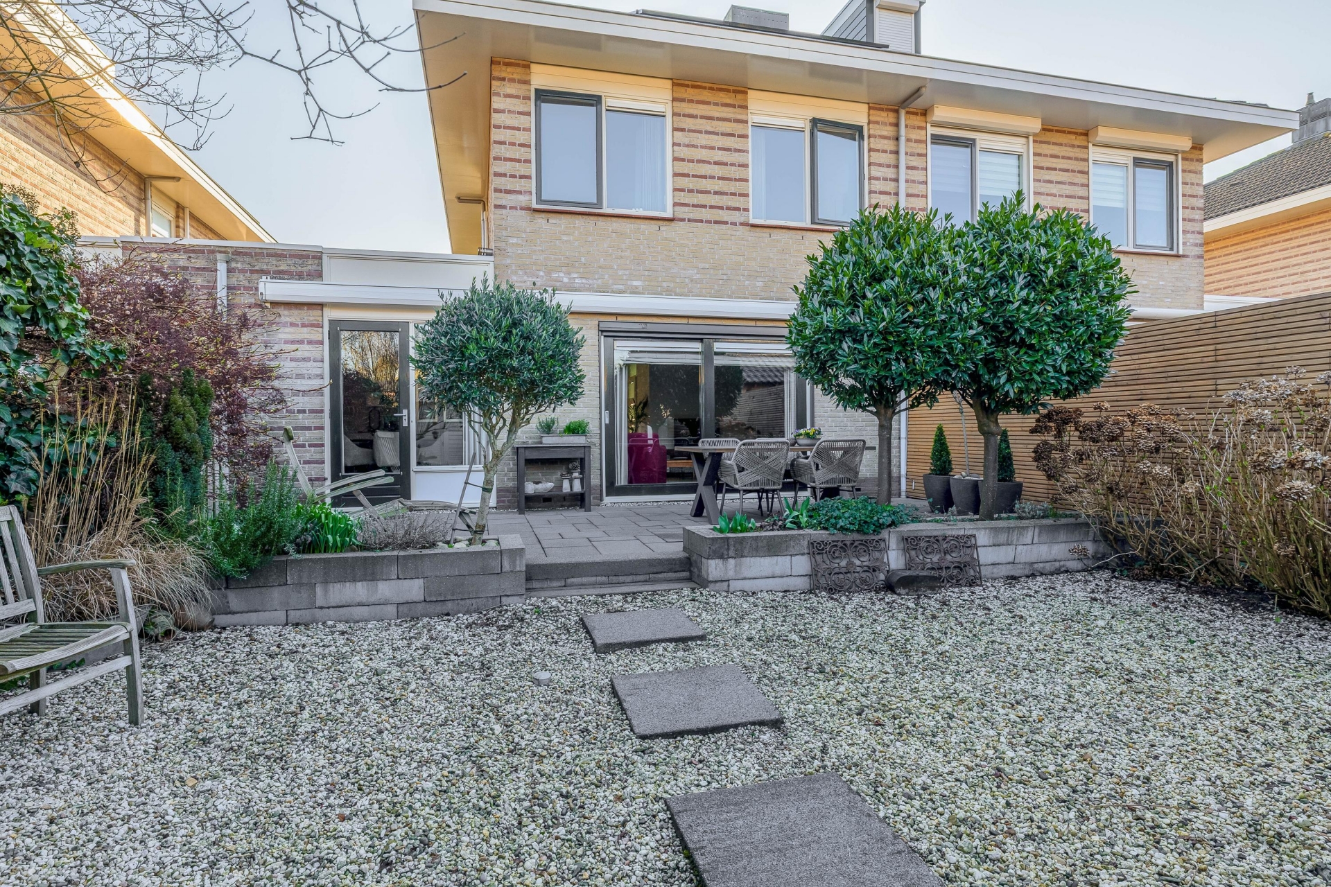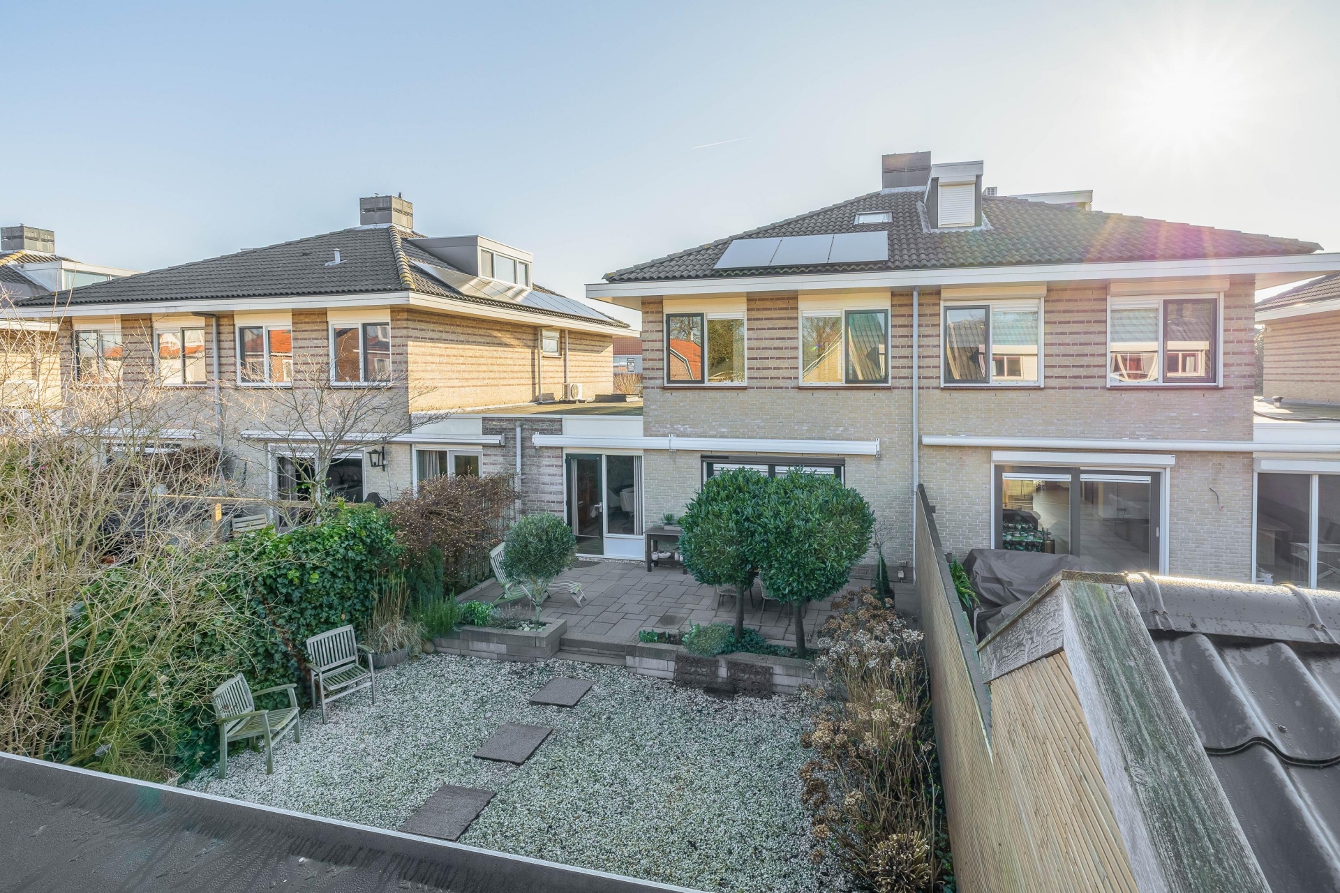 De achtertuin is een groot pluspunt van dit huis. De tuin ligt op het westen, waardoor je hier vooral in de middag en avond heerlijk van de zon kunt genieten. Of je nu wilt ontspannen met een boek, buiten wilt eten met vrienden of kinderen wilt laten spelen – de tuin biedt er alle ruimte voor.