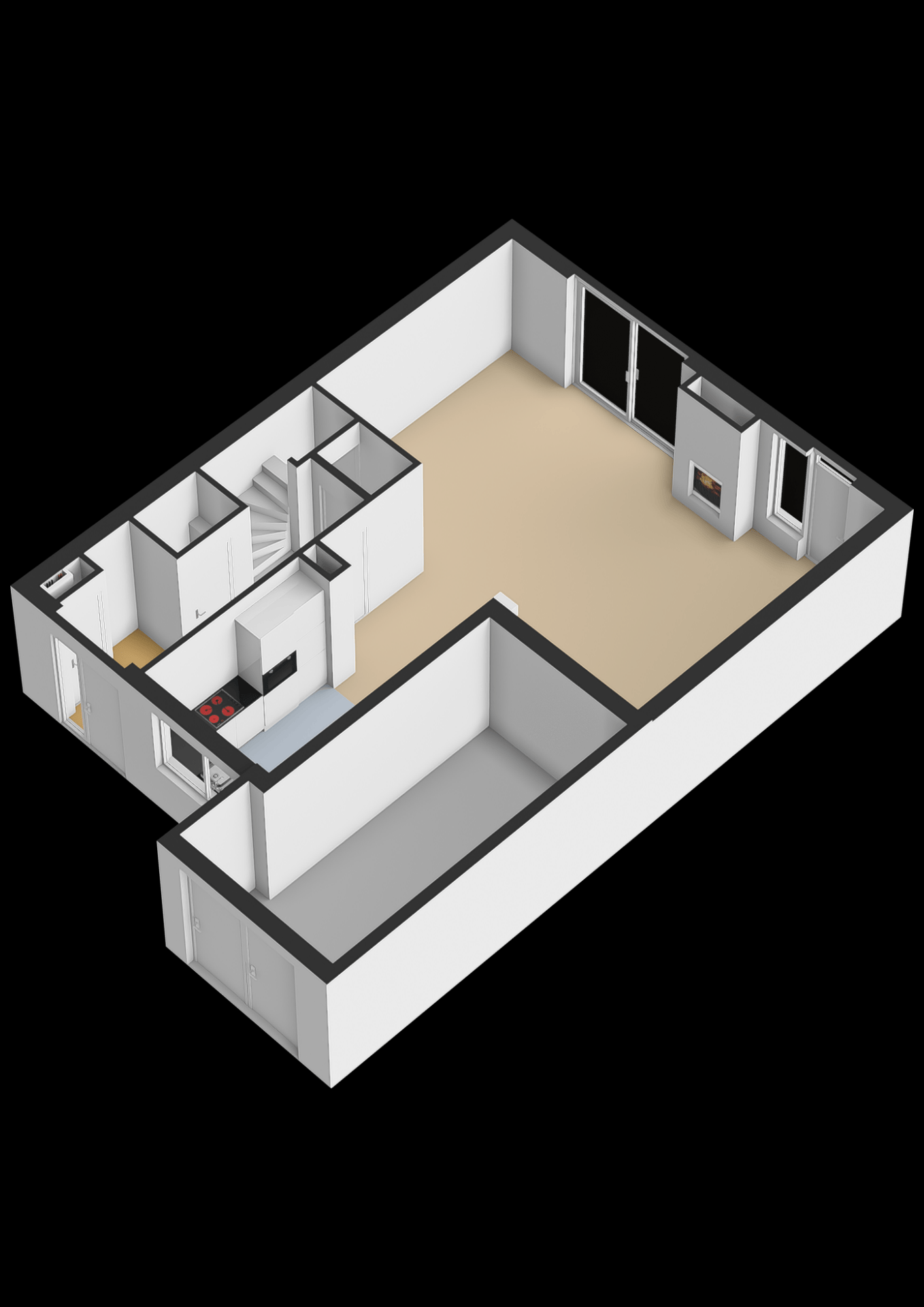 De begane grond vormt zo een prettige leefruimte waar licht, ruimte en een logische indeling samenkomen.