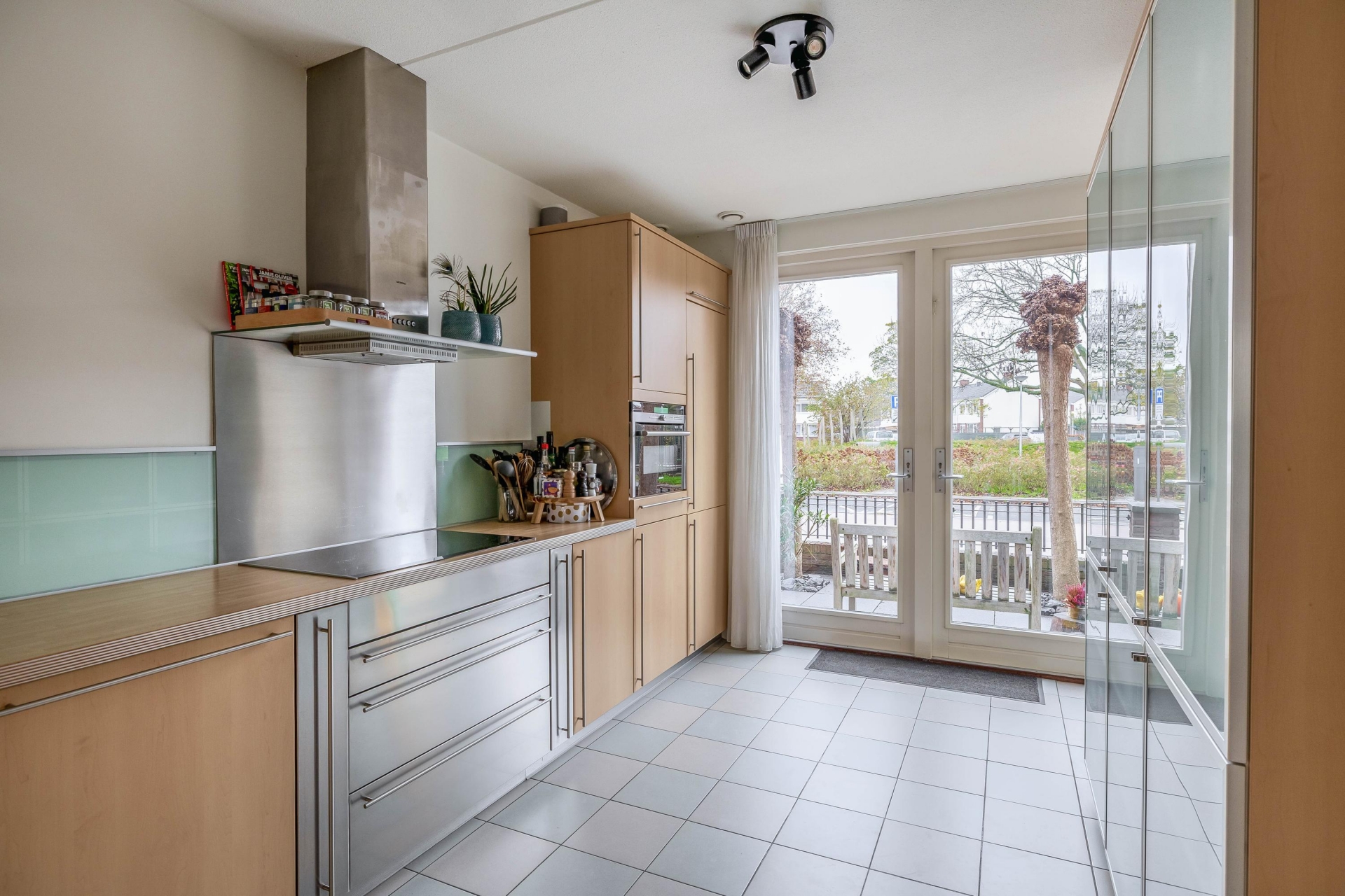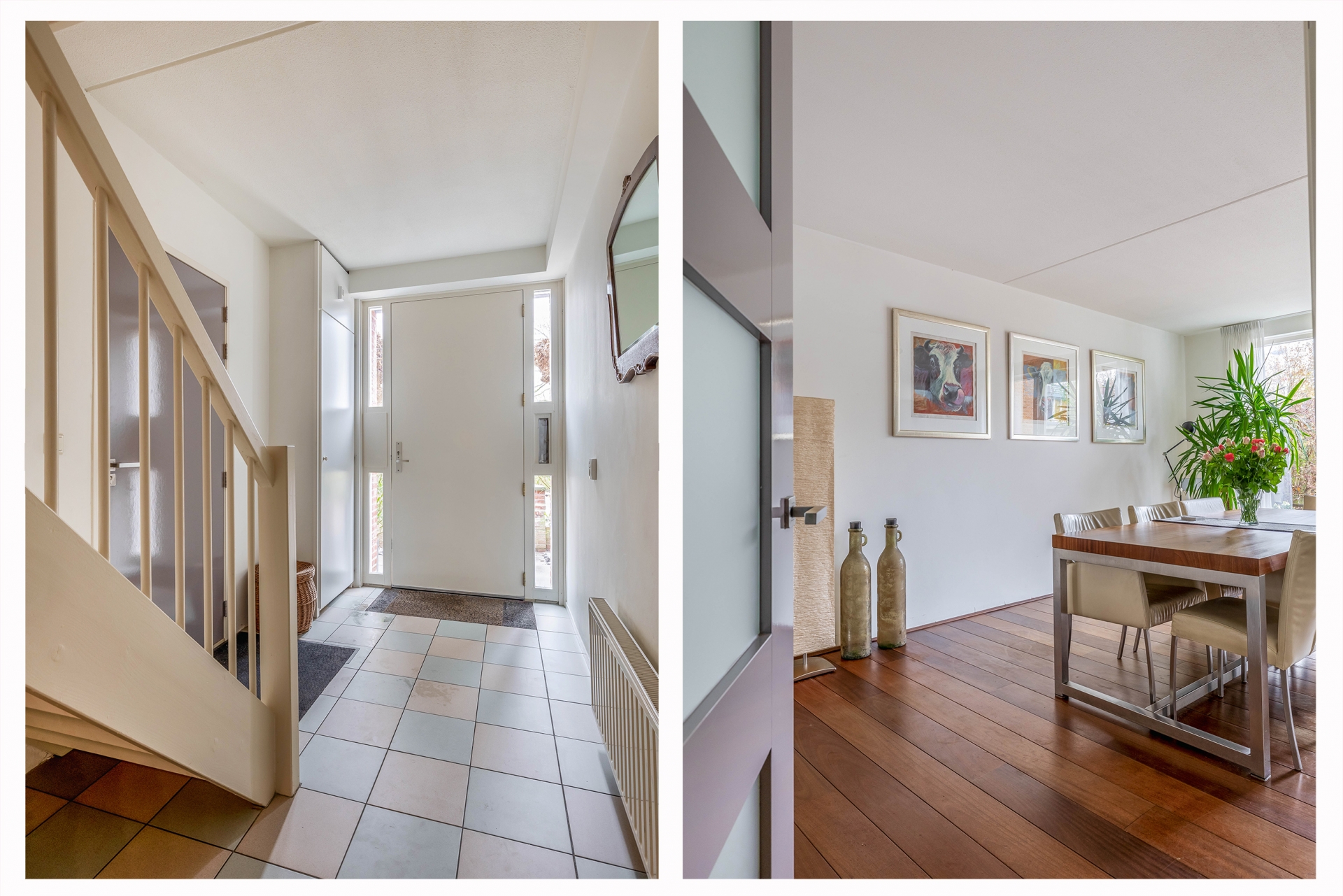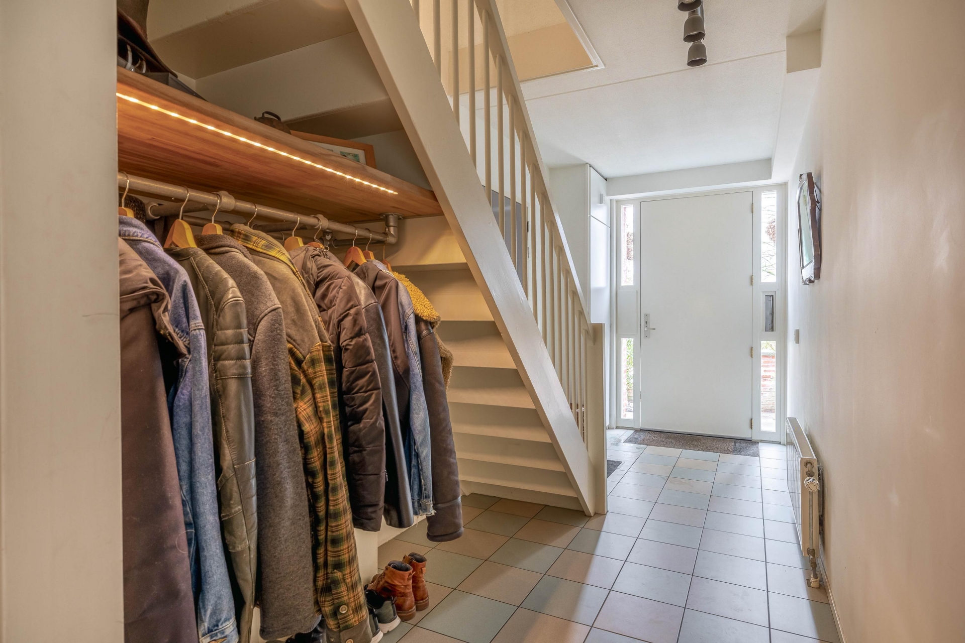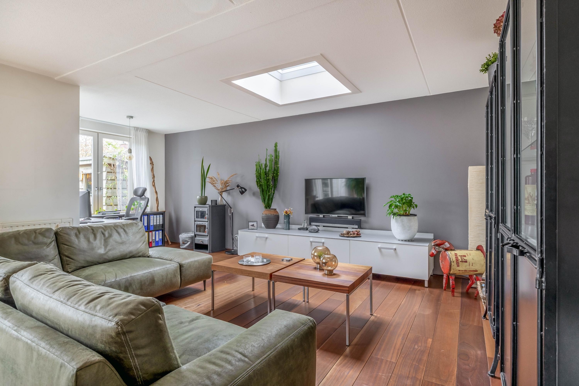 De woonkamer van circa 35 m² is tuingericht en heerlijk licht dankzij de grote raampartijen. Vanuit hier kijk je zo de groene achtertuin in. De begane grond is praktisch ingedeeld met een ruime hal, toilet, toegang tot de garage én natuurlijk de open keuken aan de voorzijde. De keuken is voorzien van inbouwapparatuur en een fijne plek voor een grote eettafel, waar je met het hele gezin of met vrienden lekker kunt tafelen. De woonkamer en keuken lopen naadloos in elkaar over en maken dit een fijne leefruimte met volop mogelijkheden.