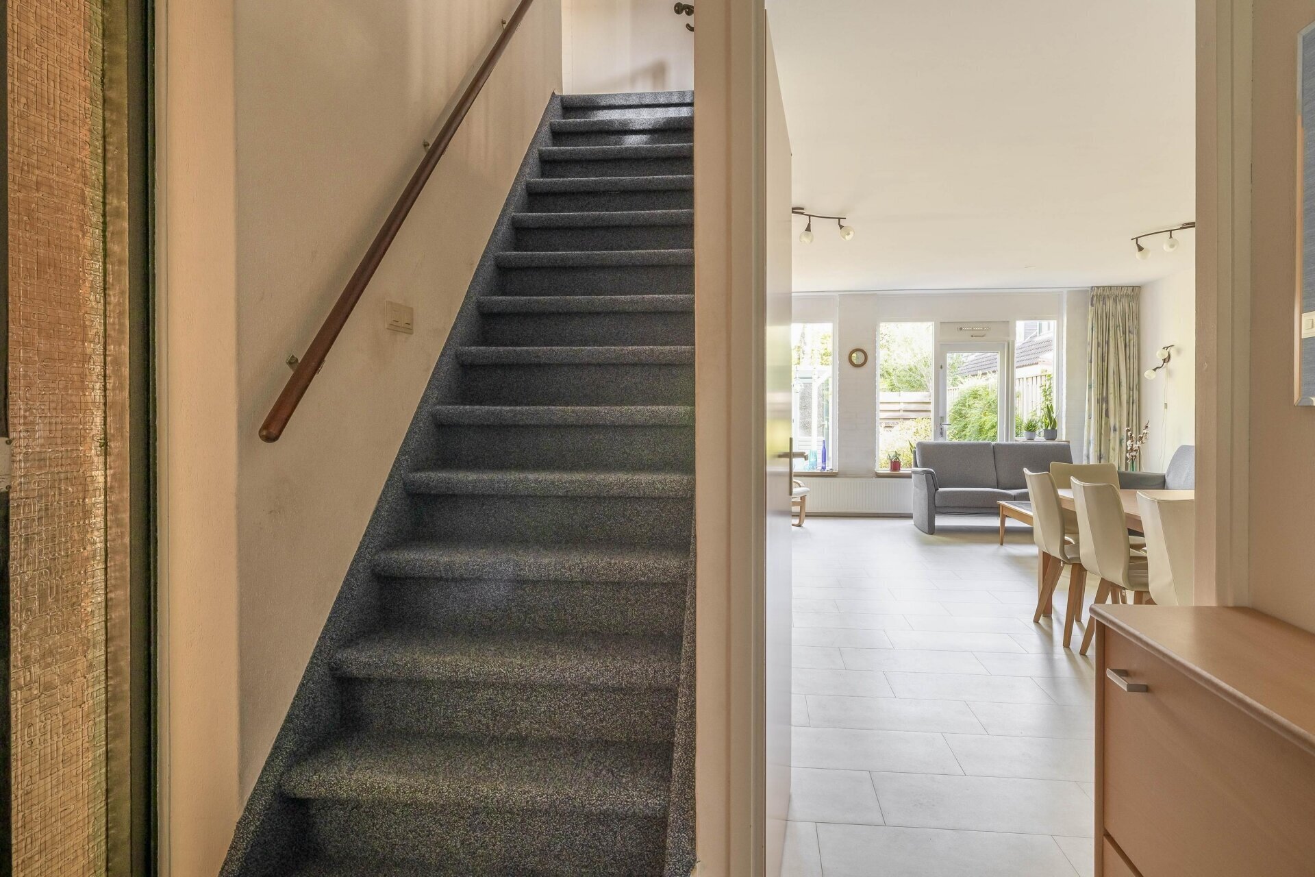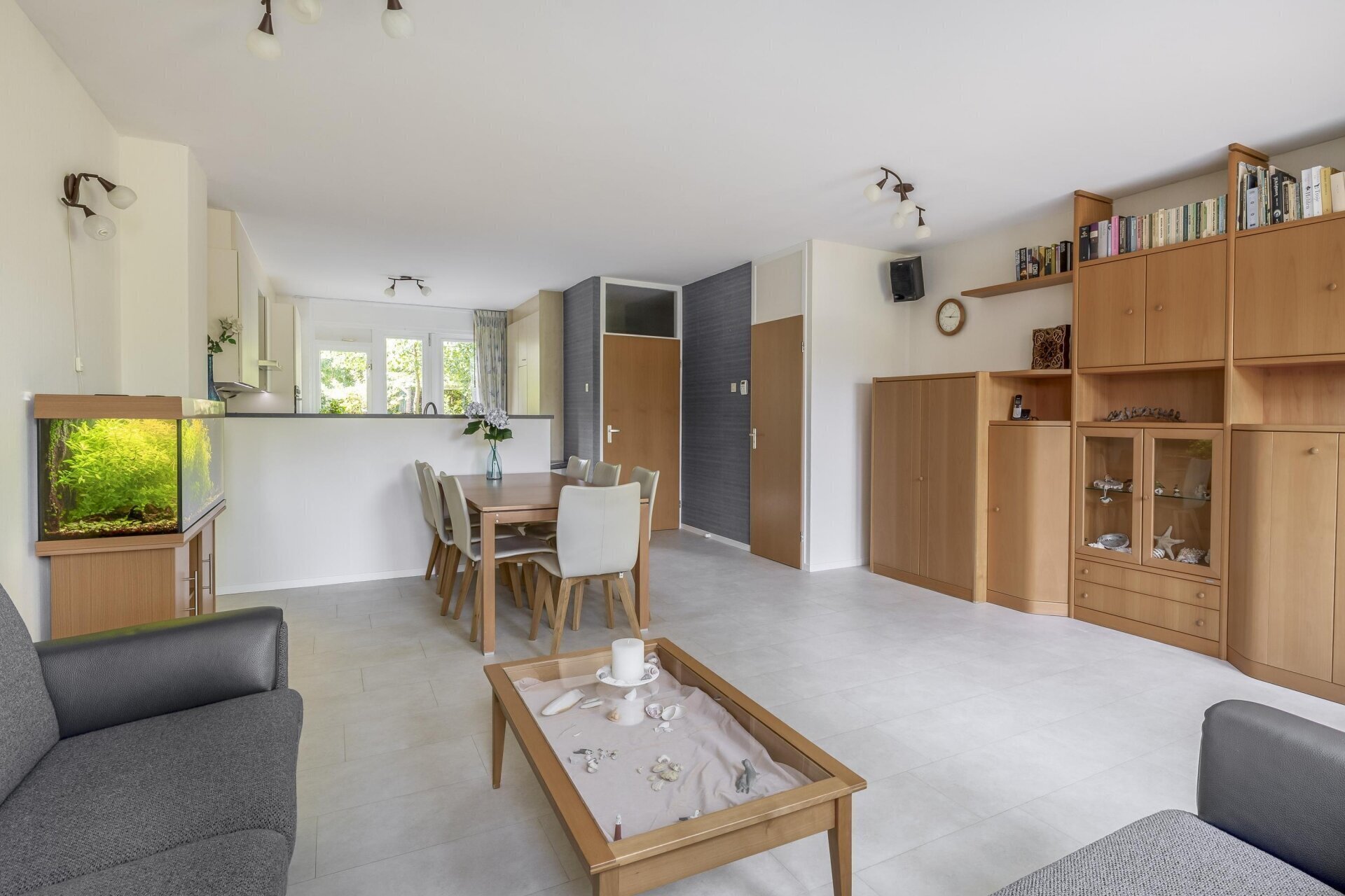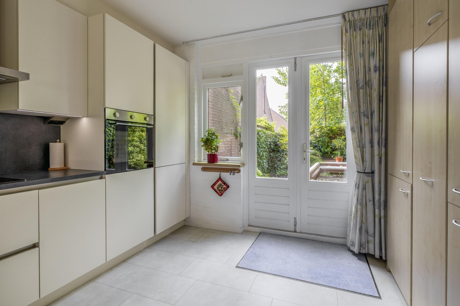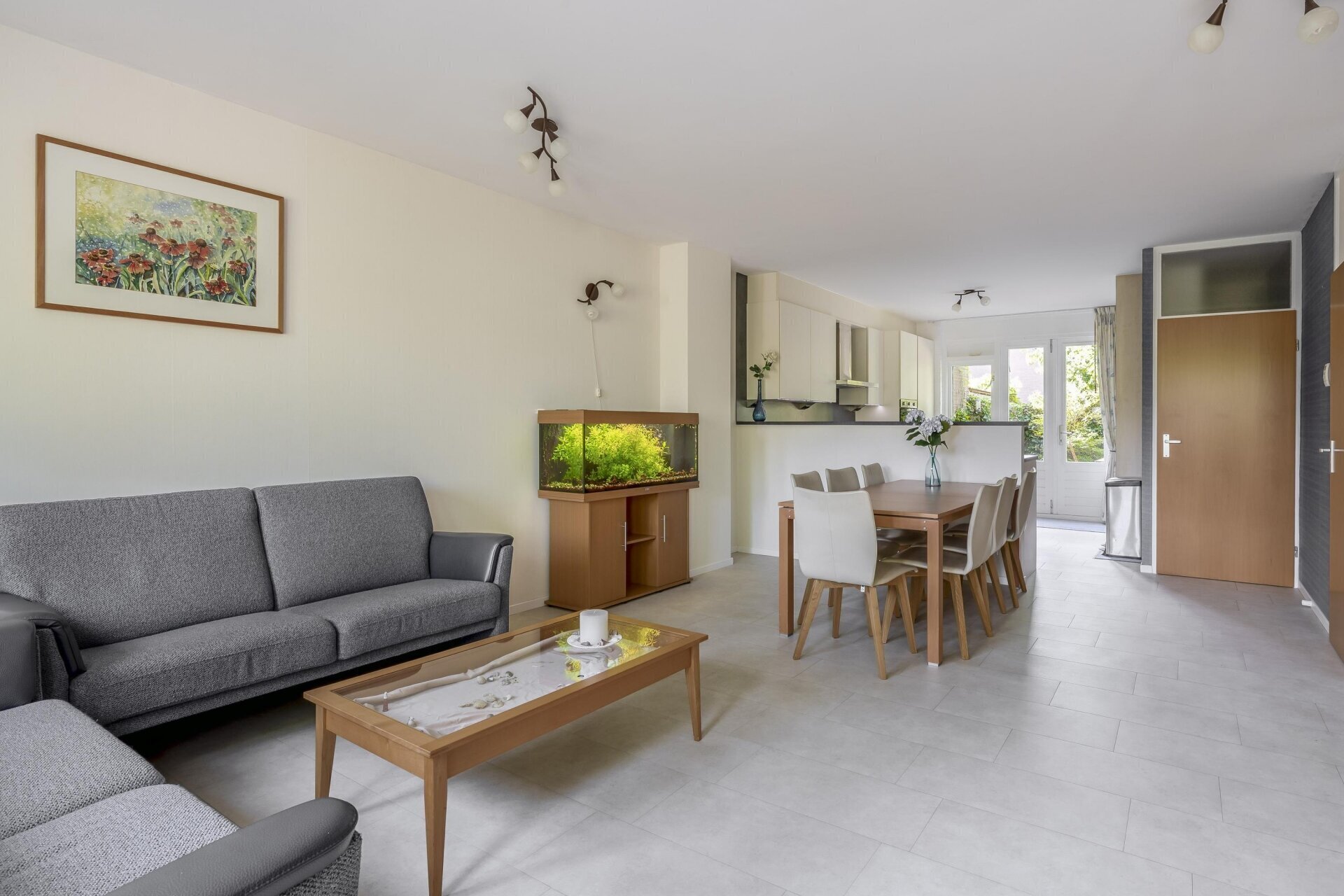 De begane grond ligt in een rustige, groene omgeving. Vanuit de woonkamer en keuken geniet je van het uitzicht op zowel de voor- als achtertuin. Beide tuinen zijn ruim en naar eigen smaak in te richten. Zin in de zon? Neem plaats in de voortuin, terwijl je in de achtertuin juist de verkoelende schaduw vindt. De lichte, royale woonkamer loopt naadloos over in de in 2023 vernieuwde keuken, die is uitgerust met diverse inbouwapparatuur, waaronder een vaatwasser, kookplaat met afzuigkap en een combi-oven. Bij de entree bevindt zich nog het toilet met fontein en de meterkast.