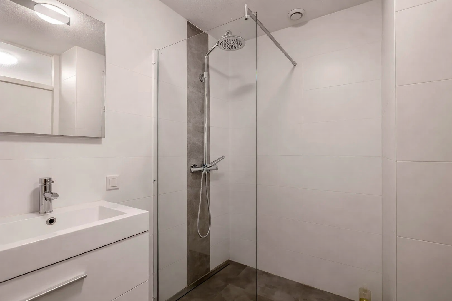 De indeling van het appartement is niet alleen praktisch, maar voelt ook bijzonder aangenaam aan. De twee slaapkamers bevinden zich aan de rustige zijde van het appartement en bieden volop mogelijkheden – van comfortabele hoofdslaapkamer tot een werkkamer of logeerkamer. De badkamer is stijlvol gemoderniseerd in 2017 en biedt met een dubbele wastafel en royale inloopdouche precies wat je nodig hebt voor een frisse start of ontspannen afsluiter van je dag. Het separate toilet is netjes afgewerkt en slim geplaatst voor extra gemak. Alles ademt verzorging en kwaliteit. Daarbij woon je hier gelijkvloers op één woonlaag, wat het comfort verhoogt en het appartement breed toegankelijk maakt, ook met het oog op de toekomst.