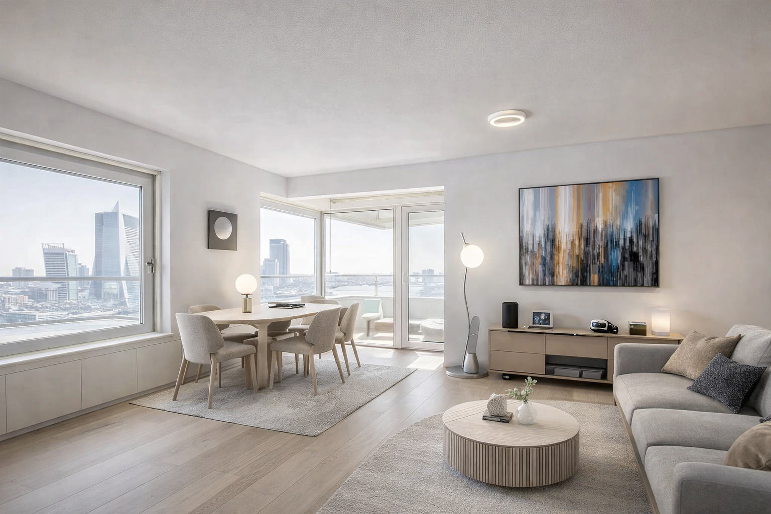 Wonen in hartje Rotterdam in een zeer uniek high end semi penthouse met uitzicht op de Maas en de stad aan je voeten! Elke ochtend de zon zien opkomen boven de Maas, terwijl de stad langzaam tot leven komt – dat is het dagelijkse decor van dit fijne 3-kamerappartement op de 20e verdieping van het markante complex ‘Schoener’. Hier woon je letterlijk boven het bruisende…