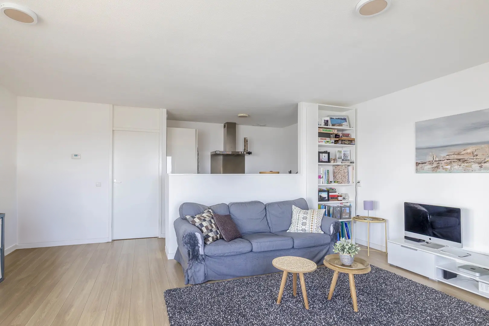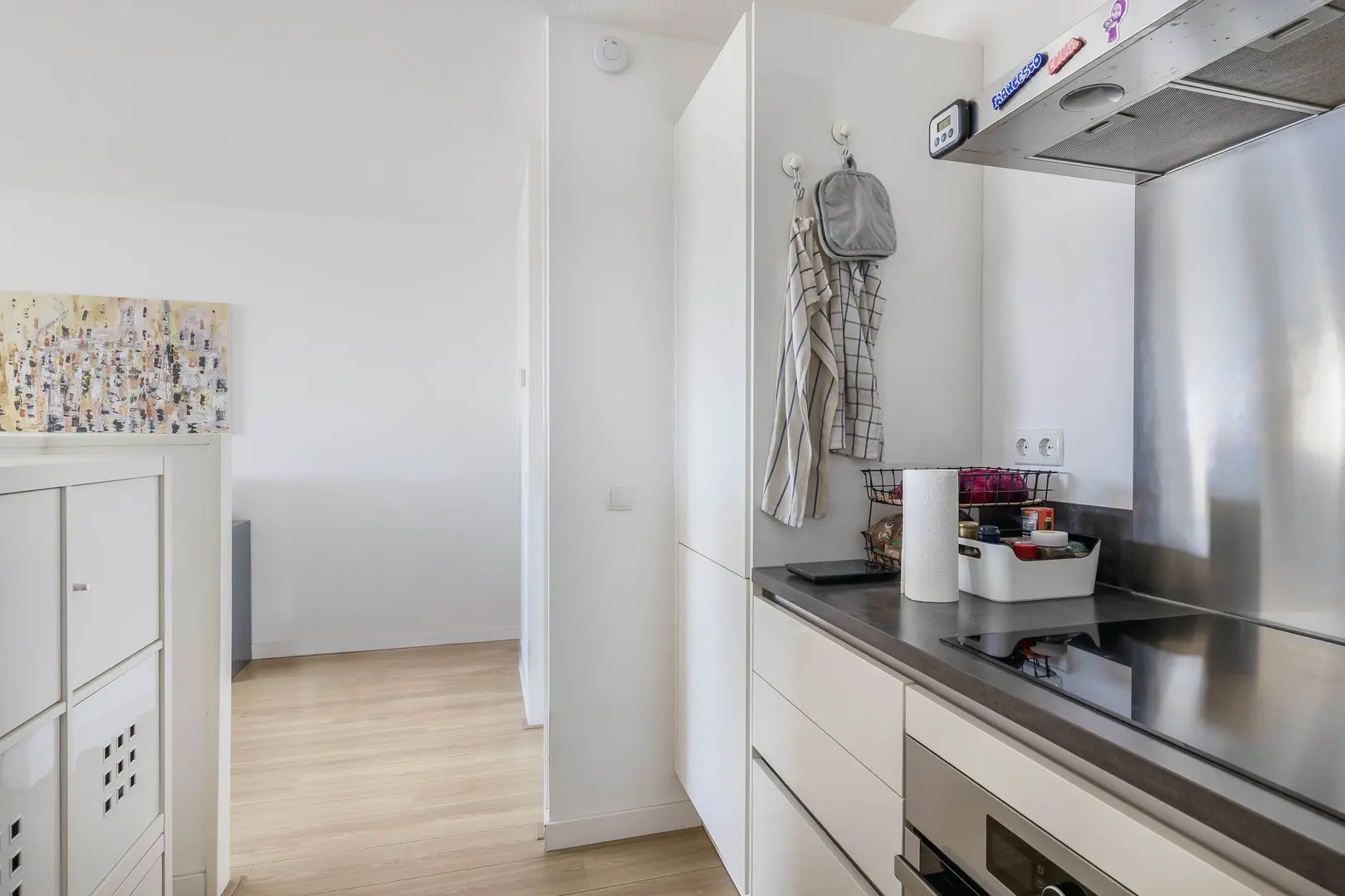 Wonen op de 20e verdieping betekent één ding: een uitzicht dat nooit verveelt. Vanuit de ruime woonkamer kijk je uit over de altijd dynamische Maas en de Rotterdamse skyline, waar schepen, zonlicht en stadsgeluiden samen een levend schilderij vormen. Dankzij de royale raampartijen baadt de hele ruimte in natuurlijk daglicht – een zeldzame luxe in de stad. Schuif de deur open en je stapt het balkon op, gelegen op het zuidwesten. Hier start je je dag met de eerste zonnestralen op je gezicht en het zachte geluid van de stad die ontwaakt. Het is een plek waar je koffie nét iets lekkerder smaakt. De open keuken, vernieuwd in 2017, sluit naadloos aan op de woonkamer en is uitgerust met moderne inbouwapparatuur. Of je nu een snelle maaltijd bereidt of uitgebreid kookt voor vrienden, deze keuken maakt het een plezierige ervaring met zicht op het water als extra bonus.