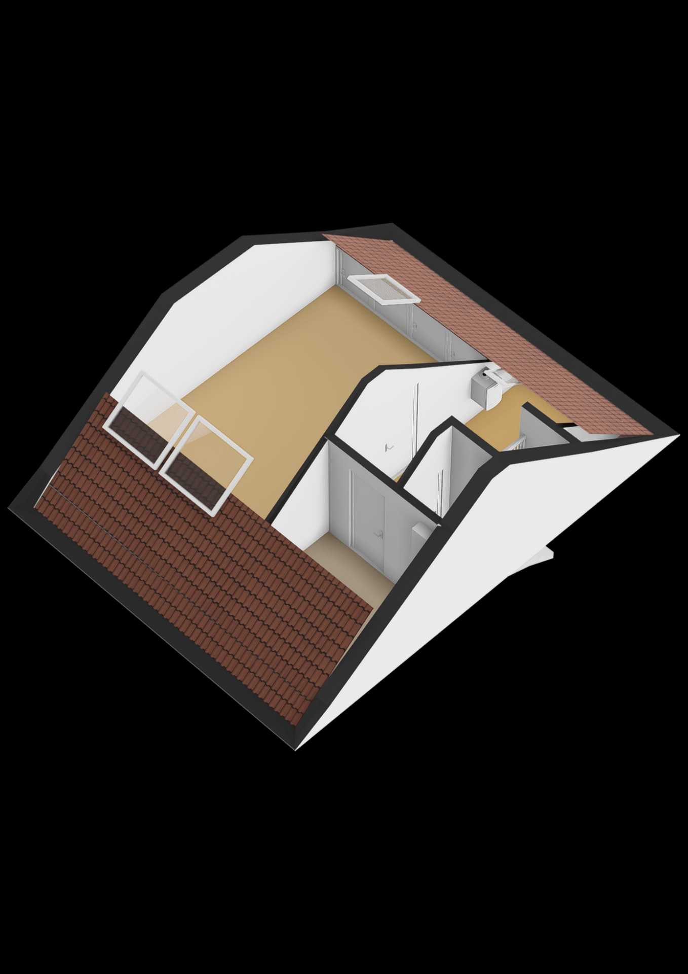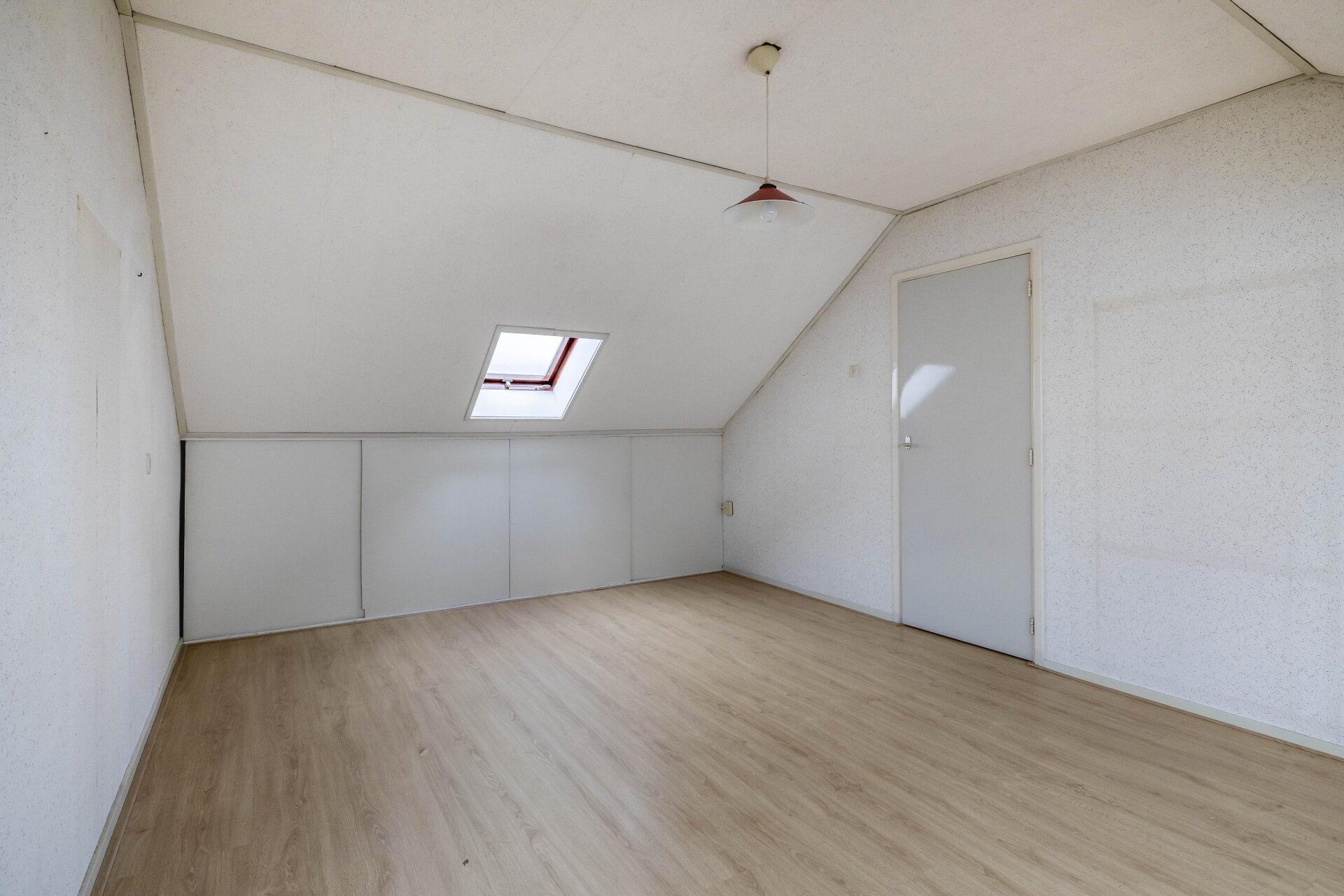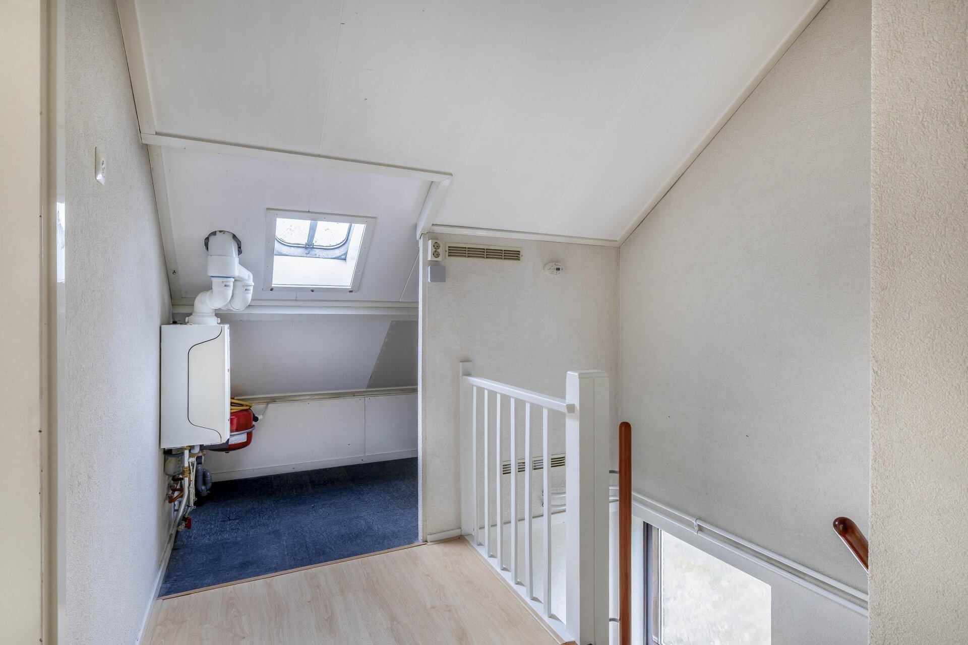De tweede verdieping is bereikbaar via een vaste trap. Hier vind je de grote vierde slaapkamer, met dakramen die zorgen voor licht en ventilatie. Ook op deze verdieping is volop bergruimte aanwezig onder de schuine kap, evenals de opstelling van de CV-ketel.