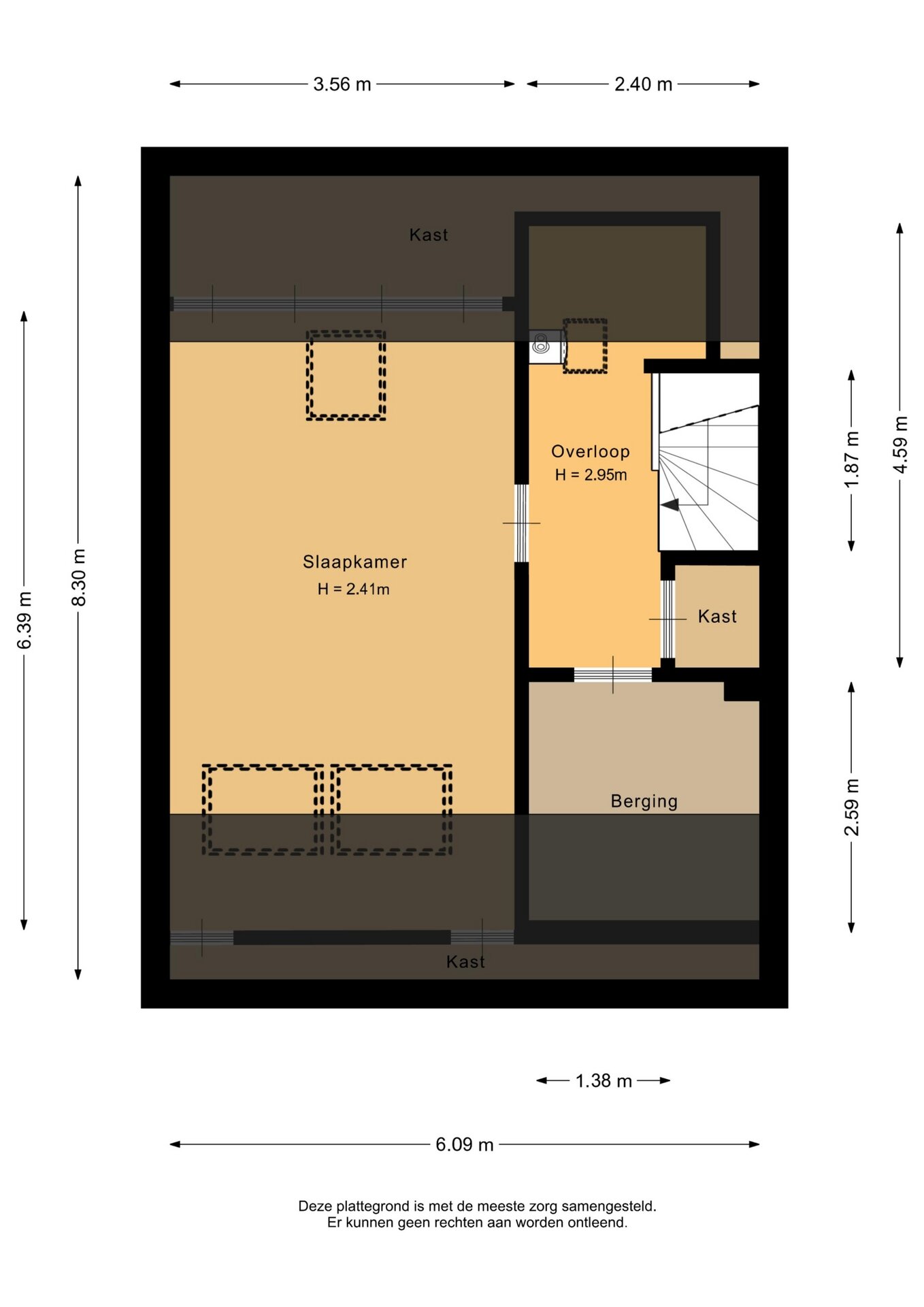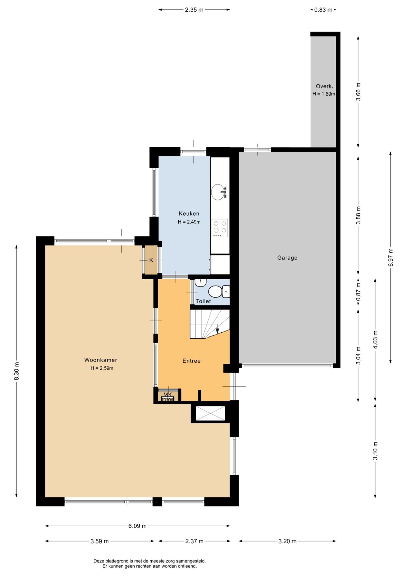 “Deze informatie is door ons met de nodige zorgvuldigheid samengesteld. Onzerzijds wordt echter geen enkele aansprakelijkheid aanvaard voor enige onvolledigheid, onjuistheid of anderszins, dan wel de gevolgen daarvan. Alle opgegeven maten en oppervlakten zijn indicatief.”