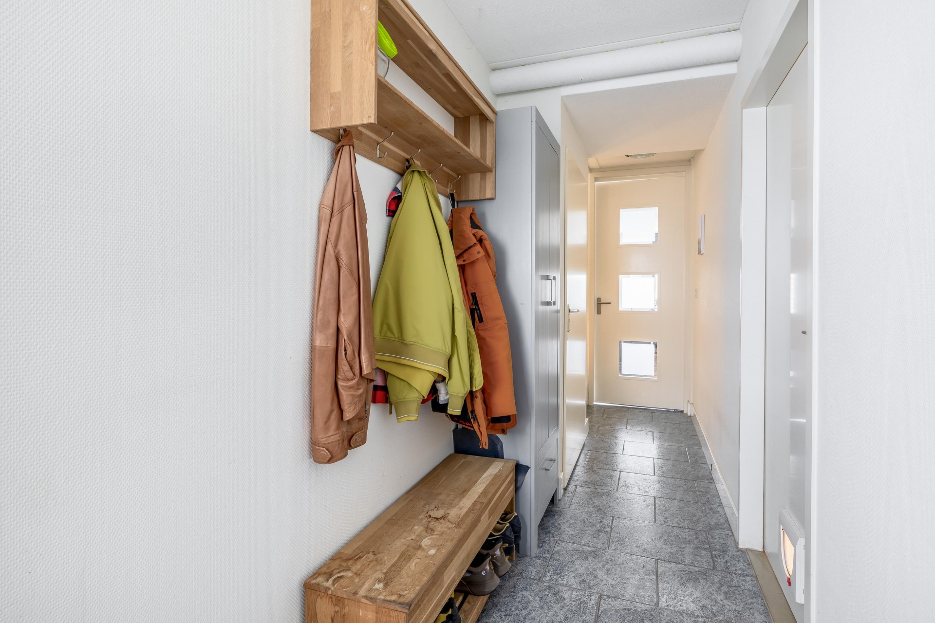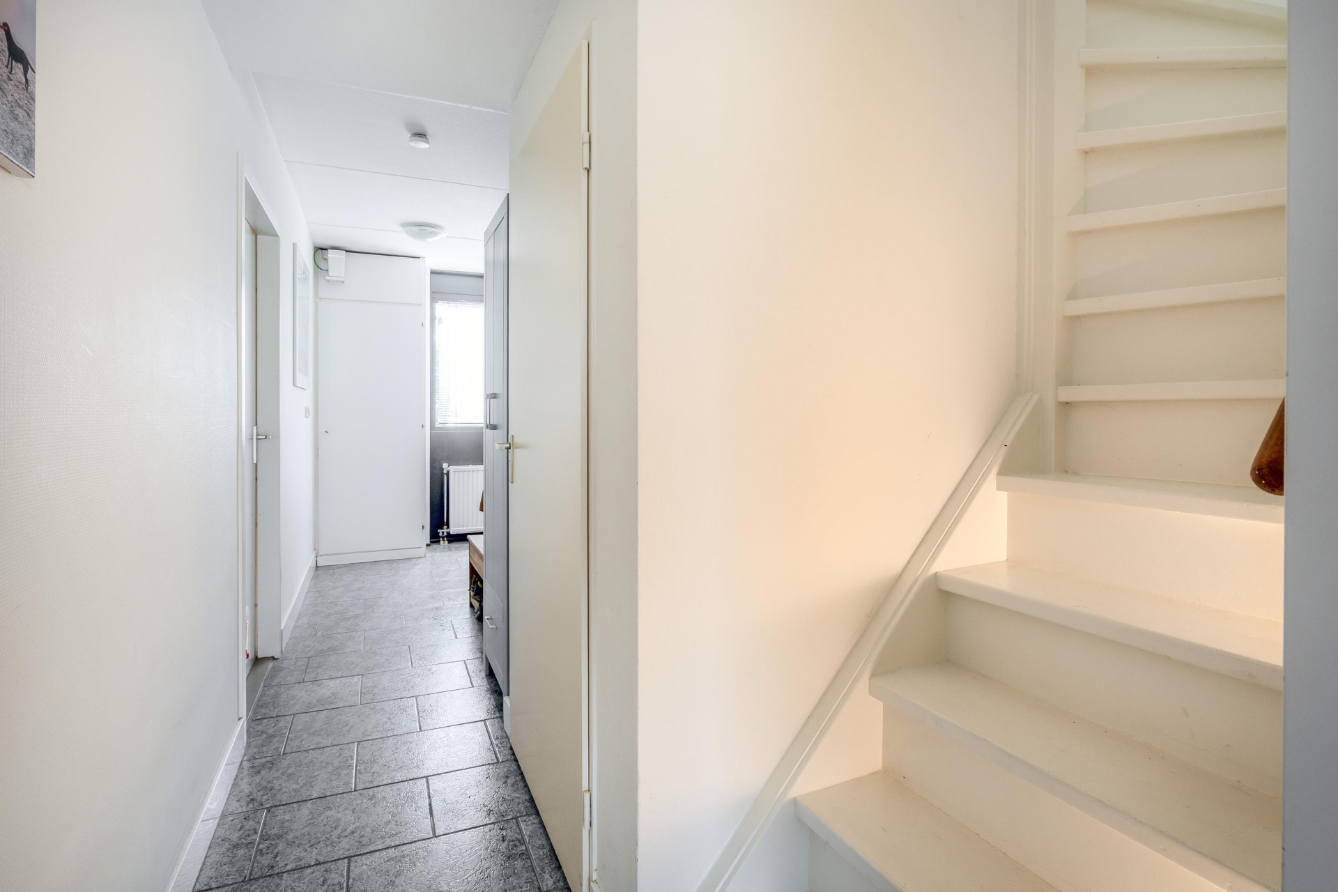 Vanuit de entree / gang is er eveneens toegang tot het toilet, de trap naar de eerste etage en de living.