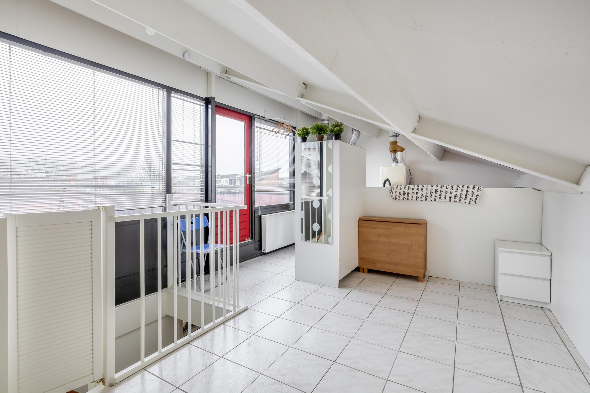 Op deze zolderruimte treffen we de was apparatuur alsmede de CV ketel en de mechanische ventilatie.