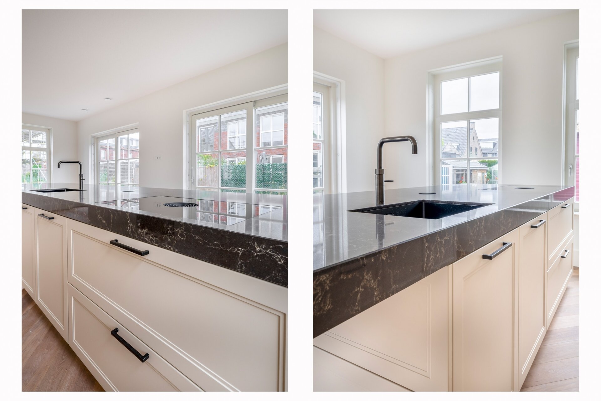 Welkom in de prachtige, royale hal met een doorkijk naar de tweede verdieping – een entree die direct indruk maakt! Vanuit hier bereikt u de moderne toiletruimte met vrijhangend closet en fonteintje, de technische ruimte met o.a. de warmtepomp en meterkast. Vanuit de hal heeft u toegang tot de lichte en ruime woonkamer. De moderne keuken, gelegen aan de andere zijde van de woning, is voorzien van een stijlvol kook- en spoeleiland en uitgerust met luxe inbouwapparatuur zoals een combi-oven, stoomoven, inductiekookplaat, koelkast, vriezer en vaatwasser. Via de grote schuifdeuren stapt u zo de zonnige tuin in, waar u volop kunt genieten van rust en ruimte. Aan de voorzijde van de woning zal je in de toekomst over twee eigen parkeerplaatsen naast elkaar beschikken. De begane grond is geheel voorzien van comfortabele vloerverwarming.