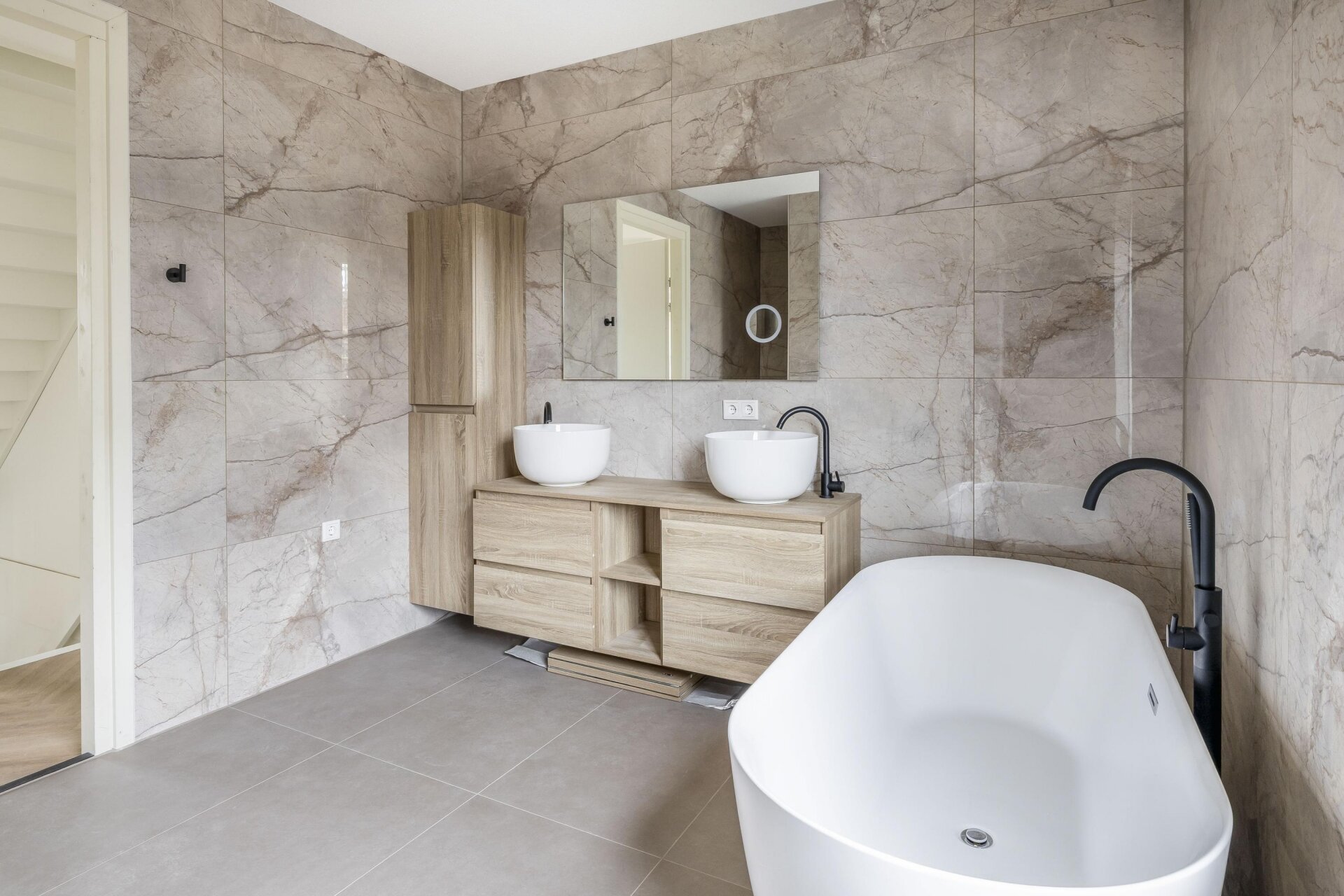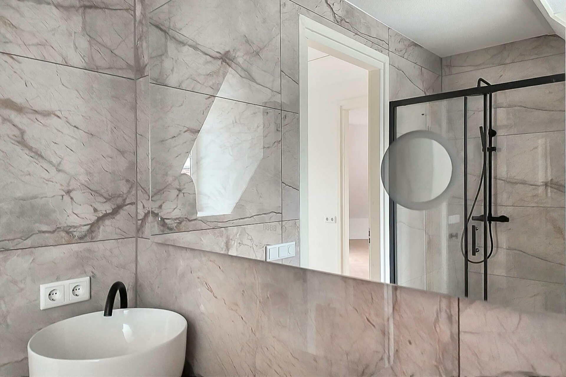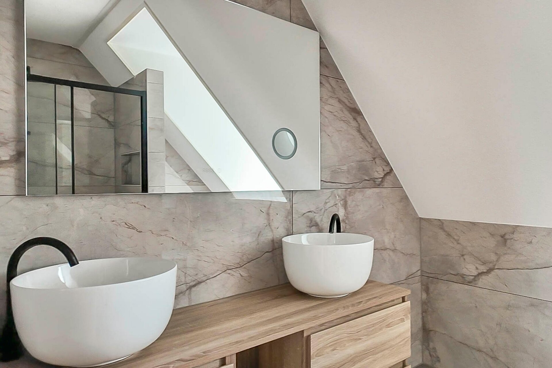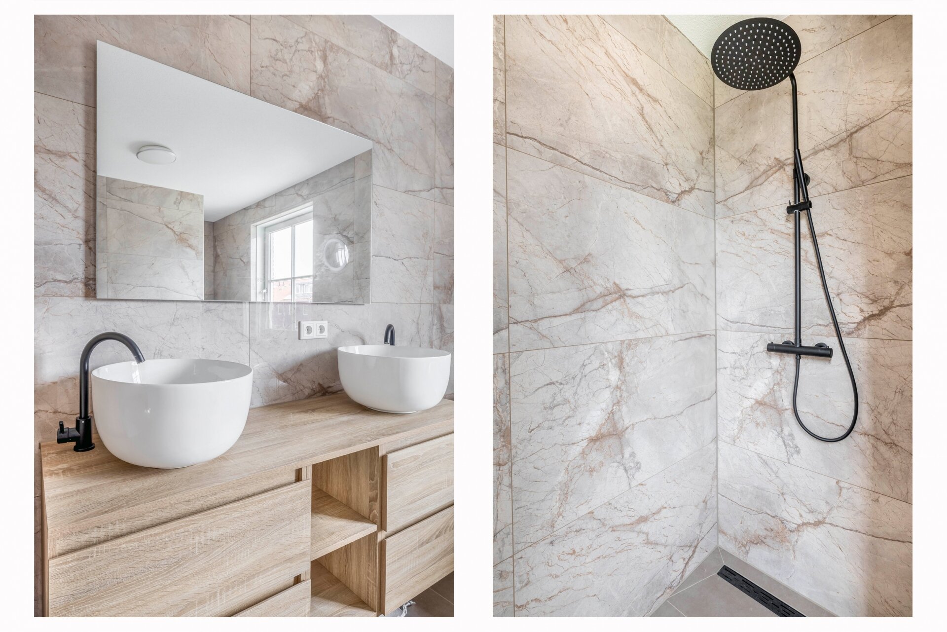 De overloop biedt toegang tot drie ruime slaapkamers, waaronder een indrukwekkende master bedroom met een zeer royale inloopkast. De luxe badkamer is een echte blikvanger: uitgerust met een dubbel wastafelmeubel, een inloopdouche met regendouche én een heerlijk ligbad, dé plek om volledig tot rust te komen.