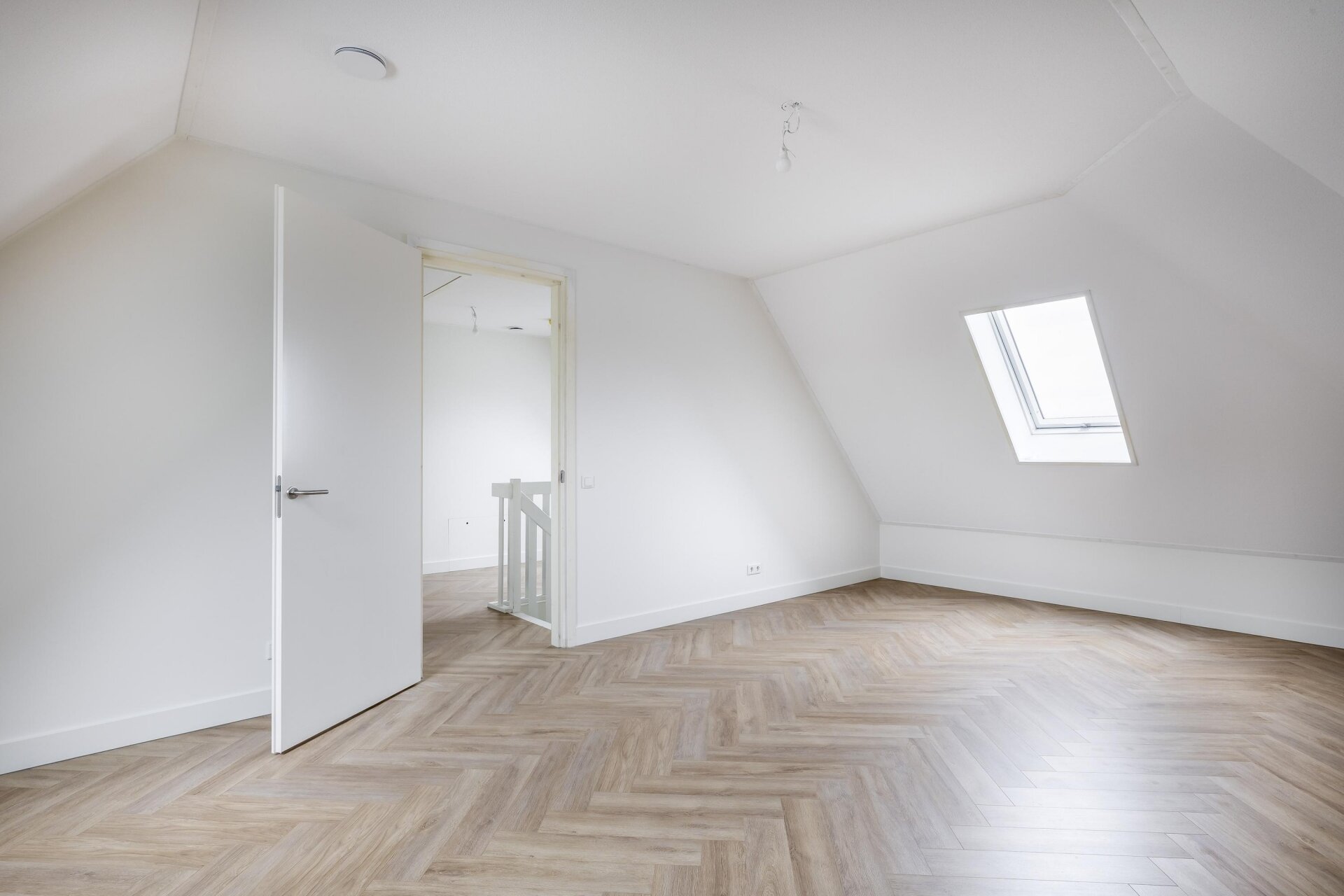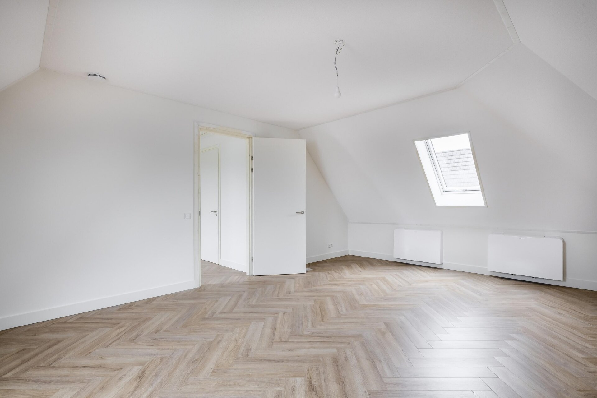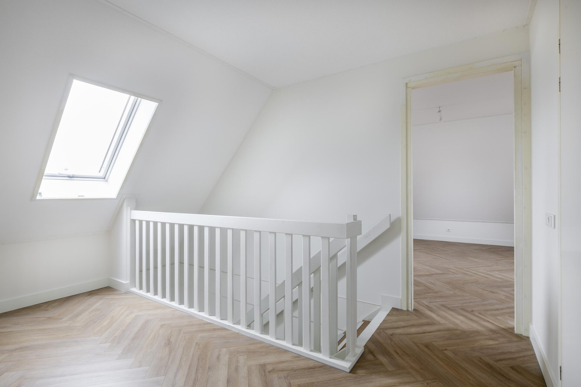 Deze verdieping biedt verrassend veel ruimte. Op de ruime overloop bevind zich aansluiting voor de wasmachine. Daarnaast bevinden zich hier twee zeer ruime slaapkamers én een tweede badkamer. Via een vlizotrap is de royale bergvliering bereikbaar, ideaal voor het opbergen van seizoensspullen of andere zaken die u niet dagelijks nodig heeft.
