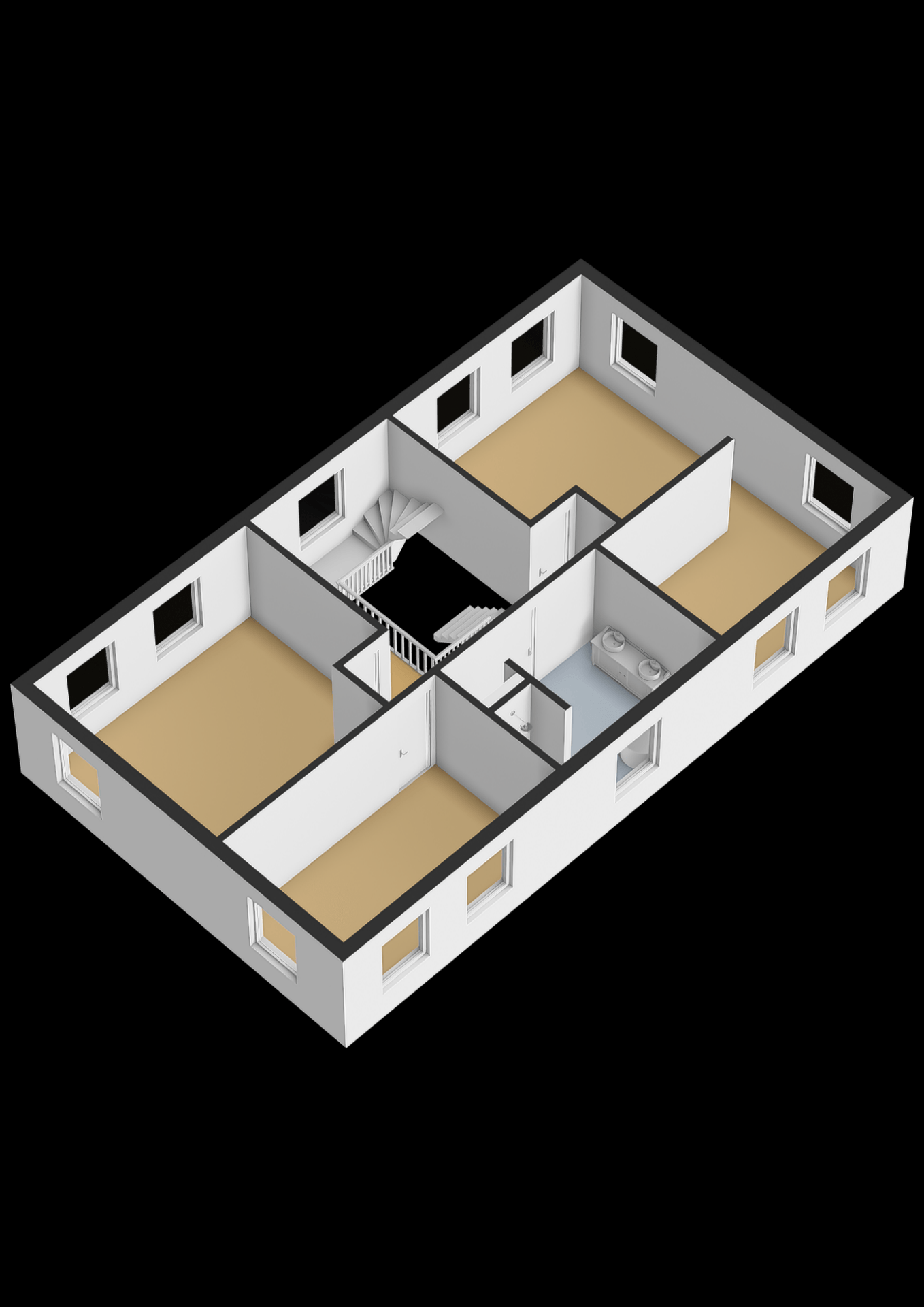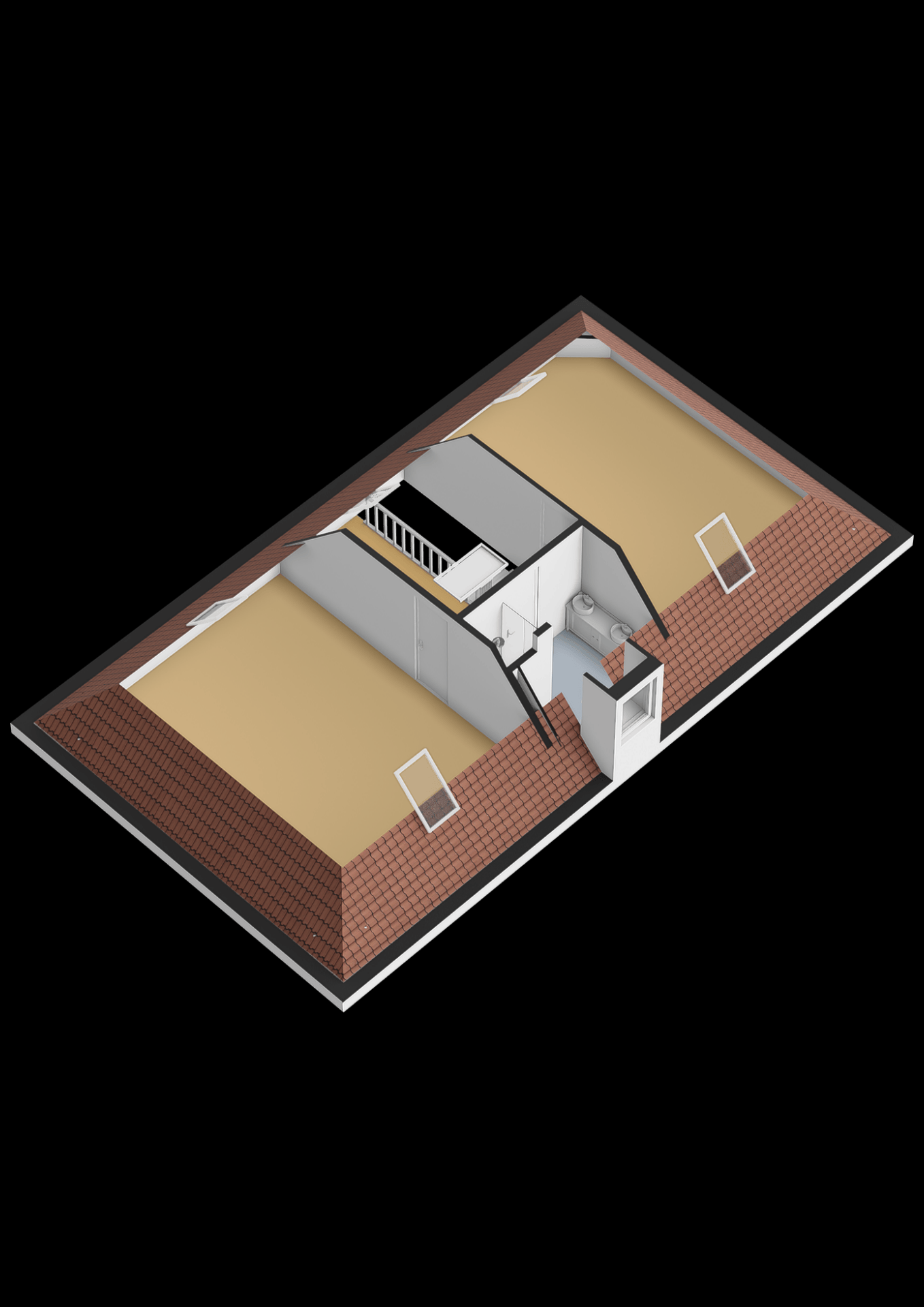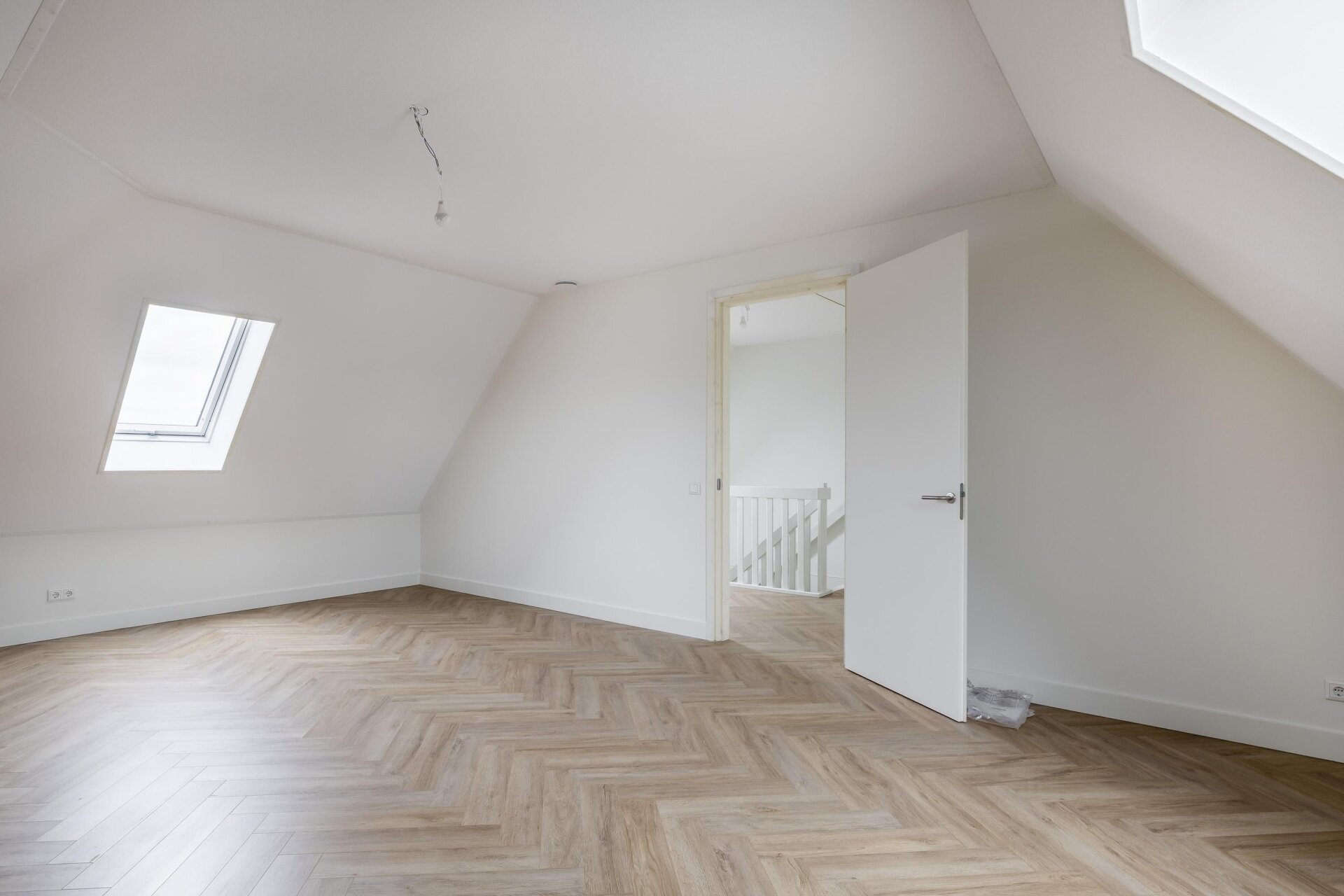 Deze verdieping biedt verrassend veel ruimte. Op de ruime overloop bevind zich aansluiting voor de wasmachine. Daarnaast bevinden zich hier twee zeer ruime slaapkamers én een tweede badkamer. Via een vlizotrap is de royale bergvliering bereikbaar, ideaal voor het opbergen van seizoensspullen of andere zaken die u niet dagelijks nodig heeft.