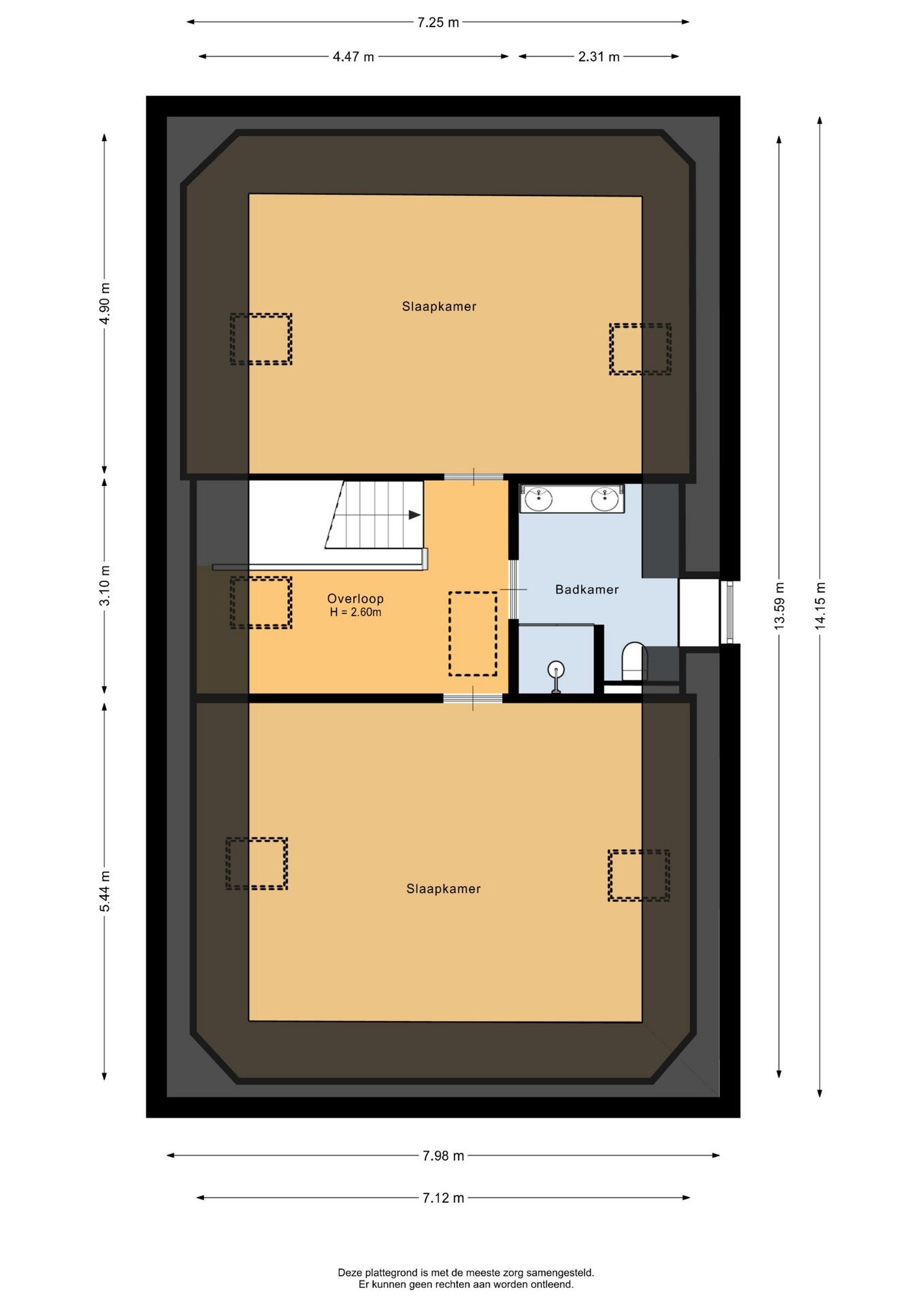"Deze informatie is door ons met de nodige zorgvuldigheid samengesteld. Onzerzijds wordt echter geen enkele aansprakelijkheid aanvaard voor enige onvolledigheid, onjuistheid of anderszins, dan wel de gevolgen daarvan. Alle opgegeven maten en oppervlakten zijn indicatief. Van toepassing zijn de NVM voorwaarden".