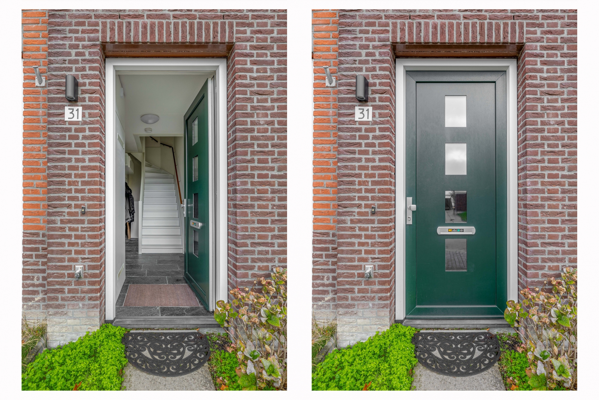 Entree via een pad in de voortuin. Hal met garderoberuimte, meterkast en trapopgang naar de eerste verdieping.