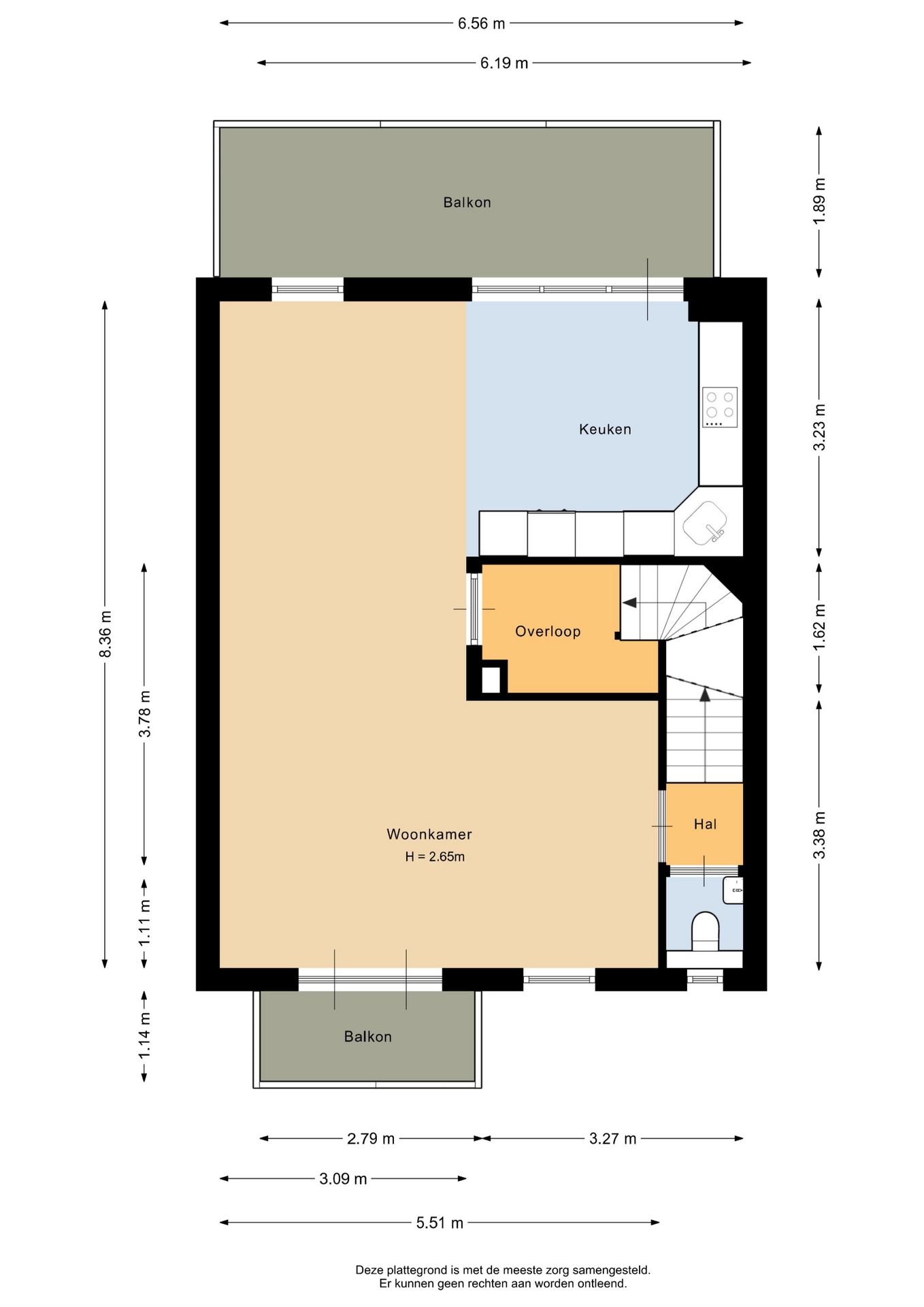 "Deze informatie is door ons met de nodige zorgvuldigheid samengesteld. Onzerzijds wordt echter geen enkele aansprakelijkheid aanvaard voor enige onvolledigheid, onjuistheid of anderszins, dan wel de gevolgen daarvan. Alle opgegeven maten en oppervlakten zijn indicatief. Van toepassing zijn de NVM voorwaarden".
