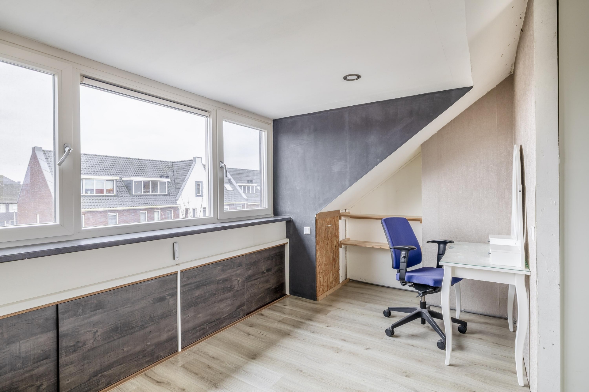 Verrassend ruime verdieping met zowel aan de voorzijde en achterzijde een dakkapel; slaapkamer 3 met airconditioning, rolluiken, vaste kastenwand en extra bergruimte.