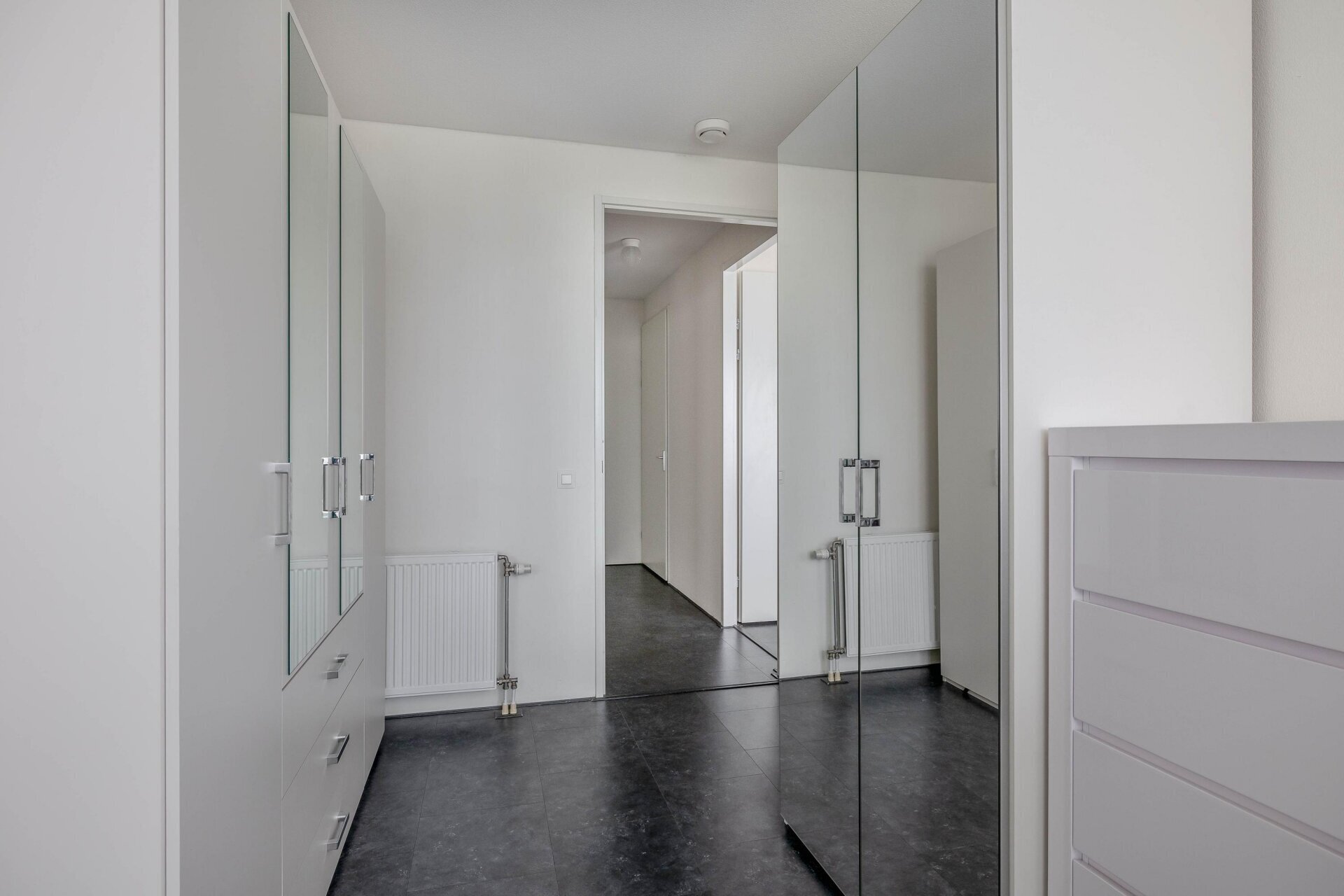 De open keuken is compleet ingericht met inbouwapparatuur zoals een koelkast, aparte vriezer, oven, magnetron, vaatwasser, 4-pits gaskookplaat, afzuigkap en Quooker. Zowel de woonkamer als beide slaapkamers grenzen aan de zonnige loggia met schuifpui, grote raampartijen en uitzicht waar je niet op uitgekeken raakt.