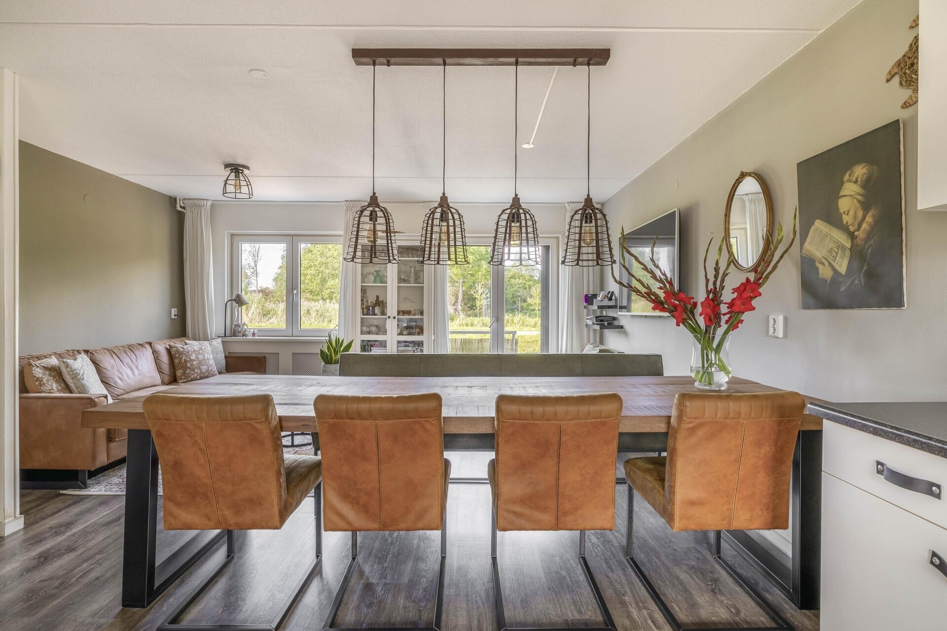 Aan de achterzijde kijk je uit over het water en de dijk, waar de hele dag mensen wandelen, fietsen en genieten van de natuur. Dat uitzicht verveelt nooit.