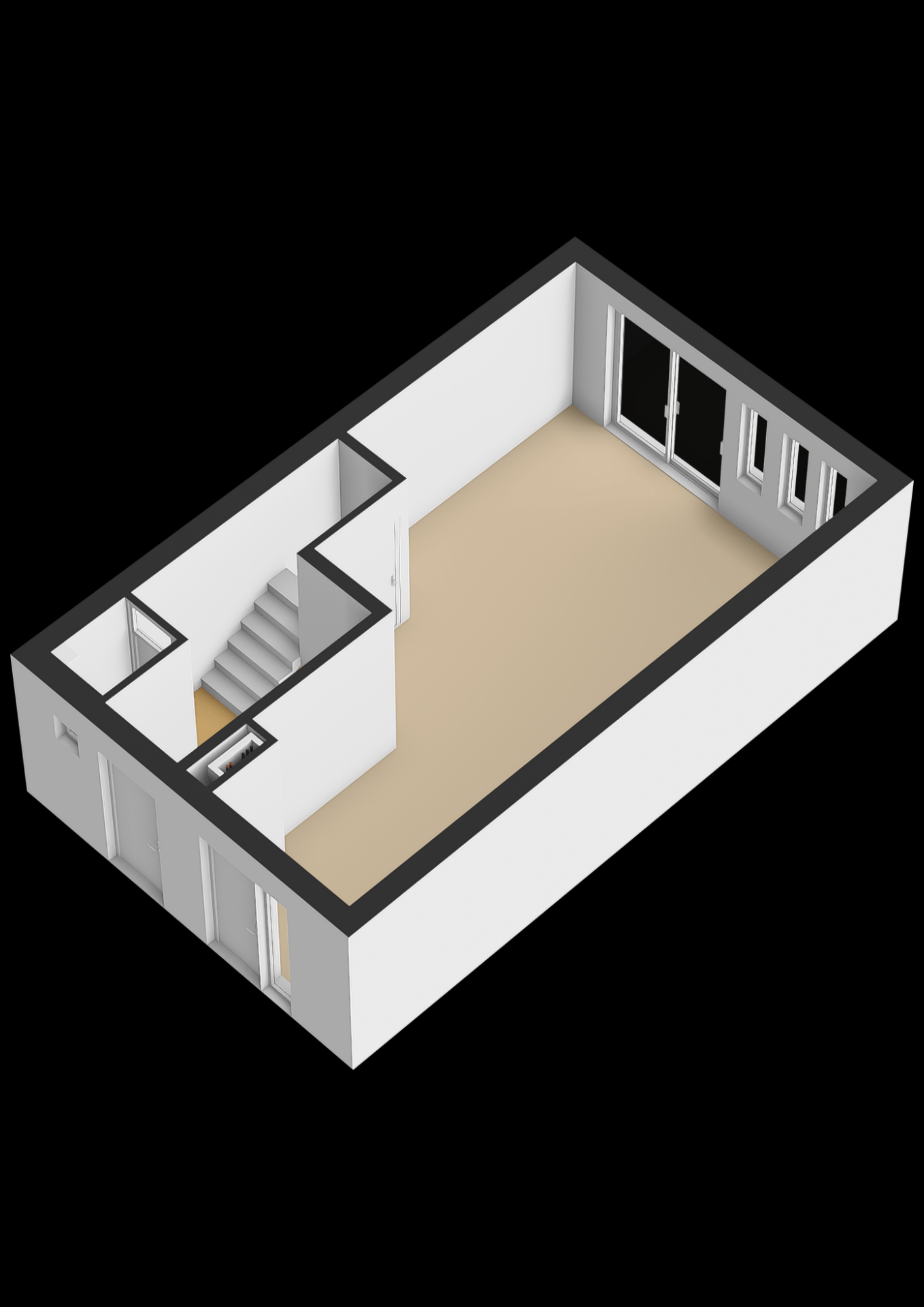 De rechter entree geeft toegang tot de begane grond, de oorspronkelijke woonkamer en positie van de keukenopstelling, deze ruimte is nog naar wens in te richten. Alles kan weer terug gebracht worden naar de oorspronkelijke indeling (woonkamer en keuken) of als vrij in te delen en/of als praktijkruimte in gebruik te nemen.