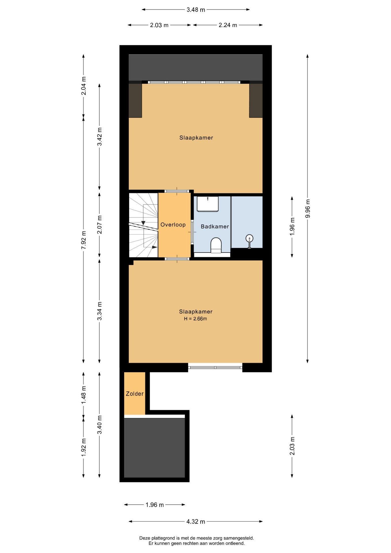 De tweede verdieping is bereikbaar via een vaste trap en biedt een derde slaapkamer. Ook is hier voldoende bergruimte te vinden. Dankzij de drie woonlagen is dit huis ideaal voor starters of jonge gezinnen die ruimte zoeken om te groeien.