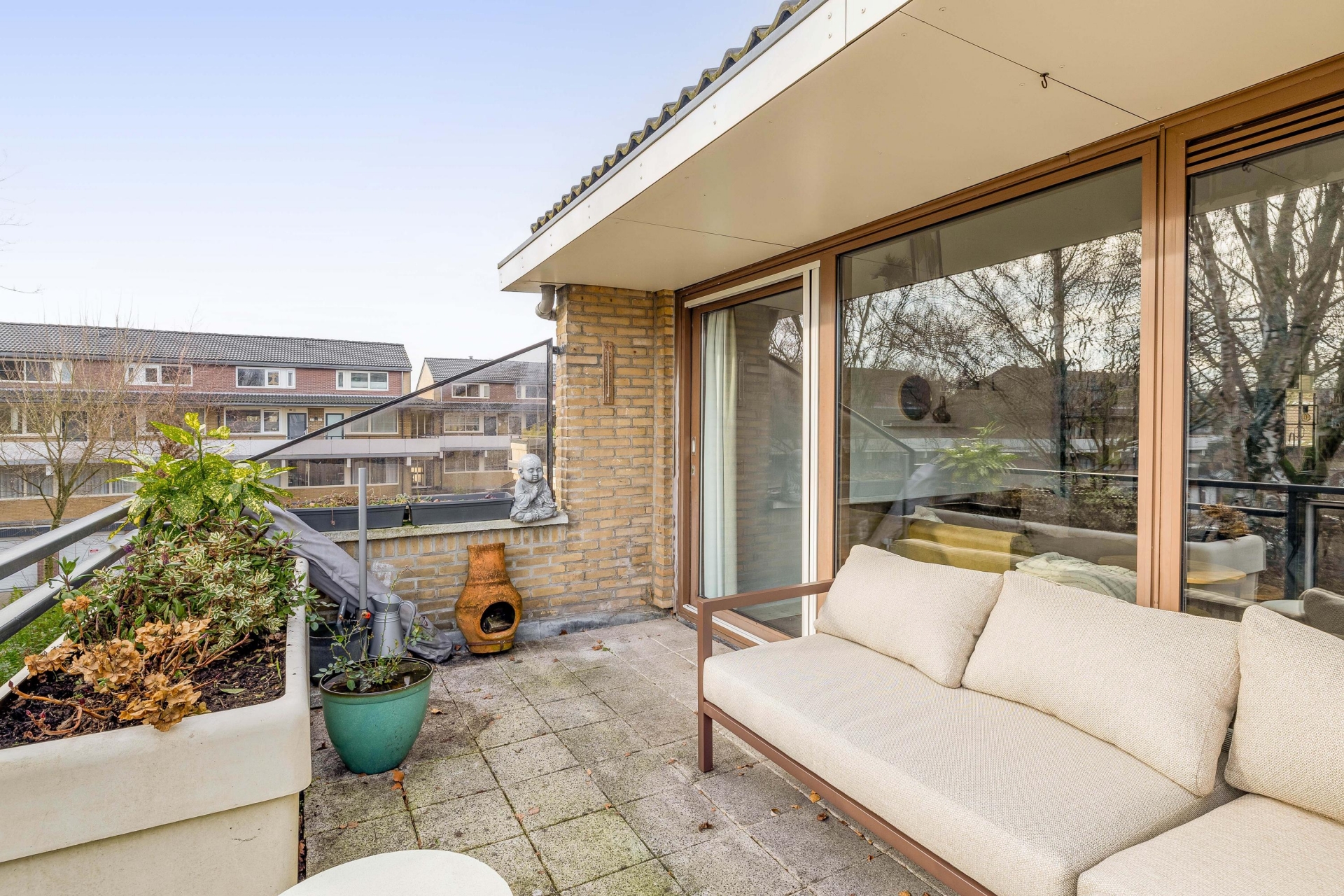 Wauw! Het terras is door de ligging op het Zuidoosten heerlijk zonnig. Je geniet hier van een prachtig vrij uitzicht over groen! Door de ligging op de bovenste verdieping heb je geen directe inkijk van buren en zit je hier in alle rust met veel privacy.