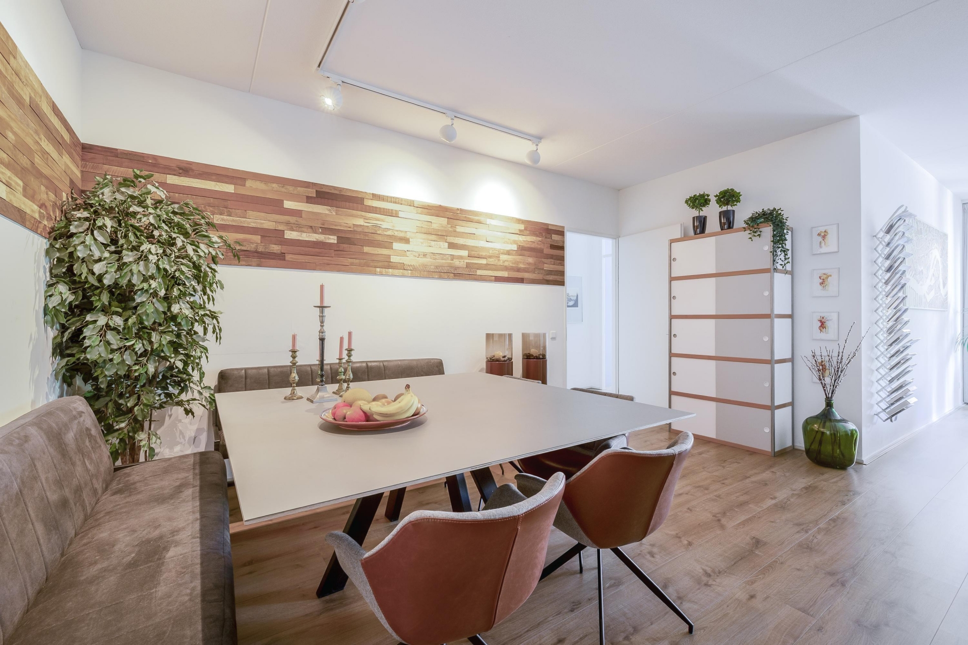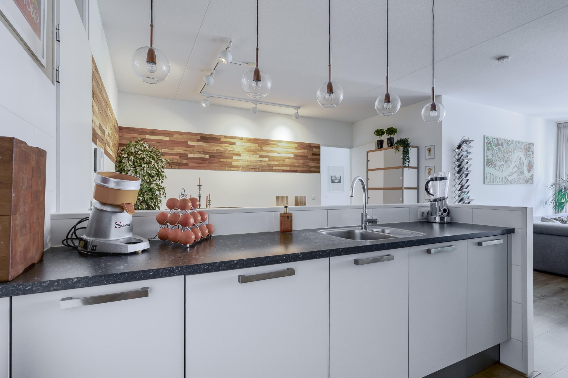 Wat direct opvalt zodra je binnenkomt, is het gevoel van ruimte. De bijna 3 meter hoge plafonds versterken het loft-achtige gevoel. Samen met het doordachte lichtplan, aangelegd in samenwerking met B&B Interieur, geeft het deze woning een stijlvolle en rustige uitstraling.