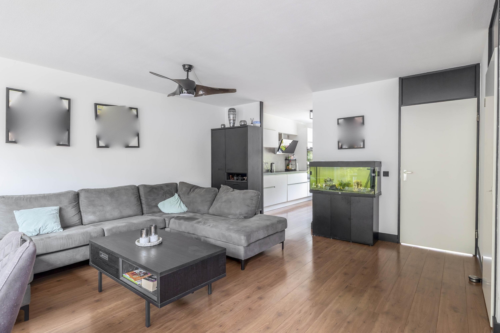 Strakke afwerking met laminaatvloeren en gestucte muren
