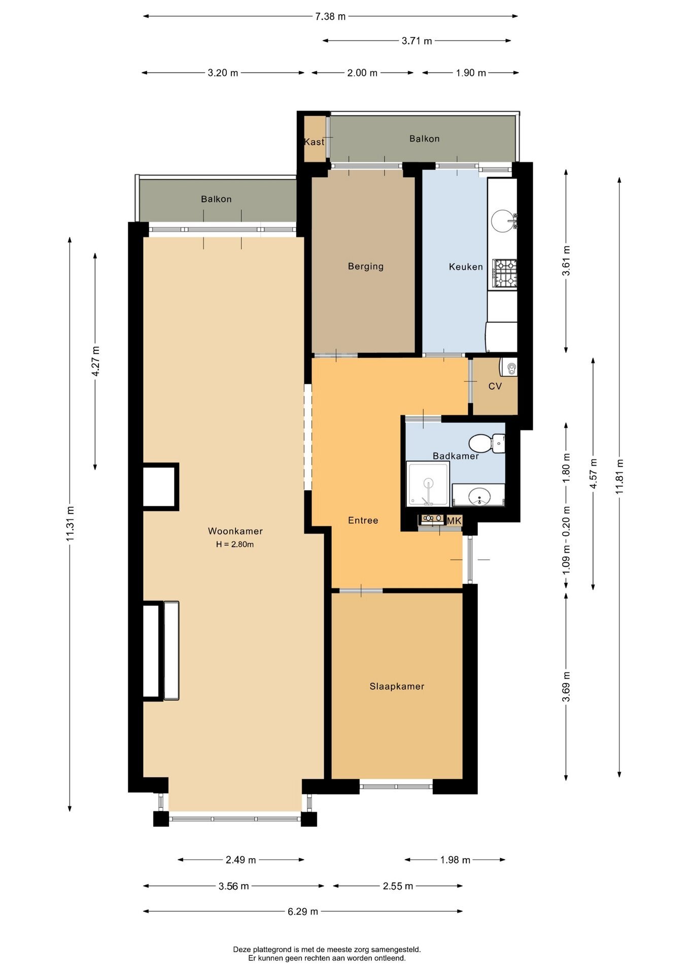 “Deze informatie is door ons met de nodige zorgvuldigheid samengesteld. Onzerzijds wordt echter geen enkele aansprakelijkheid aanvaard voor enige onvolledigheid, onjuistheid of anderszins, dan wel de gevolgen daarvan. Alle opgegeven maten en oppervlakten zijn indicatief.”