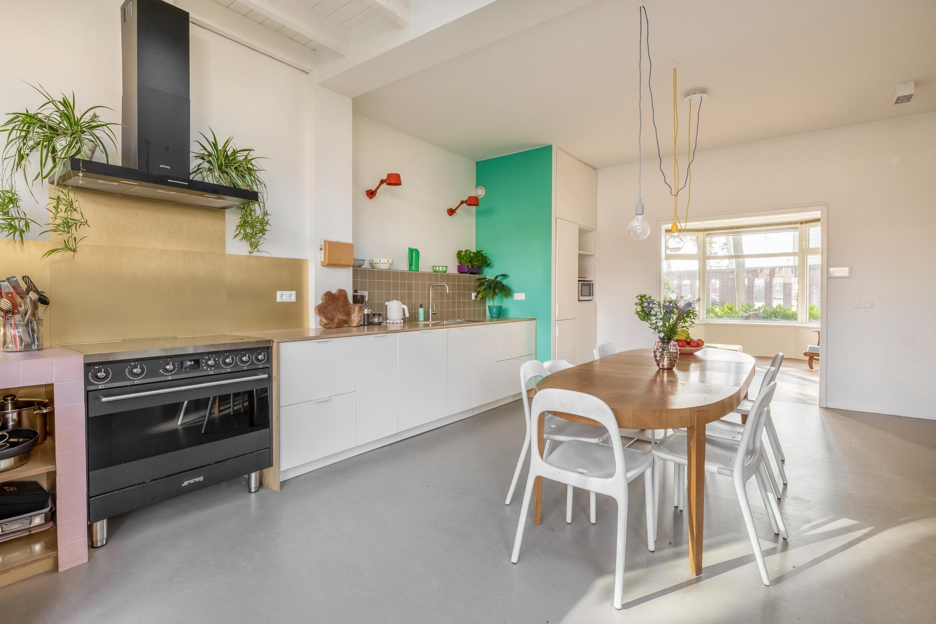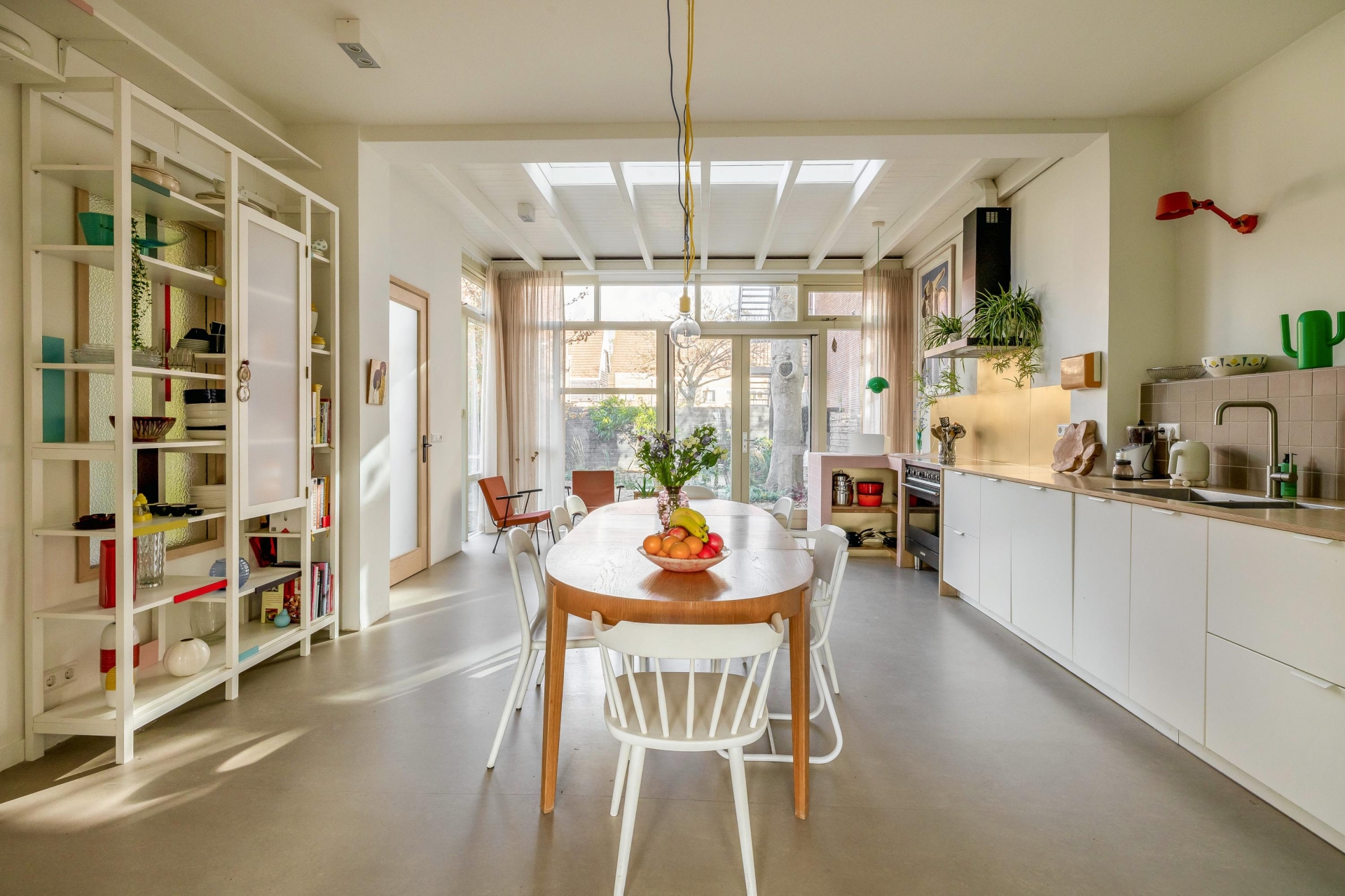 Deze sfeervolle 2-onder-1-kap woning uit 1915 combineert het beste van twee werelden: authentieke details zoals originele erkers en houten vloeren gaan hier hand in hand met modern wooncomfort. De huidige bewoners hebben in 2022 een stijlvolle uitbouw gerealiseerd met een fantastische woonkeuken als resultaat. Ook is toen een luxe hoekkeuken geplaatst en zijn er extra leefmeters gecreëerd met veel lichtinval. De houten vloer in de en-suite woonkamer, de hoge plafonds en de vele ramen zorgen voor een warme, open sfeer.