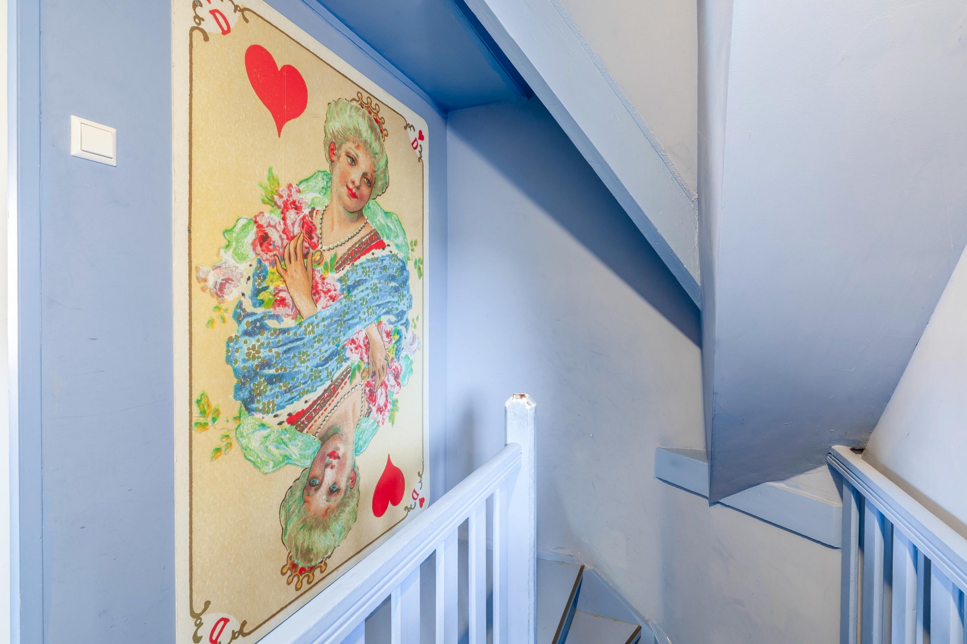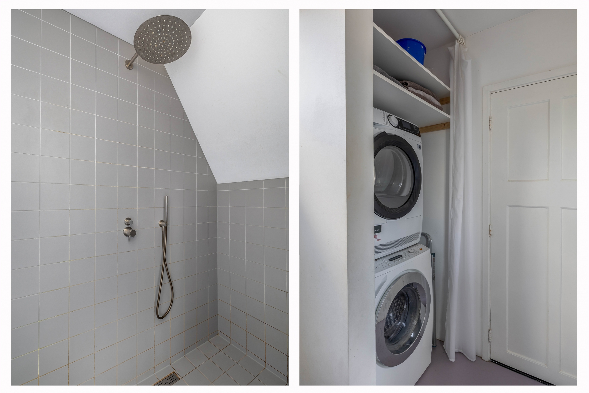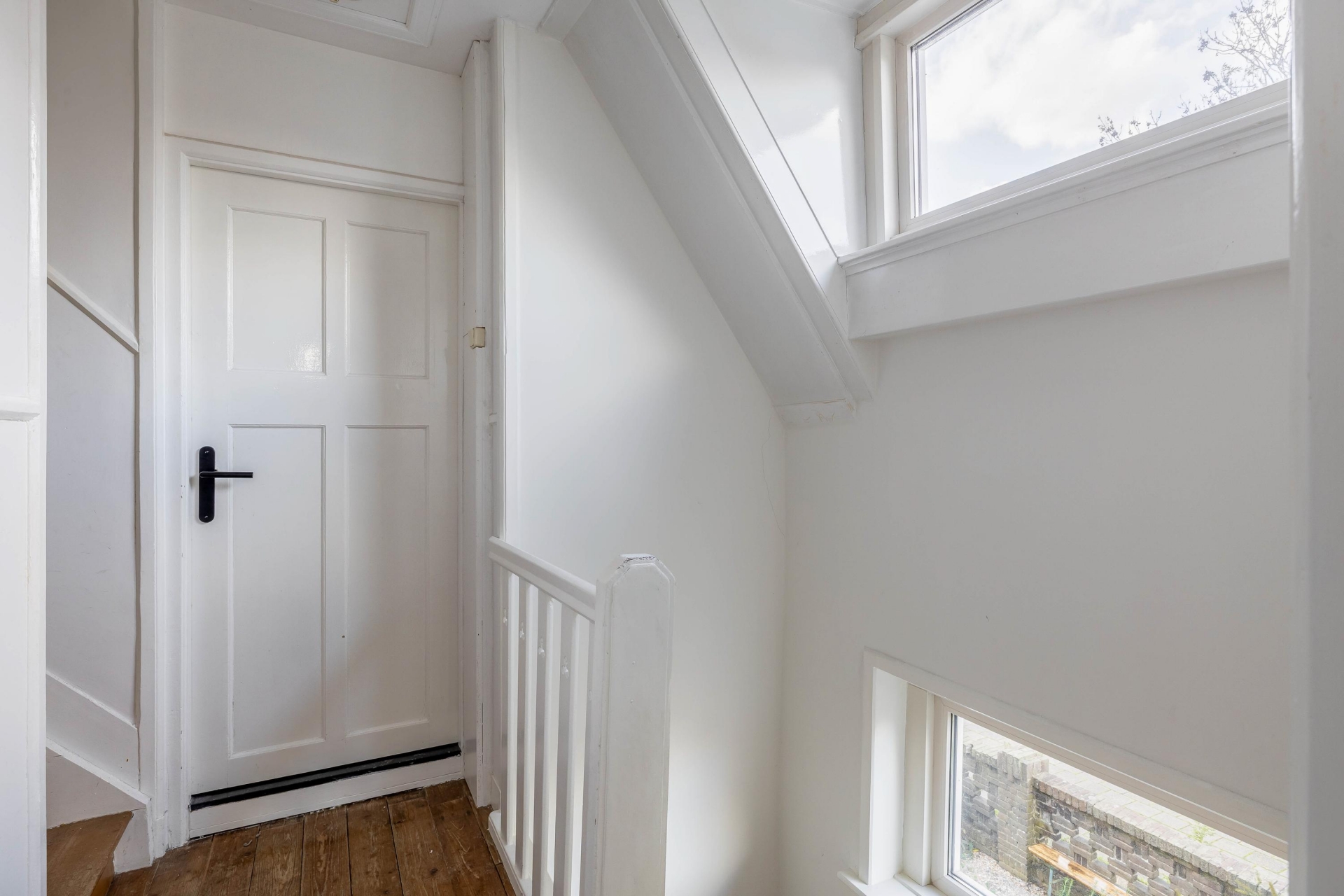 De tweede verdieping biedt nog twee kamers, waaronder een royale zolderkamer met speels achtkantig raam, vaste kast met cv-opstelling (2022). Extra bergruimte is beschikbaar via de vliering.